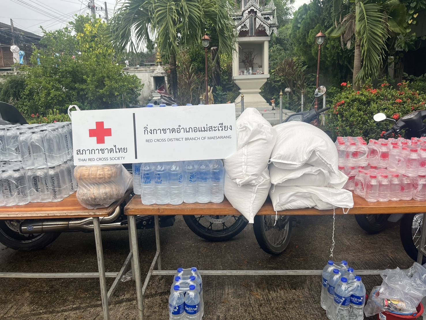 ทั้งนี้กิ่งกาชาดอำเภอแม่สะเรียง ได้ร่วมปฎิบัติภารกิจกับทุกภาคส่วนในการให้ความช่วยเหลือ ดูแลมอบสิ่งของอุปโภคบริโภค เพื่อบรรเทาความเดือดร้อนของครอบครัวและผู้ได้รับผลกระทบจากเหตุการณ์อุทกภัย ได้ลงพื้นที่ส่งมอบสิ่งของที่ได้รับจากผู้มีจิตศรัทธาให้แก่ โรงครัวช่วยเหลือผู้ประสบภัยน้ำท่วม จำนวน 3 แห่ง เพื่อใช้เป็นวัตถุดิบในการประกอบอาหาร แจกจ่ายบรรเทาความเดือดร้อนของประชาชนในพื้นที่ และได้ส่งมอบสิ่งของ ที่โรงครัวบ้านพะมอลอ โรงครัววัดจองคำ โรงครัวโรงเรียนบ้านป่าหมาก ประกอบด้วยข้าวสาร น้ำดื่ม ฟักเขียว ฟักทอง และปลากระป๋อง