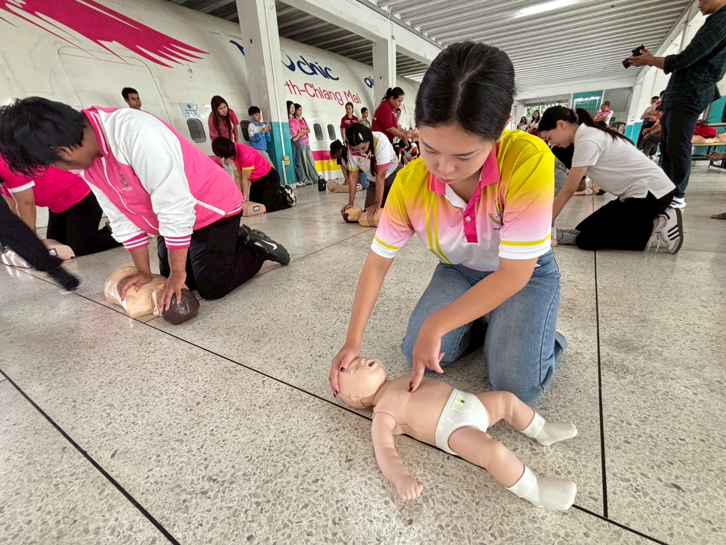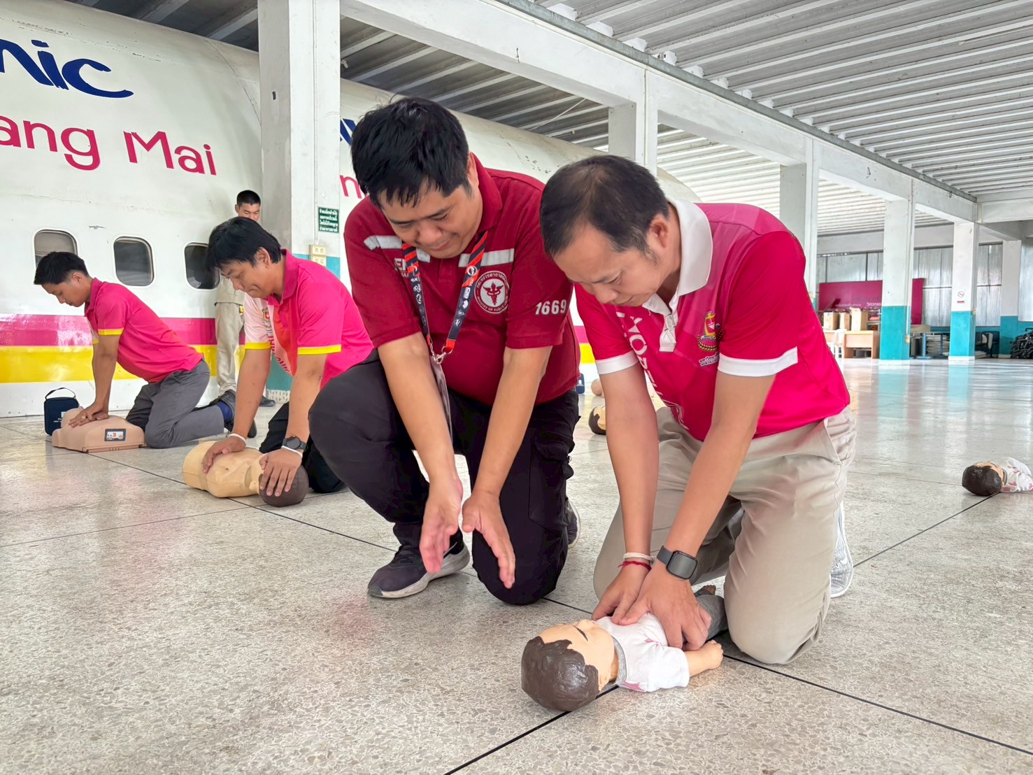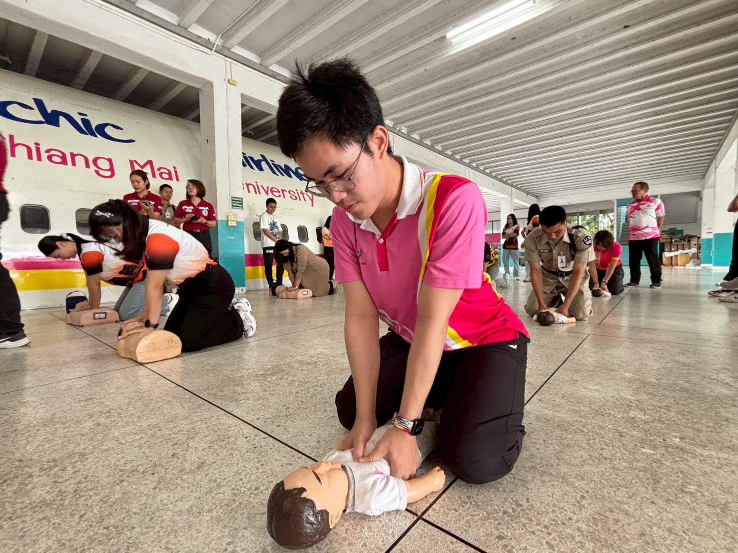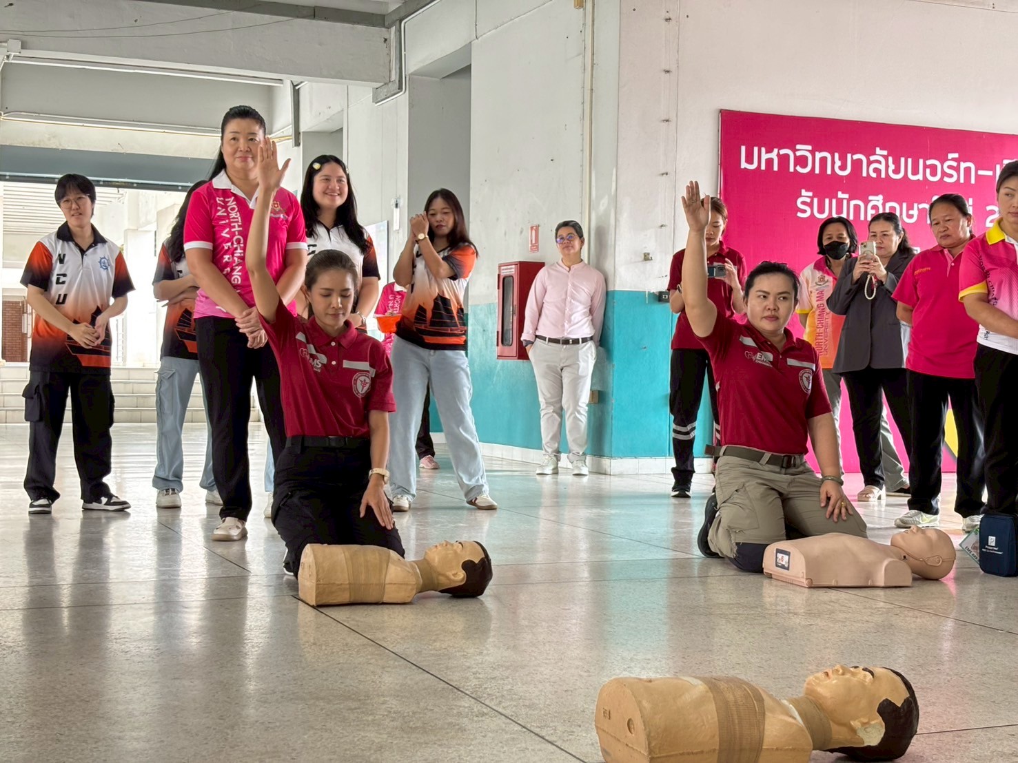 เมื่อวันที่ 30 กันยายน 2568 มหาวิทยาลัยนอร์ท-เชียงใหม่ ร่วมกับ สำนักงานสาธารณสุขจังหวัดเชียงใหม่ จัดอบรม “การปฐมพยาบาลเบื้องต้น & CPR พร้อมการใช้เครื่องกระตุกหัวใจ AED” เพื่อเสริมพลังบุคลากรและนักศึกษา ให้พร้อมรับมือกับสถานการณ์ฉุกเฉินได้อย่างมั่นใจ ทบทวนความรู้และทักษะการช่วยชีวิต การปฐมพยาบาลเบื้องต้น การปั๊มหัวใจ การใช้เครื่องกระตุกหัวใจ AED เพื่อลดความสูญเสีย และเพิ่มโอกาสให้ผู้ประสบเหตุได้กลับมามีลมหายใจอีกครั้ง การอบรมจัดขึ้น ณ ห้องรัฐมนตรี และลานกิจกรรม อาคาร 3 มหาวิทยาลัยนอร์ท-เชียงใหม่