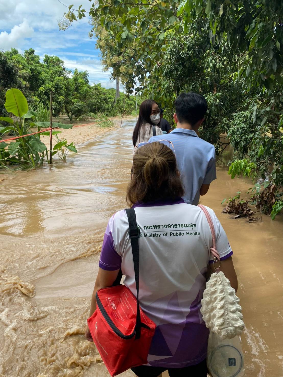 วันที่ 1 ตุลาคม 2568 เวลา 15.00 น. นายแพทย์วรัญญู จำนงประสาทพร นายแพทย์สาธารณสุขจังหวัดเชียงใหม่ รับรายงานสถานการณ์อุทกภัยจังหวัดเชียงใหม่ และการดำเนินการด้านสาธารณสุข จากรายงานยังไม่พบผู้บาดเจ็บหรือเสียชีวิต สำหรับพื้นที่ได้รับผลกระทบ 2 ตำบล ได้แก่ ตำบลทุ่งสะโตก หมู่ 7 บ้านดงก๋ำ ตำบลทุ่งสะโตก จำนวน 270 หลัง , หมู่ 6 บ้านร้อง ตำบลทุ่งสะโตก จำนวน 30 หลัง , หมู่ 9 บ้านกลาง ตำบลทุ่งสะโตก จำนวน 8 หลัง ทางสาธารณสุขอำเภอสันป่าตอง รพ.สต.ในพื้นที่ ร่วมกับหน่วยงานปกครองท้องที่ ท้องถิ่น และอสม. ได้ดำเนินการช่วยเหลือทางด้านสาธารณสุข เคลื่อนย้ายผู้ป่วยติดบ้าน และกลุ่มเปราะบาง จำนวน 5 ราย และนำส่งผู้ป่วยฟอกไต ไปยังโรงพยาบาลสันป่าตอง 1 ราย และพื้นที่ หมู่ 9 บ้านป่าสัก ตำบลบ้านกลาง ลำน้ำขานล้นฝั่งผ่านเข้าท่วมบ้านเรือน อยู่ในช่วงรอน้ำไหลผ่านจนลดถึงระดับที่ปลอดภัย ฝ่ายปกครองช่วยเหลือนำผู้ป่วยกลุ่มเปราะบาง 2 รายส่ง โรงพยาบาลสันป่าตอง เทศบาลจัดเตรียมอาหารดูแลผู้ที่อาศัยในบ้านที่ถูกน้ำท่วม รพ.สต.บ้านทุ่งเสี้ยวจัดเวชภัณฑ์ออกหน่วยช่วยเหลือประชาชนบริเวณหน้าวัดป่าสัก