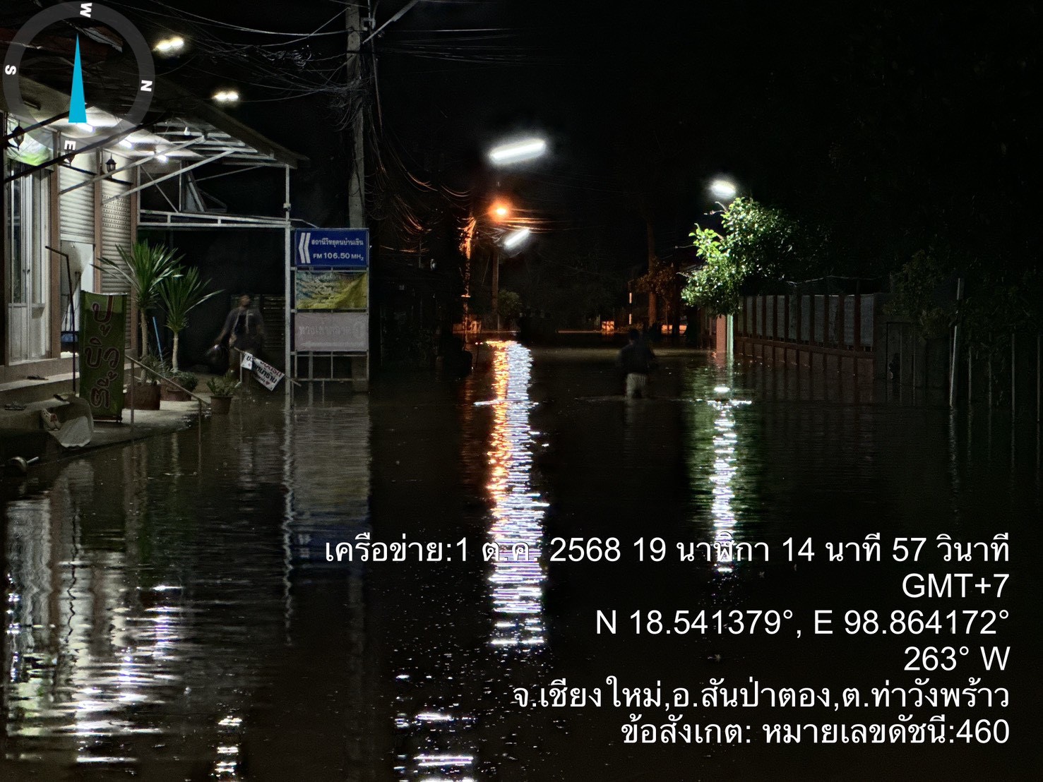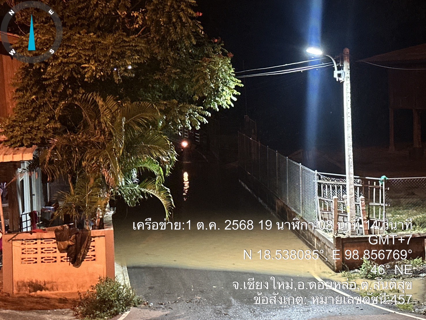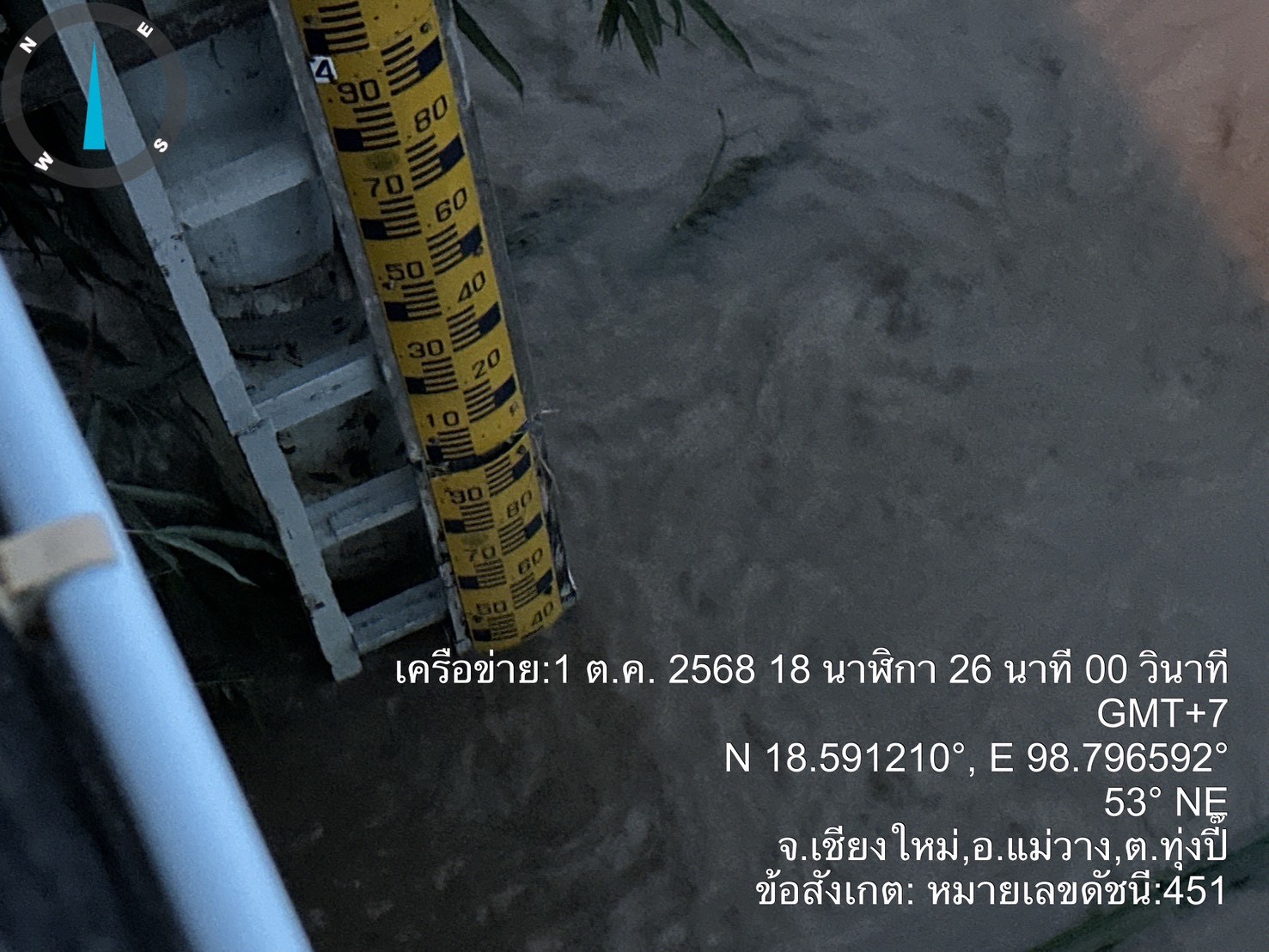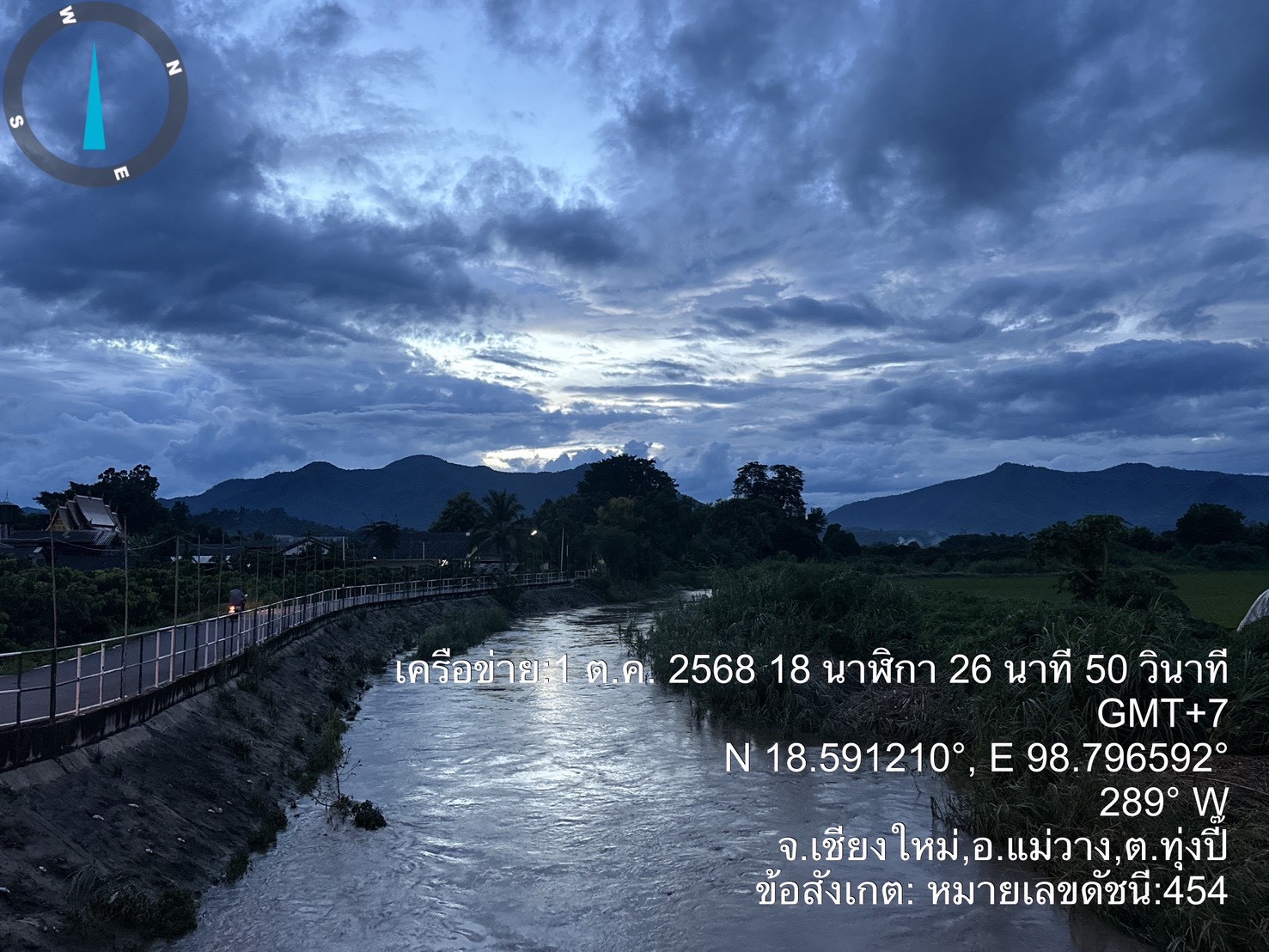 วันที่ 1 ต.ค. 68 นางสาวชลมาศ ทองคำ หัวหน้าฝ่ายส่งน้ำและบำรุงรักษาที่ 6 โครงการชลประทานเชียงใหม่ ลงพื้นที่ติดตามสถานการณ์น้ำแม่แจ่ม น้ำแม่ขาน น้ำแม่วาง ที่มีมวลน้ำล้นตลิ่งเข้าท่วมพื้นที่ลุ่มต่ำ พร้อมสนับสนุนในการประสานฝ่ายส่งน้ำฯที่ 7 ลดระดับน้ำปิงหน้าฝายดอยน้อย เพื่อให้น้ำแม่ขานไหลลงสู่น้ำปิงได้ดีขึ้น บรรเทาผลกระทบของน้ำเอ่อล้นตลิ่ง ซึ่งขณะนี้น้ำแม่วาง สถานีวัดน้ำ P.84 บ้านพันตน ต.ทุ่งปี้ อ.แม่วาง เชียงใหม่อ่านค่าระดับได้ 3.39 ม. (ระดับน้ำ สูงสุด 4.00 เมตร) ระดับน้ำมีแนวโน้มลดลง หากไม่มีมวลน้ำเพิ่มเติมคาดว่าจะเข้าสู่ภาวะปกติภายใน 1 – 2 วัน ส่วนสถานี P.71A น้ำแม่ขาน ต.บ้านกลาง อ.สันป่าตอง จ.เชียงใหม่ ระดับน้ำ 5.58 ม. มีแนวโน้มเพิ่มขึ้น เอ่อล้นตลิ่งและถนนเข้าท่วมพื้นที่ลุ่มต่ำตามแนวลำน้ำ