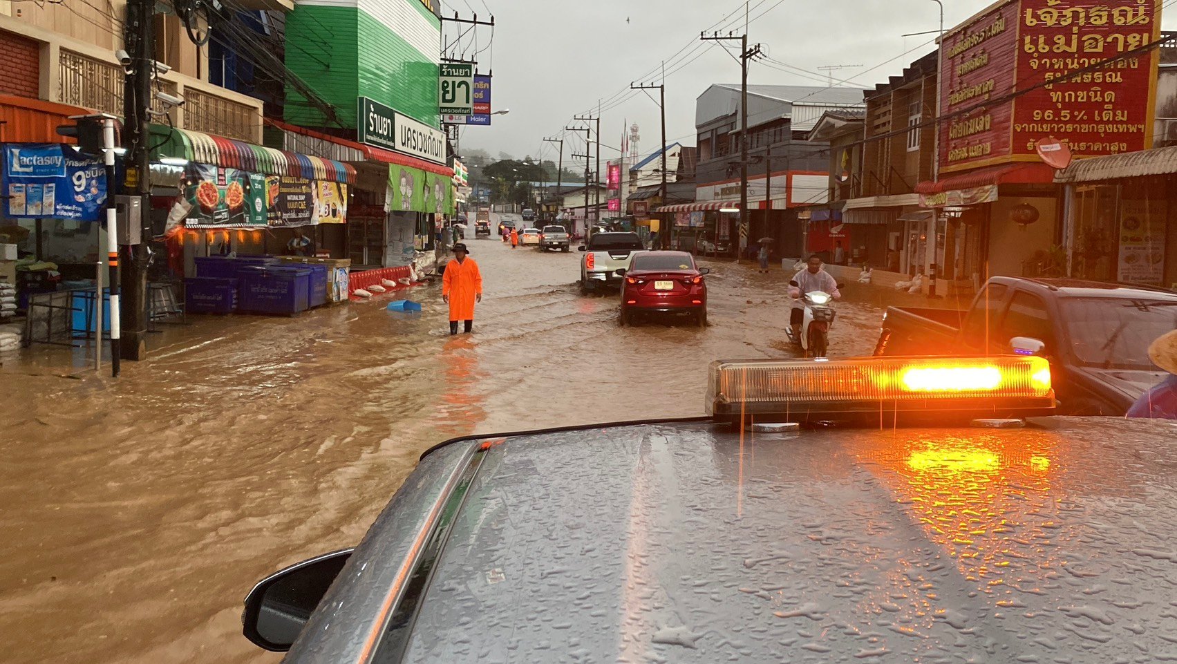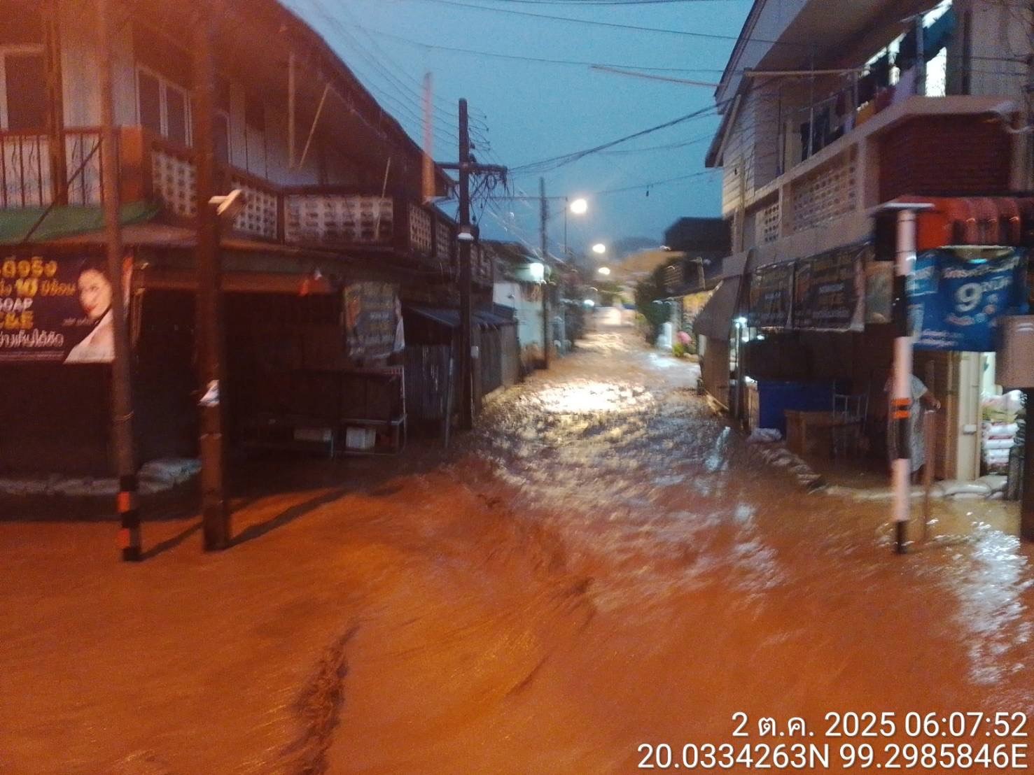 อำเภอแม่อาย รายงานเหตุด่วนสาธารณภัย (อุทกภัย) ว่า วันที่ 2 ตุลาคม 2568 เวลา 05.40 น. เกิดเหตุฝนตกหนักในพื้นที่ เป็นเหตุให้น้ำหลากเอ่อล้นเข้าท่วมพื้นที่บ้านเรือนราษฎรได้รับความเดือดร้อน ได้แก่ ม. 6, 7, 8 ต.แม่อาย ม.9 ต.มะลิกา และ ม.6 ต.แม่สาว ลำน้ำอายเอ่อล้นเข้าท่วมบ้านเรือนราษฎร ตลาด ร้านค้า เนื่องจากเศษไม้ขวางทางน้ำไหลบริเวณสะพานข้ามลำน้ำอาย
