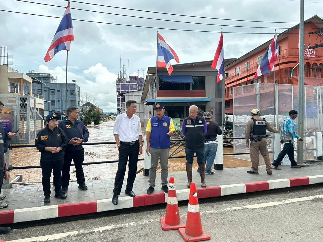 วันที่ 1 ตุลาคม 2568 เวลา 14.00 น. นายรัฐพล นราดิศร ผู้ว่าราชการจังหวัดเชียงราย พร้อมคณะ ได้ลงพื้นที่ตรวจติดตามสถานการณ์น้ำในพื้นที่อำเภอแม่สาย จังหวัดเชียงราย โดยมีนายวรายุทธ ค่อมบุญ นายอำเภอแม่สาย นำตรวจสอบแนวป้องกันน้ำท่วมบริเวณสะพานมิตรภาพแม่น้ำสายแห่งที่ 1 หัวฝาย ชุมชนเกาะทราย ไม้ลุงขน ตำบลแม่สาย และแนวตลิ่งแม่น้ำรวกบริเวณบ้านปางห้า ตำบลเกาะช้าง