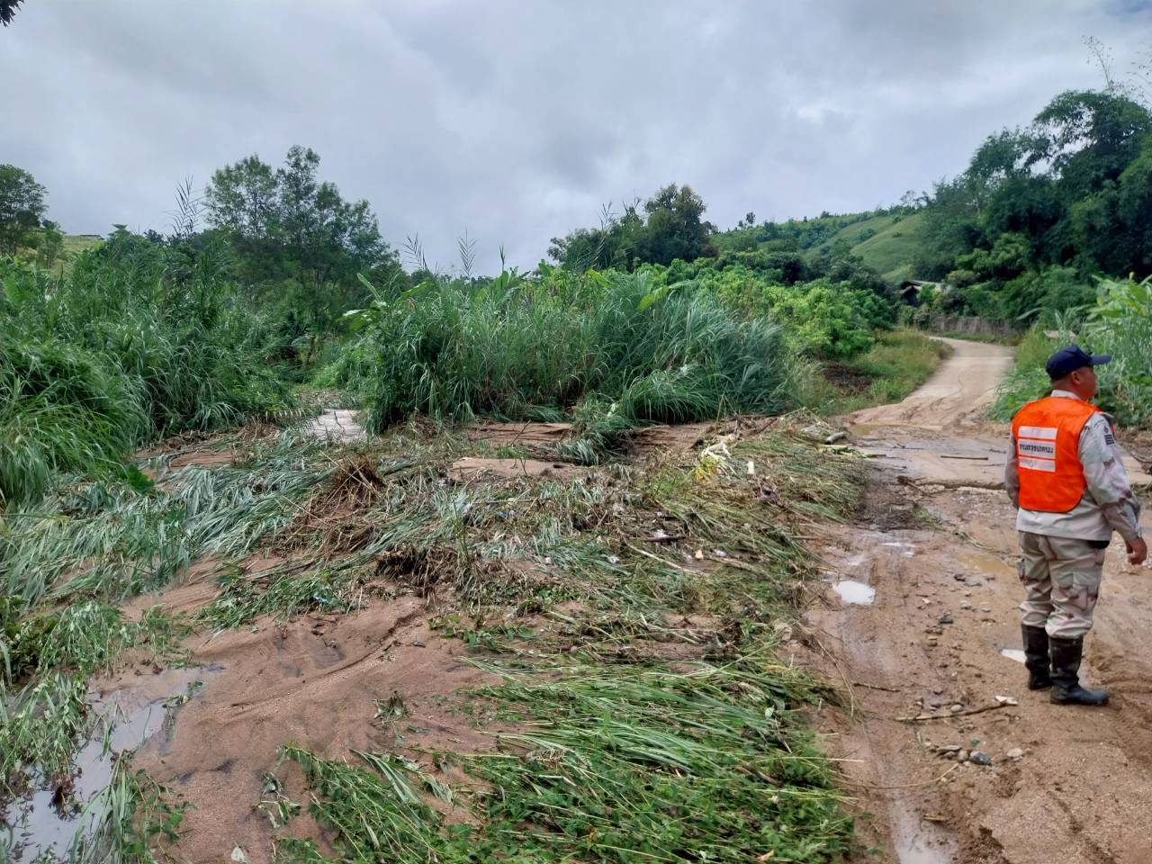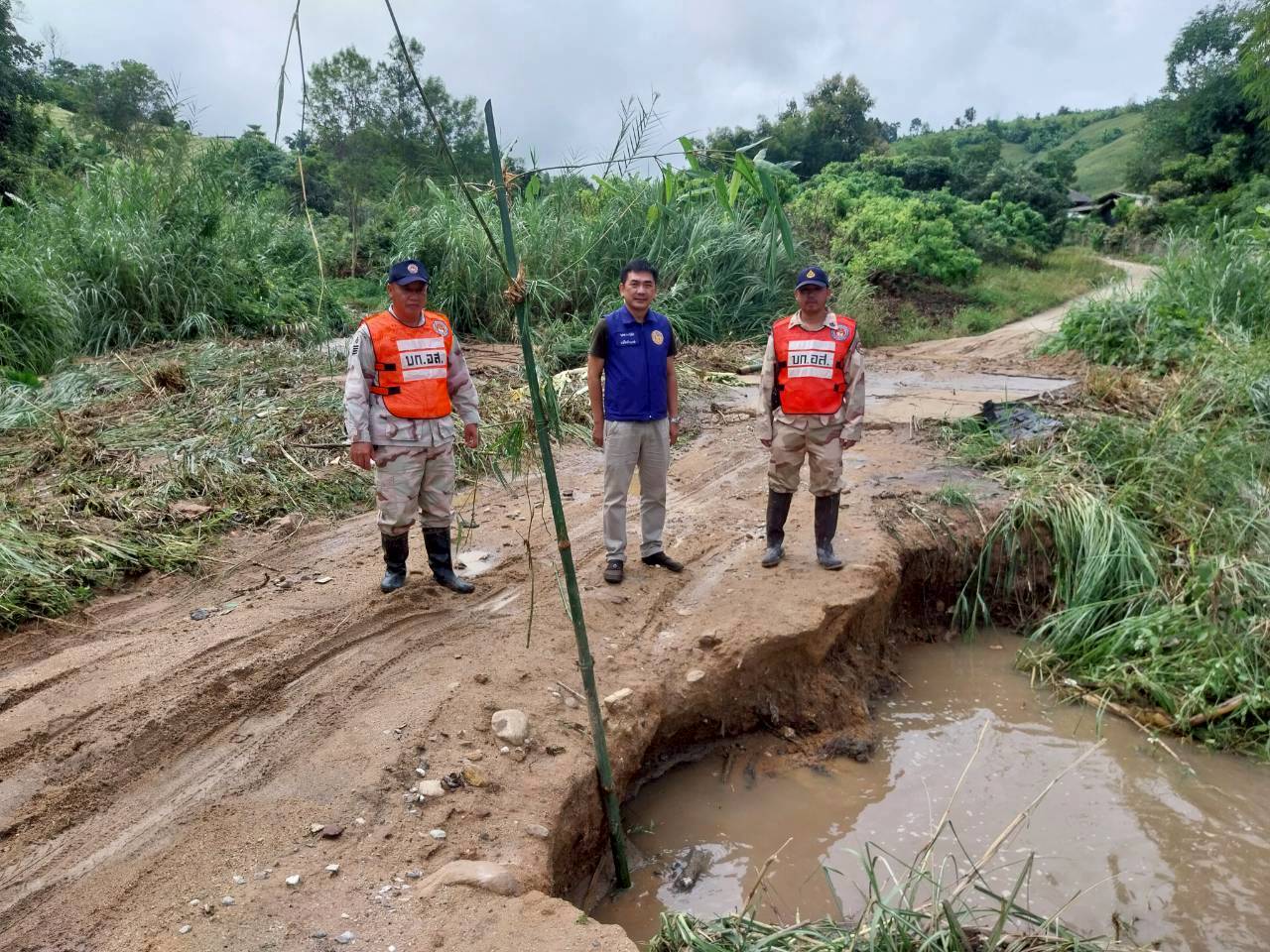 เวลา 09.45 น. ลงพื้นที่สำรวจความเสียหายจากเหตุน้ำป่าไหลหลาก ณ บริเวณทางเข้าหย่อมบ้านห้วยโป่งพัฒนา (บ้านแม่ทะลบ) ม.1 ต.แม่ทะลบ และติดตามสถานการณ์น้ำอ่างเก็บน้ำแม่ทะลบหลวง ม.8 ต.แม่ทะลบ อ.ไชยปราการ จ.เชียงใหม่ พบว่า ปริมาณน้ำเก็บกัก 15.300 ล้าน.ลบ.ม. ระดับน้ำ 570.78 ม.รทก. ปริมาณน้ำปัจจุบัน 15.63691 ล้าน.ลบ.ม. คิดเป็นร้อยละ 102.20 เปิดน้ำ 0.10 ม. ระบายน้ำผ่าน outlet 0.72 ลบ.ม./วินาที