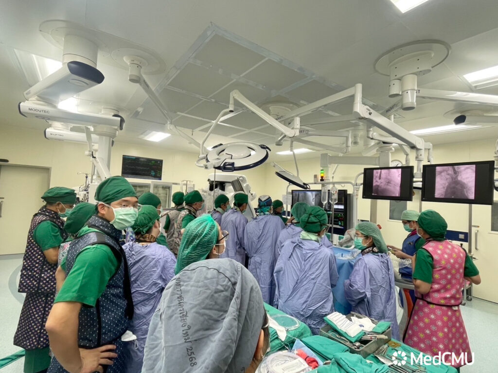 การผ่าตัดครั้งนี้นำโดย อ.พญ.ทรรศลักษณ์ ทองหงษ์ หน่วยโรคหัวใจและหลอดเลือด ภาควิชาอายุรศาสตร์ ร่วมกับ รศ.นพ.นพพล ทักษอุดม หน่วยศัลยศาสตร์ทรวงอก หัวใจและหลอดเลือด ภาควิชาศัลยศาสตร์ และ อ.นพ.รังสฤษฎ์ กาญจนะวณิชย์ อายุรแพทย์โรคหัวใจ และที่ปรึกษาศูนย์ความเป็นเลิศทางการแพทย์ คณะแพทยศาสตร์ มหาวิทยาลัยเชียงใหม่ โดยมีทีมแพทย์ผู้เชี่ยวชาญจาก Cheng Hsin General Hospital, Taipei ได้แก่ Wei-Hsien Yin, MD, Yung-Tsia Lee, MD และ Huan-Chiu Lin, MD รวมทั้งทีมแพทย์สหสาขา ได้แก่ ทีมอายุรแพทย์โรคหัวใจเฉพาะทางด้านการทำหัตถการ (Intervention cardiology team), ทีมศัลยแพทย์หัวใจ (Cardiac surgery team), ทีมวิสัญญีแพทย์ (Anesthesiology team) และทีมพยาบาลห้องปฏิบัติการสวนหัวใจและห้องผ่าตัด ที่ประสานงานกันอย่างใกล้ชิดเพื่อดูแลผู้ป่วยอย่างรอบด้าน