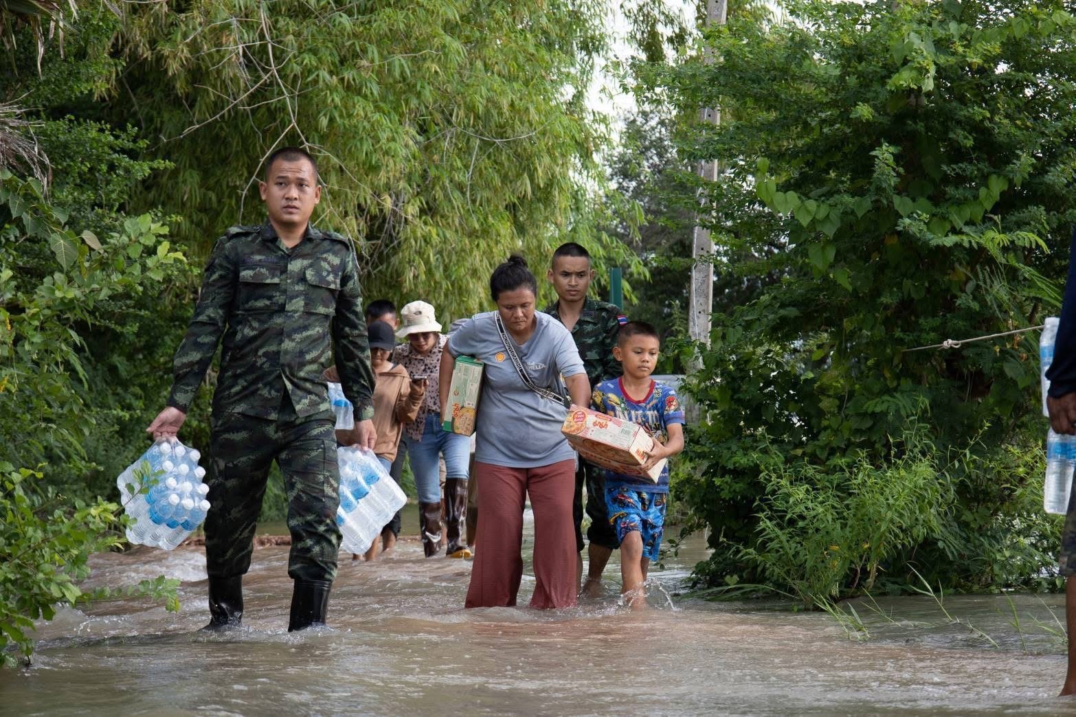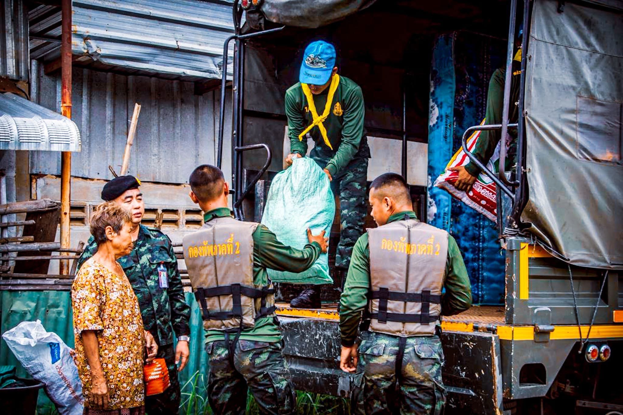 มีความห่วงใยต่อพี่น้องประชาชนผู้ได้รับผลกระทบจากอุทกภัย โดยได้ติดตามสถานการณ์อย่างใกล้ชิด พร้อมสั่งการให้ศูนย์บรรเทาสาธารณภัยกองทัพบก และหน่วยทหารในพื้นที่กองทัพภาคที่ 1-3 เข้าช่วยเหลือประชาชนอย่างต่อเนื่อง อาทิ กองพันทหารม้าที่ 27, กรมทหารม้าที่ 1 รักษาพระองค์, กรมทหารม้าที่ 4 รักษาพระองค์, กรมทหารม้าที่ 5 รักษาพระองค์, กรมทหารราบที่ 2 รักษาพระองค์, กองพันซ่อมบำรุง กรมสนับสนุนที่ 12, หน่วยเฉพาะกิจกรมทหารพรานที่ 21, กรมทหารราบที่ 6, กรมทหารราบที่ 8, มณฑลทหารบกที่ 21, มณฑลทหารบกที่ 23, มณฑลทหารบกที่ 24, มณฑลทหารบกที่ 27, หน่วยเฉพาะกิจกรมทหารพรานที่ 36, กรมทหารม้าที่ 2, กรมทหารราบที่ 17, กรมทหารปืนใหญ่ที่ 21, กองพลทหารม้าที่ 1 และกองพลทหารราบที่ 4 โดยได้บรรจุกระสอบทรายทำแนวป้องกันน้ำ, ขนย้ายสิ่งของขึ้นที่สูง, อพยพประชาชนออกจากพื้นที่เสี่ยงภัย, ลงพื้นที่มอบถุงยังชีพ, จัดชุดแพทย์เคลื่อนที่ตรวจสุขภาพประชาชน พร้อมสนับสนุนส่วนราชการในพื้นที่จัดตั้งกองอำนวยการศูนย์พักพิง และจัดรถครัวสนามเพื่อดูแลเสริมปัจจัยการดำรงชีพ ขณะเดียวกันได้จัดกำลังพลชุดทหารช่างเข้าซ่อมแซมถนนและสะพานที่ถูกกระแสน้ำตัดขาด เพื่ออำนวยความสะดวกด้านการจราจรให้ประชาชน พร้อมฟื้นฟูทำความสะอาดในพื้นที่น้ำลด เพื่อให้กลับมาดำเนินชีวิตได้ตามปกติ