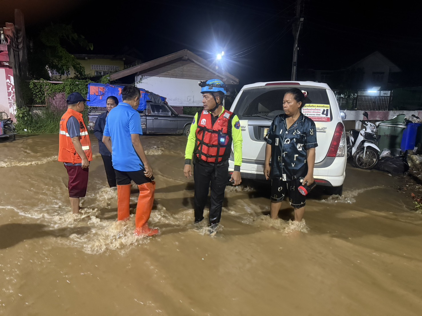 ขณะเดียวกัน ตามที่ได้เกิดฝนตกหนักบริเวณภาคเหนือและฝนตกสะสมในพื้นที่ทำให้ปริมาณน้ำในแม่น้ำยมเพิ่มสูงขึ้นอย่างรวดเร็วเออล้นตลิ่งไหลเข้าท่วมบ้านเรือนราษฎรในเขตอำเภอเมืองสุโขทัย จุดที่ 1 บริเวณวัดปากแคว จุดที่ 2 หมู่ 1 ตำบลปากแคว และจุดที่ 3 บริเวณประตูน้ำเฟื่องฟ้า โดยฝ่ายปกครองจังหวัดสุโขทัย องค์กรปกครองส่วนท้องถิ่น หน่วยทหาร และประชาชนจิตอาสา นำกำลังมาบรรจุกระสอบทรายเพื่อกันน้ำในเบื้องต้น แนวโน้มสถานการณ์ คาดว่าปริมาณน้ำในแม่น้ำยมจะเพิ่มขึ้น มีการจัดเวรยามเฝ้าระวังอย่างต่อเนื่อง ขณะที่ตั้งแต่ เวลา 02.30 น. นางพัฒสอน ดอนพิมพา นายกเทศมนตรีเมืองสุโขทัยธานี ลงพื้นที่จุดเสี่ยง ใกล้เคียงร้านอาหารเฟื่องฟ้า ชุมชนคูหาสุวรรณ อำเภอเมืองสุโขทัย จังหวัดสุโขทัย ซึ่งน้ำได้ไหลเข้าท่วมบ้านเรือนประชาชนบางส่วน หาแนวทางแก้ไข และช่วยเหลือเคลื่อนย้ายผู้สูงอายุออกจากพื้นที่