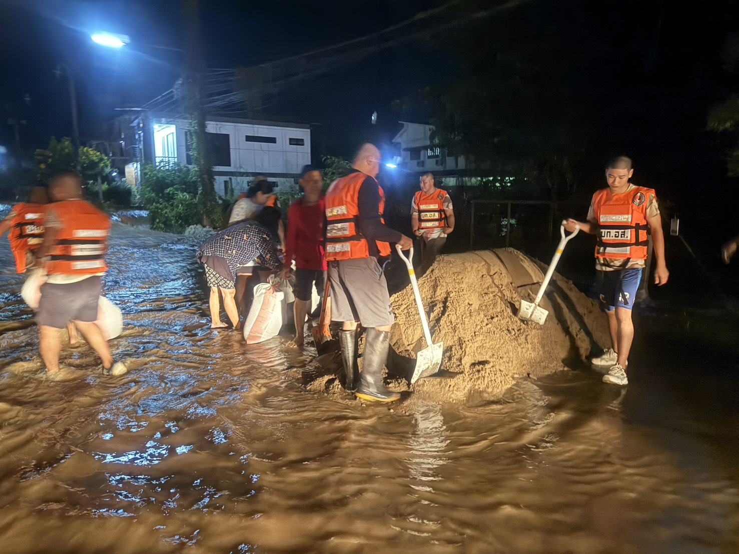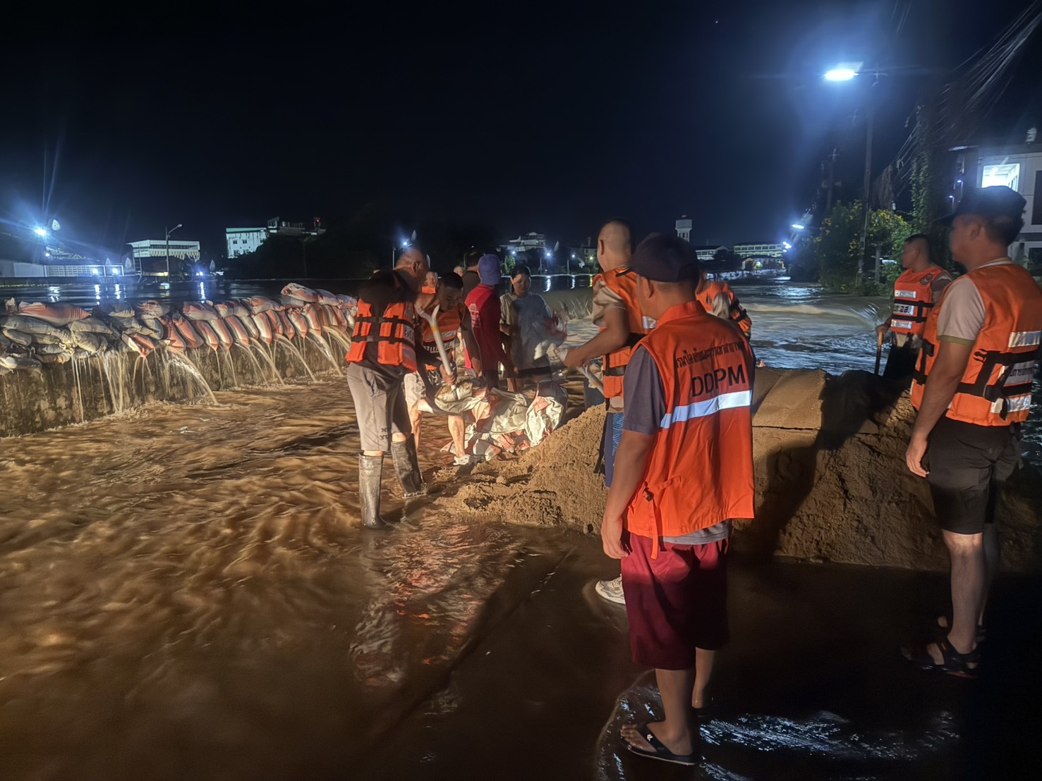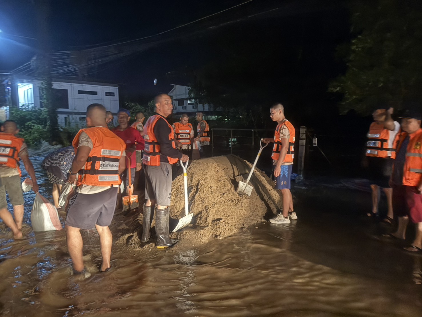 เมื่อวันที่ 3 ตุลาคม 2568 เวลา 03.30 น. พันเอก พิทยา ราชะพริ้ง รองผู้อำนวยการรักษาความมั่นคงภายในจังหวัดสุโขทัย ฝ่ายทหาร พร้อมด้วย เจ้าหน้าที่กองอำนวยการรักษาความมั่นคงภายในจังหวัดสุโขทัย และชุดปฏิบัติการบรรเทาสาธารณภัย และจิตอาสาภัยพิบัติ จาก กองพันทหารเสนารักษ์ที่ 23 กองบัญชาการช่วยรบที่ 3 ดำเนินการวางกระสอบทรายเพื่อเสริมพนังกั้นน้ำริมแม่น้ำยม บริเวณสะพานโตโยต้า หมู่ที่ 1 ตำบลปากแคว อำเภอเมืองสุโขทัย จังหวัดสุโขทัย