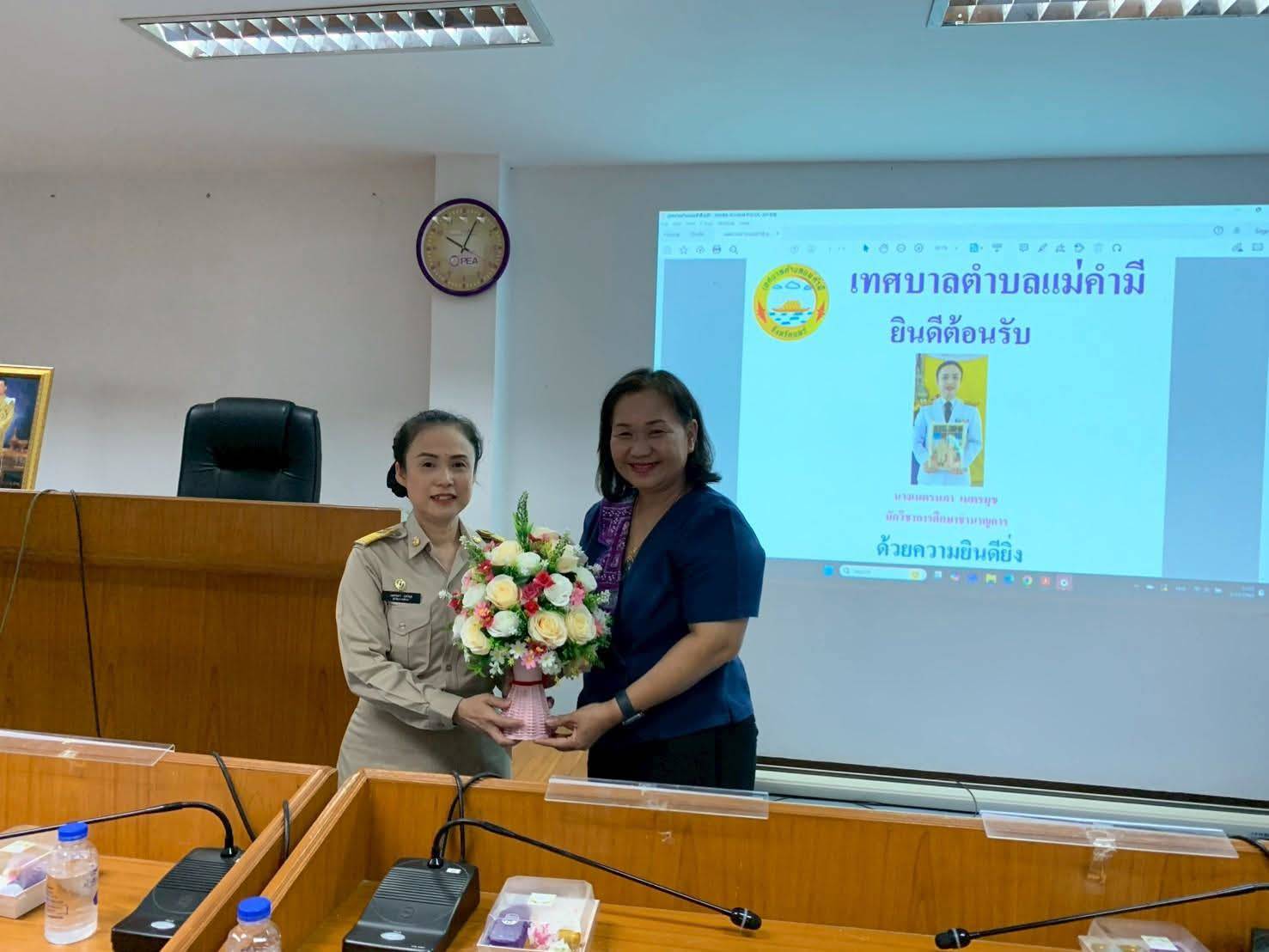 เมื่อวันที่ 3 ตุลาคม 2568 นางสร้อยทอง หล้าคำมี นายกเทศมนตรีตำบลแม่คำมี.ร้องกวาง จ.แพร่ คณะผู้บริหาร หัวหน้าส่วนราชการ และพนักงานเทศบาล กล่าวแสดงความยินดีและให้การต้อนรับ นางเนตรนภา เนตรมุข ในการย้ายมาดำรงตำแหน่งนักวิชาการศึกษาชำนาญการ สังกัดกองการศึกษา เทศบาลตำบลแม่คำมี ซึ่งโอนย้ายมาจากองค์การบริหารส่วนตำบลเหมืองหม้อ อำเภอเมืองแพร่ จังหวัดแพร่ ณ ห้องประชุมสภาเทศบาลตำบลแม่คำมี