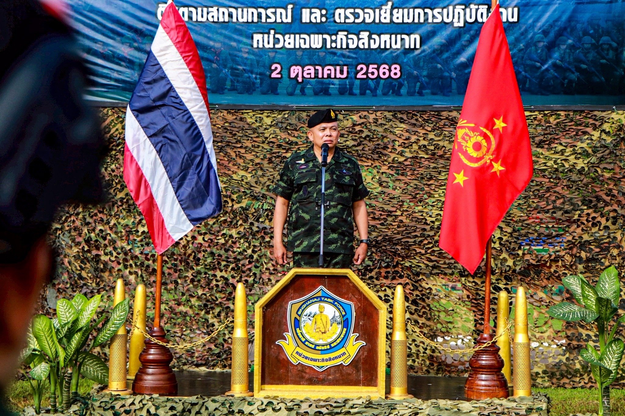 วันที่ 2 -3 ต.ค. 68 พ.อ.ยอดชาย พวงวรินทร์ ผบ.ฉก.สิงหนาท ให้การต้อนรับ พลโท วรเทพ บุญญะ แม่ทัพภาคที่ 3 / ผู้บัญชาการศูนย์ปฏิบัติการกองทัพภาคที่ 3 และคณะ ในโอกาสเดินทางมาติดตามสถานการณ์พื้นที่ชายแดน และ ตรวจเยี่ยมการปฏิบัติงานของหน่วย เพื่อรับทราบข้อมูลข่าวสารและสถานการณ์พื้นที่ตามแนวชายแดนด้านจังหวัดแม่ฮ่องสอน ทั้งนี้ได้พบปะกำลังพล มอบสิ่งของบำรุงขวัญเพื่อเป็นขวัญกำลังใจแก่เจ้าหน้าผู้ปฏิบัติงานป้องกันชายแดน รวมถึงมอบนโยบายเพื่อเป็นแนวทางให้หน่วยปฏิบัติ สำหรับเตรียมความพร้อมช่วยเหลือประชาชนในทุกมิติ ทั้งด้านการบรรเทาสาธารณภัย การเตรียมความพร้อมด้านการแก้ไขปัญหาไฟป่าหมอกควัน โดยบูรณาการร่วมกับส่วนราชการทุกภาคส่วนในพื้นที่เพื่อช่วยเหลือพี่น้องประชาชนอย่างเต็มความสามารถ ตามปณิธานที่ยึดถือ “มีวินัย และน้ำใจ ทำอะไรก็สำเร็จ”