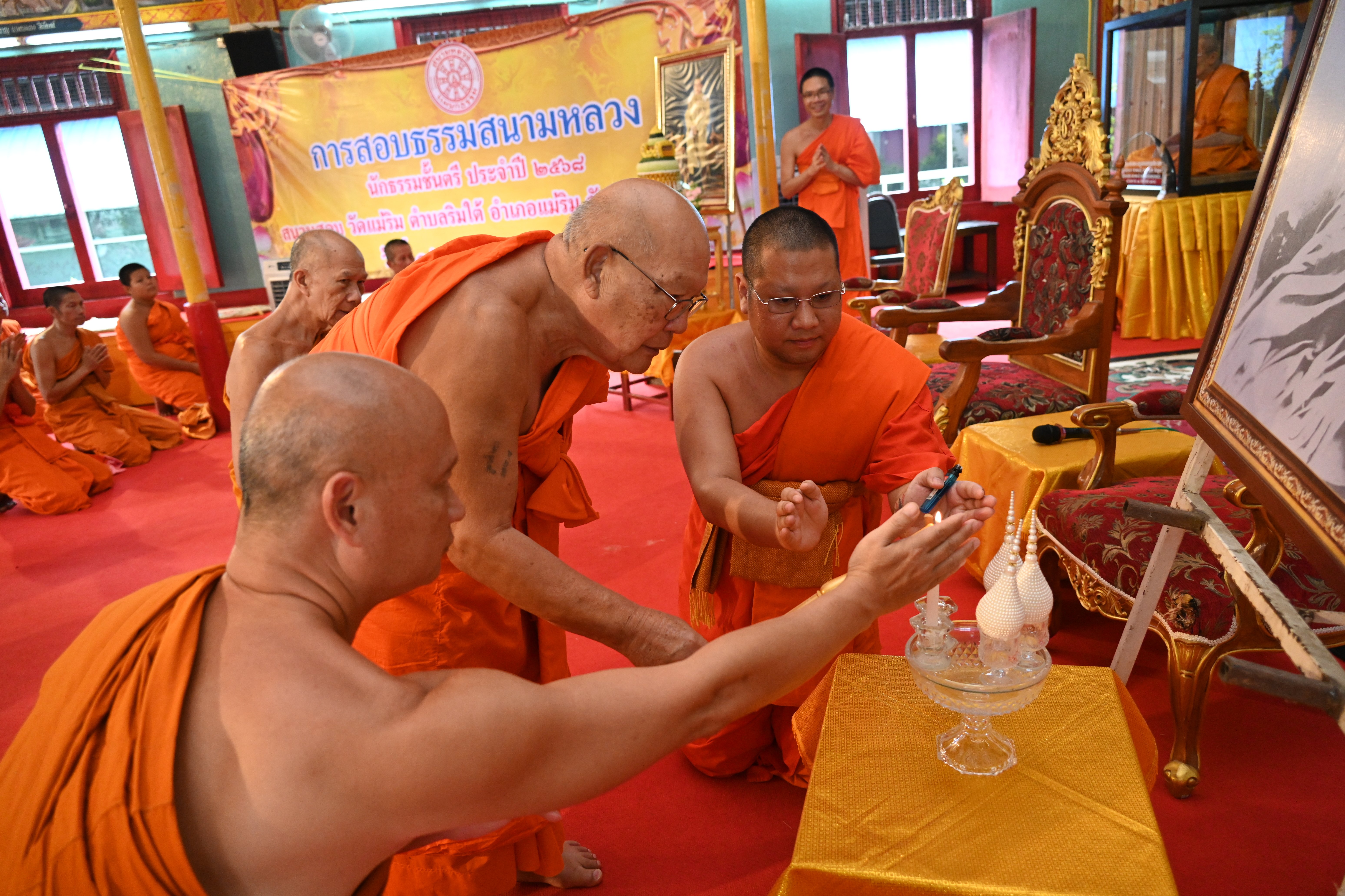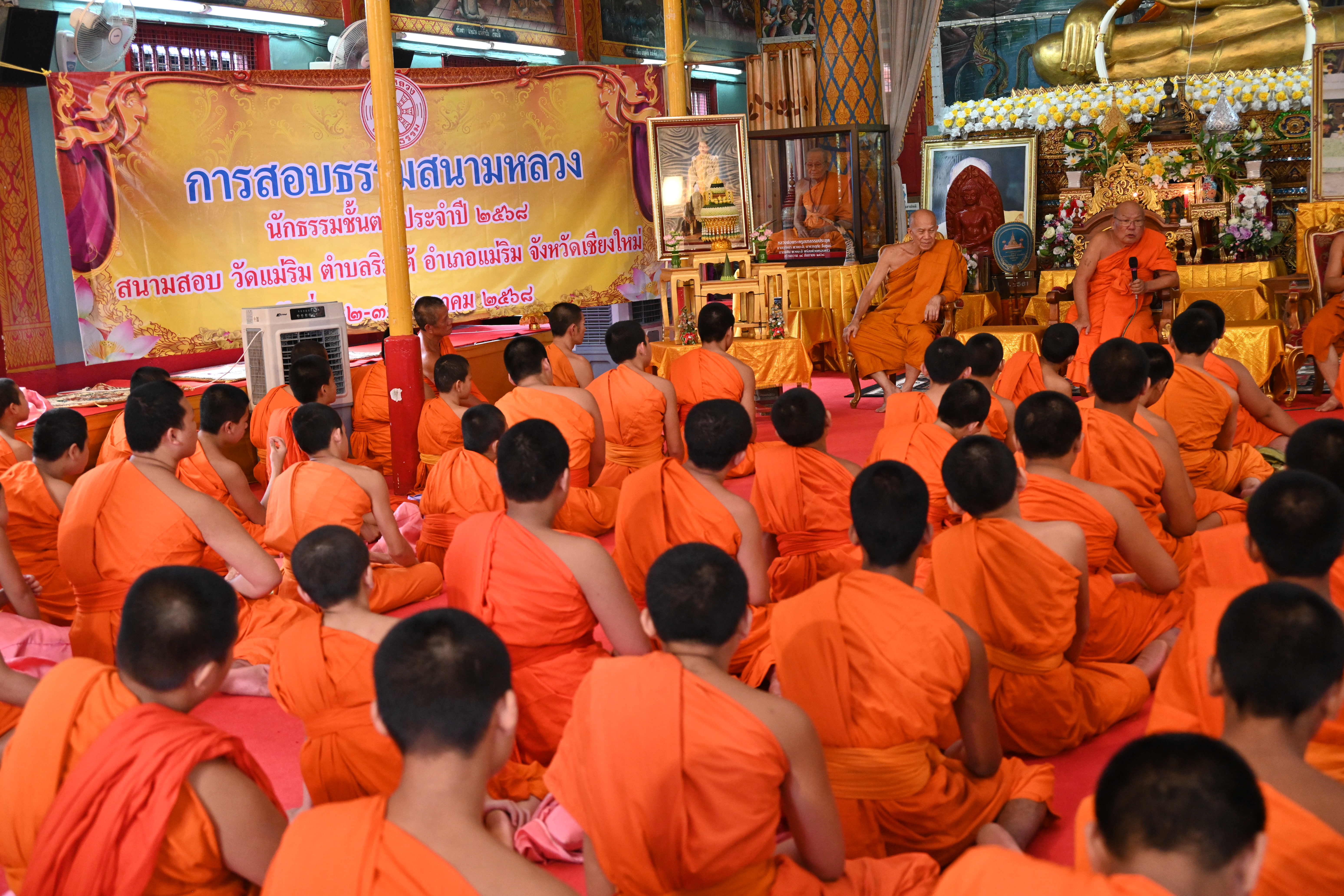 วันเสาร์ที่ 4 ตุลาคม 2568 เวลา 13.00 น. พระเทพมังคลาจารย์ เจ้าคณะจังหวัดเชียงใหม่ เจ้าอาวาสวัดท่าตอน พระอารามหลวง เมตตาเป็นประธานเปิดสนามสอบธรรมสนามหลวง นักธรรมชั้นตรี ประจำปี 2568 ณ วัดแม่ริม และให้โอวาทแก่ภิกษุ – สามเณร วันนี้สอบวิชาวินัย โดยมีพระครูสิริอาภากร เจ้าคณะอำเภอแม่ริม พระครูมนูบุญญากร ดร. พระวิสุทธิวัชราภรณ์ ดร. รองเจ้าคณะอำเภอแม่ริม พระครูสุปุญญานุยุต เจ้าคณะตำบลสะลวง คณะกรรมการ กองงานเลขานุการเจ้าคณะจังหวัด และผู้ที่เกี่ยวข้อง ถวายการต้อนรับ ณ วัดแม่ริม ตำบลริมใต้ อำเภอแม่ริม จังหวัดเชียงใหม่.