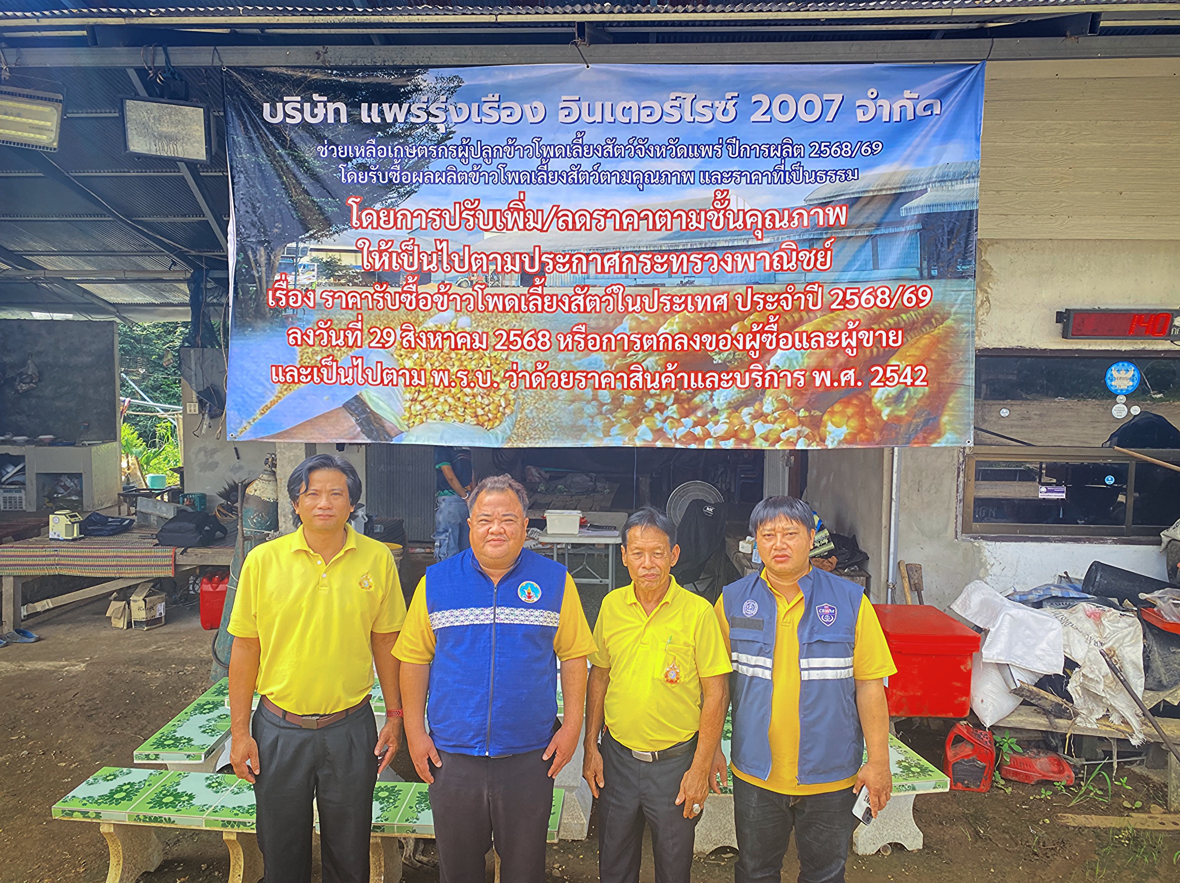 พาณิชย์จังหวัดแพร่ ติดตามการรับซื้อข้าวโพดเลี้ยงสัตว์ ย้ำผู้ประกอบการปฏิบัติตามกฎหมาย สร้างความเป็นธรรมให้เกษตรกร