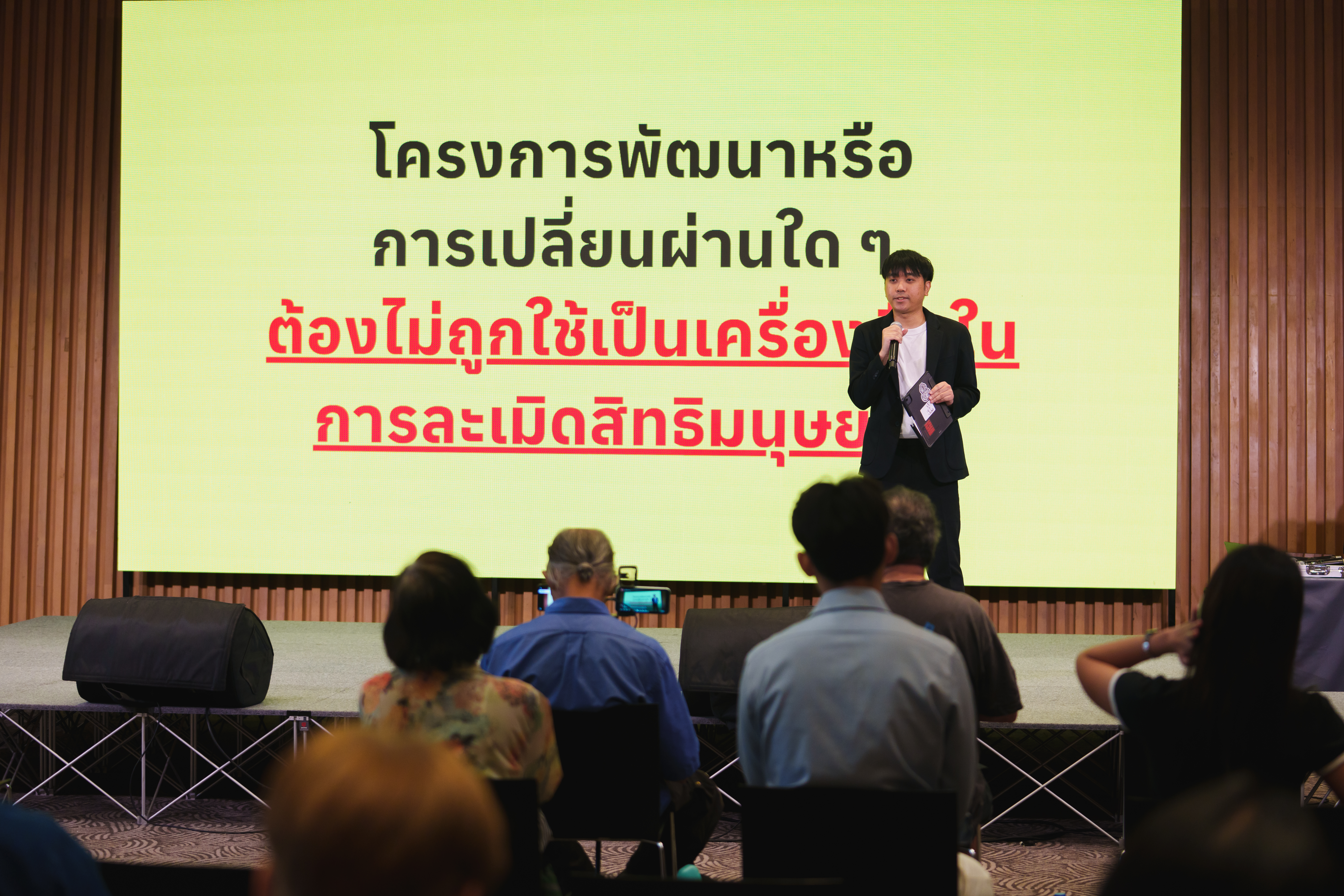 เพราะชุมชนในประเทศไทยบางส่วนไม่ได้รับสิทธิที่เพียงพอ พวกเขาจึงออกมาเรียกร้องถึงผลกระทบของการสร้างโครงการขนาดใหญ่ เช่น โครงการแลนด์บริดจ์และกฎหมาย SEC ที่เชื่อมโยงระบบคมนาคมขนส่งระหว่างอ่าวไทยและทะเลอันดามัน โครงการจัดการน้ำแบบคอนกรีต โครงการ EEC โครงการเขตพัฒนาพิเศษภาคตะวันออกภายใต้นโยบายไทยแลนด์ 4.0 แม้รัฐจะวางแผนเพื่อยกระดับภาคส่วนหรือประเทศ แต่กลับพบว่าประชาชนกลับไม่ได้แสดงความคิดเห็นอย่างชอบธรรม อีกทั้งยังไม่มีโอกาสพูดถึงผลกระทบที่ได้รับ สิ่งเหล่านี้นับเป็นการถูกละเมิดสิทธิมนุษยชน