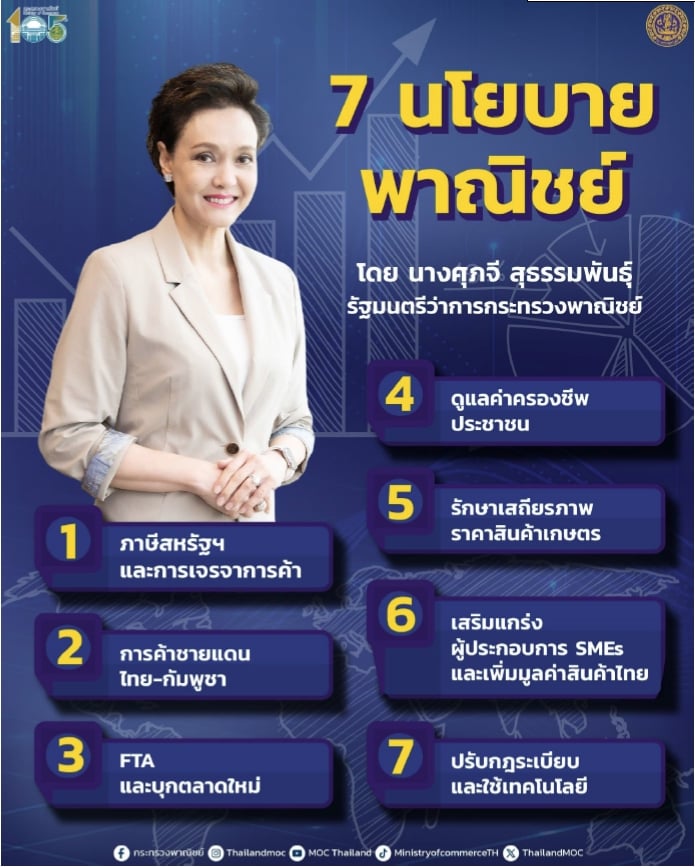 วันอังคารที่ 7 ตุลาคม 2568 เวลา 14.00 น. ร้อยตรี จักรา ยอดมณี รองปลัดกระทรวงพาณิชย์ เป็นประธาน การประชุมหารือและติดตามการดำเนินงานของสำนักงานพาณิชย์จังหวัด ผ่านระบบออนไลน์ ครั้งที่ 1/2569 เพื่อเสริมสร้างประสิทธิภาพการดำเนินงานตามนโยบายของกระทรวงพาณิชย์ รวมถึงติดตามความก้าวหน้าของภารกิจสำคัญในระดับพื้นที่ โดยมีประเด็นสำคัญในการประชุมชี้แจงภารกิจของหน่วยงานในกระพรวงพาณิชย์ การมอบหมายนโยบายของ รัฐมนตรีว่าการกระทรวงพาณิชย์ (นางศุภจี สุธรรมพันธุ์) เมื่อวันที่ 1 ตุลาคม 2568 ได้มอบนโยบายกระทรวงพาณิชย์7 เรื่องหลัก ภายใต้นโยบาย “Quick Big Win” แก้ปัญหาเศรษฐกิจ ดังนี้
