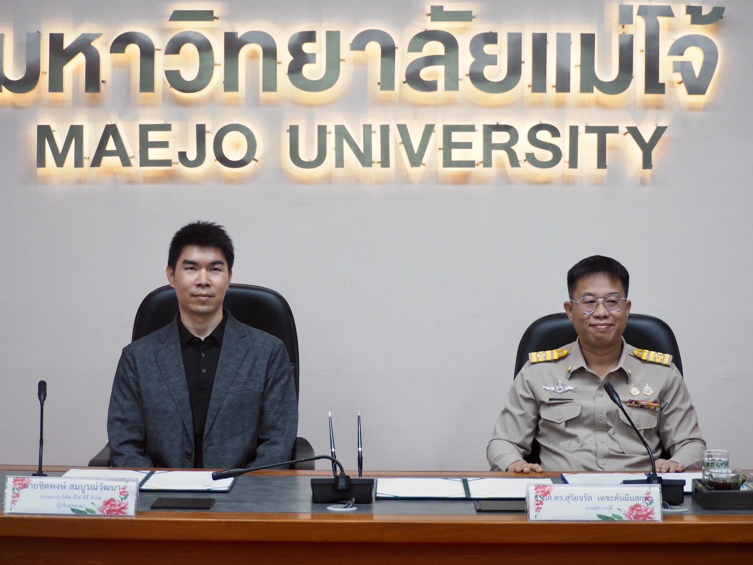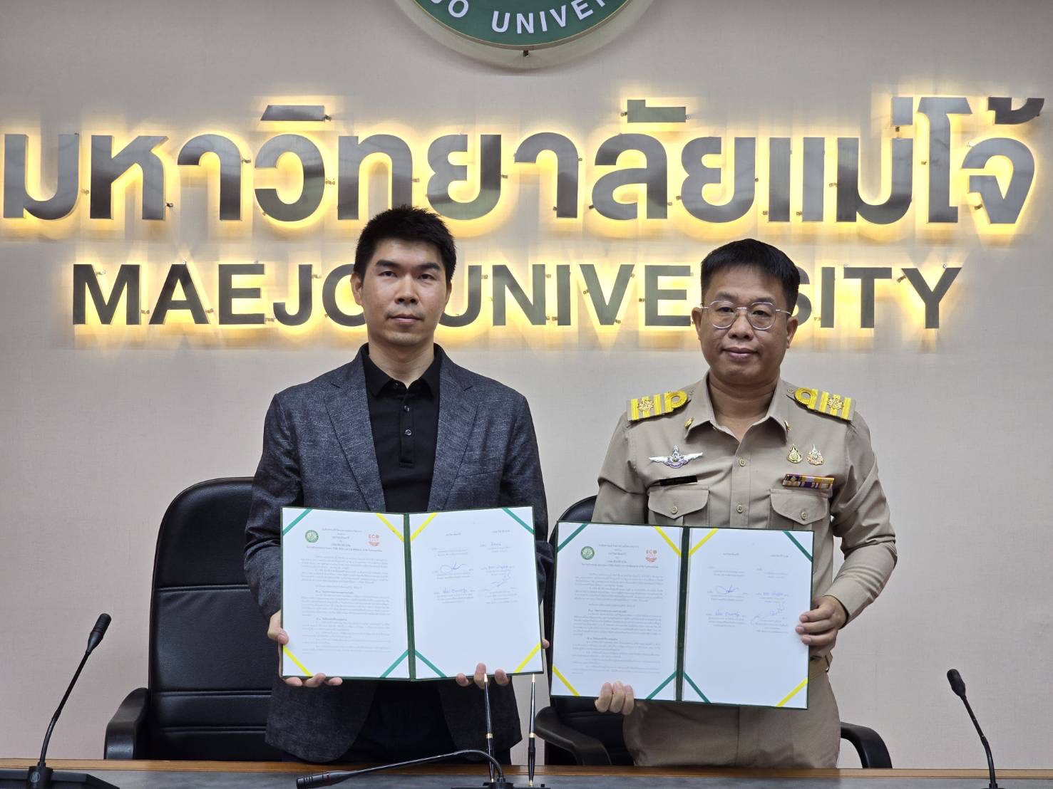 วันที่ 8 ตุลาคม 2568 มหาวิทยาลัยแม่โจ้ โดยวิทยาลัยพลังงานทดแทนได้จัดพิธีลงนามบันทึกความเข้าใจ (MOU) ร่วมกับ บริษัท อีโค่ อีซี่ จำกัด ในนามตัวแทนจำหน่ายของบริษัท ซันโกรเพาเวอร์ ซัพพลาย จำกัด (ประเทศไทย) โดยได้รับเกียรติจาก ผศ.ดร.สุริยจรัส เตชะตันมีนสกุล รองอธิการบดีมหาวิทยาลัยแม่โจ้ และ นายชิตพงษ์ สมบูรณ์วัฒนา กรรมการบริษัท อีโค่ อีซี่ จำกัด เป็นผู้แทนลงนามทั้งสองฝ่าย พร้อมด้วยผู้ช่วยศาสตราจารย์ ดร .นิกราน หอมดวง คณบดีวิทยาลัยพลังงานทดแทน และผู้บริหารของทั้งสองหน่วยงาน ร่วมเป็นพยาน เพื่อเสริมสร้างความร่วมมือทางวิชาการด้านพลังงานทดแทน โดยมุ่งเน้นการพัฒนาหลักสูตร การฝึกอบรม และงานวิจัยด้านระบบผลิตไฟฟ้าพลังงานแสงอาทิตย์ (Solar PV) ณ ห้องประชุมรวงผึ้ง อาคารสำนักงานมหาวิทยาลัย มหาวิทยาลัยแม่โจ้