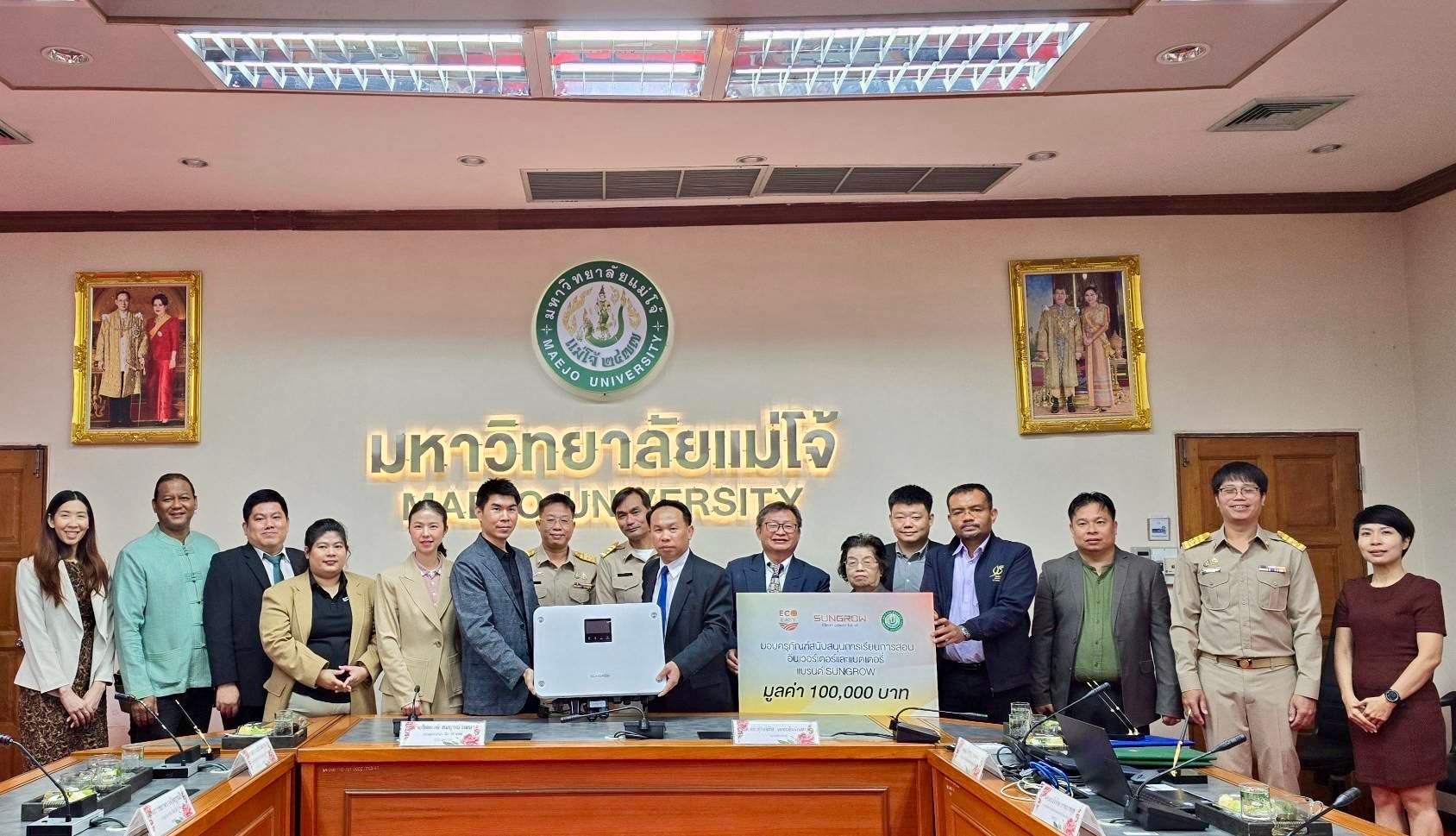 ภายใต้ความร่วมมือนี้ บริษัท ซันโกรเพาเวอร์ ซัพพลาย จำกัด (ประเทศไทย) ได้มอบอุปกรณ์ ได้แก่ อินเวอร์เตอร์และแบตเตอรี่ ให้แก่มหาวิทยาลัยแม่โจ้ เพื่อใช้ในการเรียนการสอน การฝึกปฏิบัติ และการทำวิจัย พร้อมทั้งสนับสนุนการจัดสัมมนาเชิงวิชาการและเวิร์กช็อปอย่างต่อเนื่อง
