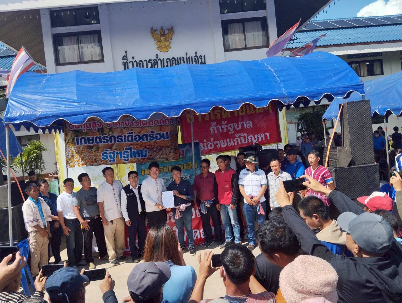 นายอำเภอแม่แจ่ม พร้อมหน่วยงานที่เกี่ยวข้อง รับหนังสือ 6 ข้อเรียกร้องจากกลุ่มเครือข่ายเกษตรอำเภอแม่แจ่ม ที่นัดชุมนุมบริเวณหน้าลานหน้าที่ว่าการอำเภอ