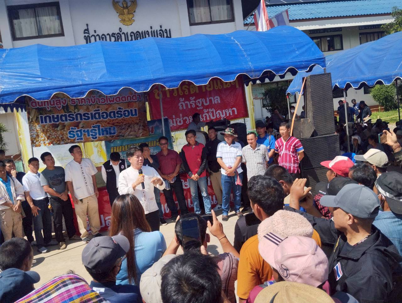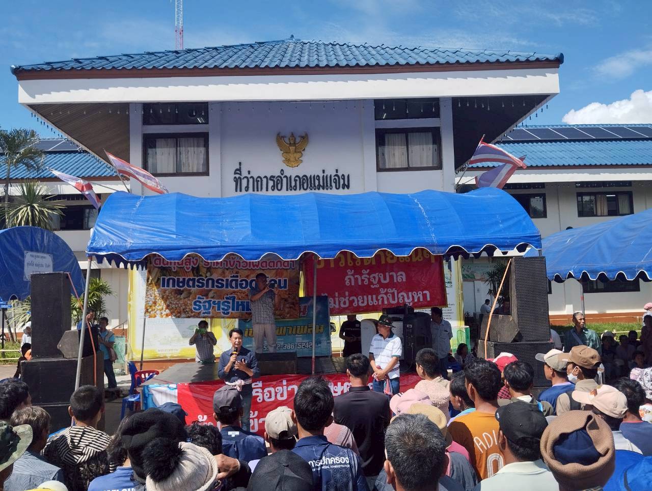 เวลา 10.30 น.แกนนำได้เริ่มปราศรัยชี้แจงวัตถุประสงค์การชุมนุม และขอให้เกษตรกรที่มาร่วมชุมนุมให้อยู่ในความสงบและรักษากติกาในการชุมนุม และได้ยื่นหนังสือถึงนายเกรียงศักดิ์ บุญตาปวน นายอำเภอแม่แจ่มเพื่อขอติดตามข้อเรียกร้อง 6 ข้อของกลุ่มเกษตรกร