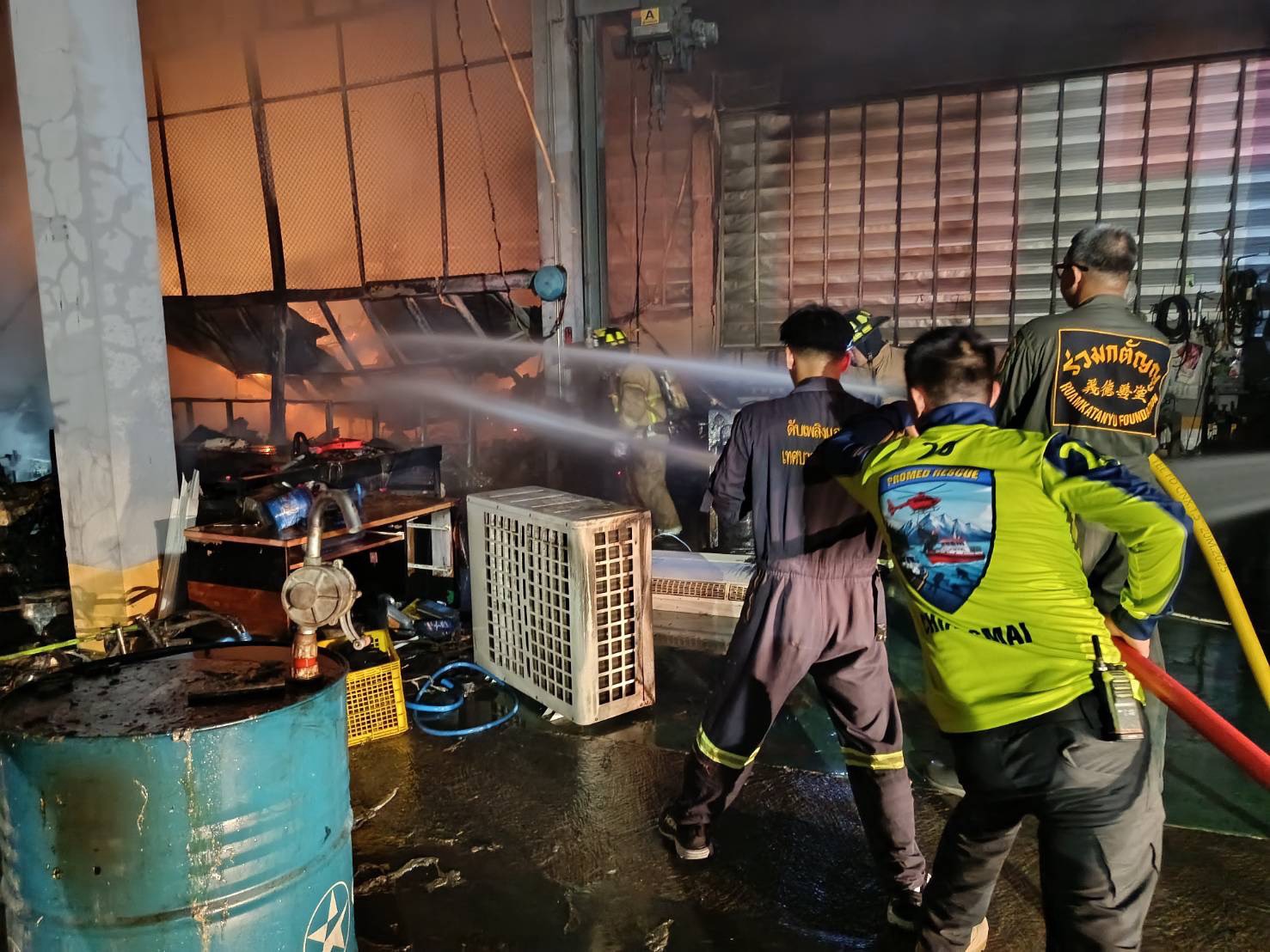 วันที่ 7 ตุลาคม 2568 เวลาประมาณ 21.30 น. คืนที่ผ่านมาทาง พ.ต.อ.ณัฐพล จันมะโน ผกก.สภ.สันกำแพง จ.เชียงใหม่ พร้อมด้วย พ.ต.ต.จักรตุลย์ ทองกิ่ง สว.(สอบสวน) สภ.สันกำแพง ได้รับแจ้งมีเหตุไฟไหม้ที่”บ้านแช่ช้าง” ต.แช่ช้าง อ.สันกำแพง จึงรุดไปที่เหตุสถานที่เกิดเหตุเป็น หจก.เชียงใหม่คูลล์ แอนด์ ทรานสปอร์ต หมู่ 8 ต.แช่ช้าง อ.สันกำแพง จ.เชียงใหม่ ของ นางนุชนาถ อายุ 41 ปี ที่อยู่ ม.8 ต.แช่ช้าง อ.สันกำแพง เป็นอาคารโรงซ่อมรถยนต์และตู้เย็น 2 ชั้นโล่งๆทำด้วยปูนซีเมนต์