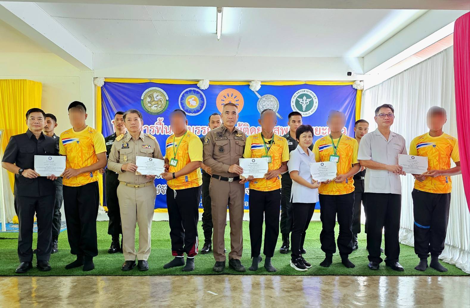 ในพิธีปิด มีการมอบประกาศนียบัตร แก่ผู้ที่ผ่านการฟื้นฟูทั้งหมด 29 ราย ผู้ผ่านการอบรมได้ประกอบพิธีดื่มน้ำพระพุทธมนต์และกล่าวคำปฏิญาณตนว่าจะไม่ยุ่งเกี่ยวกับยาเสพติดอีก พร้อมรับมอบเครื่องมือประกอบอาชีพ เช่น เครื่องตัดหญ้า อุปกรณ์ทำประมง และเครื่องมือช่างตัดผมเพื่อใช้เริ่มต้นชีวิตใหม่หลังจบการฟื้นฟู