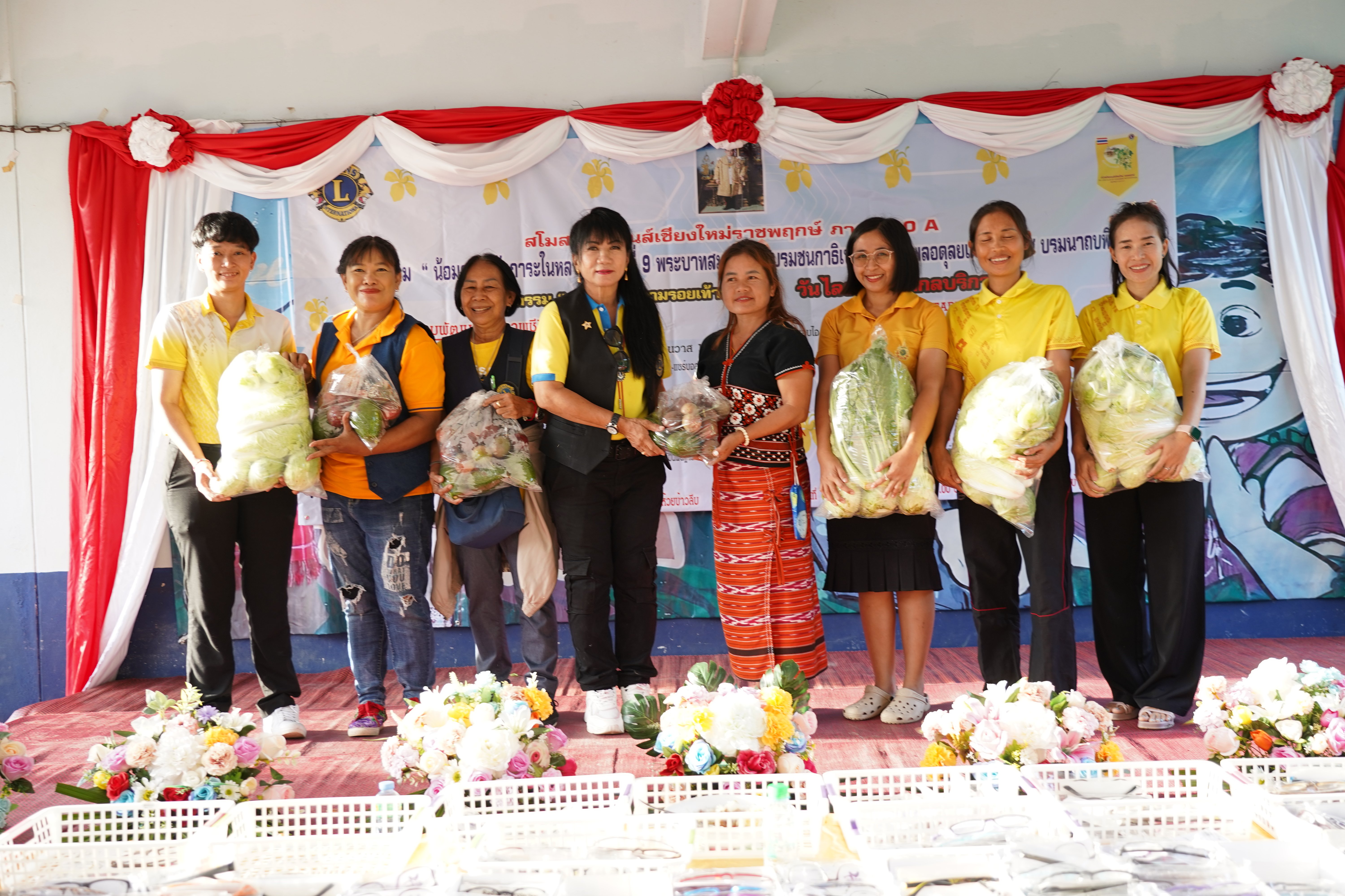 กิจกรรม “วันไลออนส์สากลบริการ” (Starving Project) มอบไอศกรีม 400 ถ้วย โอรีโอ้ 400 ห่อ มาม่า 400 ห่อ น้ำหวานและน้ำดื่มอย่างละ 400 ขวด กิจกรรมพิทักษ์สายตา ตรวจและมอบแว่นสายตาสั้น–ยาว แว่นกันแดด และแว่นตัดแสงคอมพิวเตอร์ ให้แก่ประชาชนจำนวน 300 คน กิจกรรมคุณภาพชีวิตมนุษย์ มอบรองเท้าผ้าใบชาย–หญิง รวม 250 คู่ กิจกรรมต้านภัยหนาว มอบเสื้อกันหนาว 80 ตัว และผ้าห่ม 20 ผืน กิจกรรมต้านภัยโรคร้าย มอบเจลแอลกอฮอล์ หน้ากากอนามัย และผ้าอนามัยให้กับประชาชนในพื้นที่ ทั้งนี้ สโมสรไลออนส์เชียงใหม่ราชพฤกษ์ยังได้มอบสิ่งของและสื่อความรู้ให้กับโรงเรียนในพื้นที่จำนวน 4 แห่ง ได้แก่ โรงเรียนบ้านทุ่งหลวง โรงเรียนบ้านใหม่สวรรค์ โรงเรียนพัฒนาขุนวาง