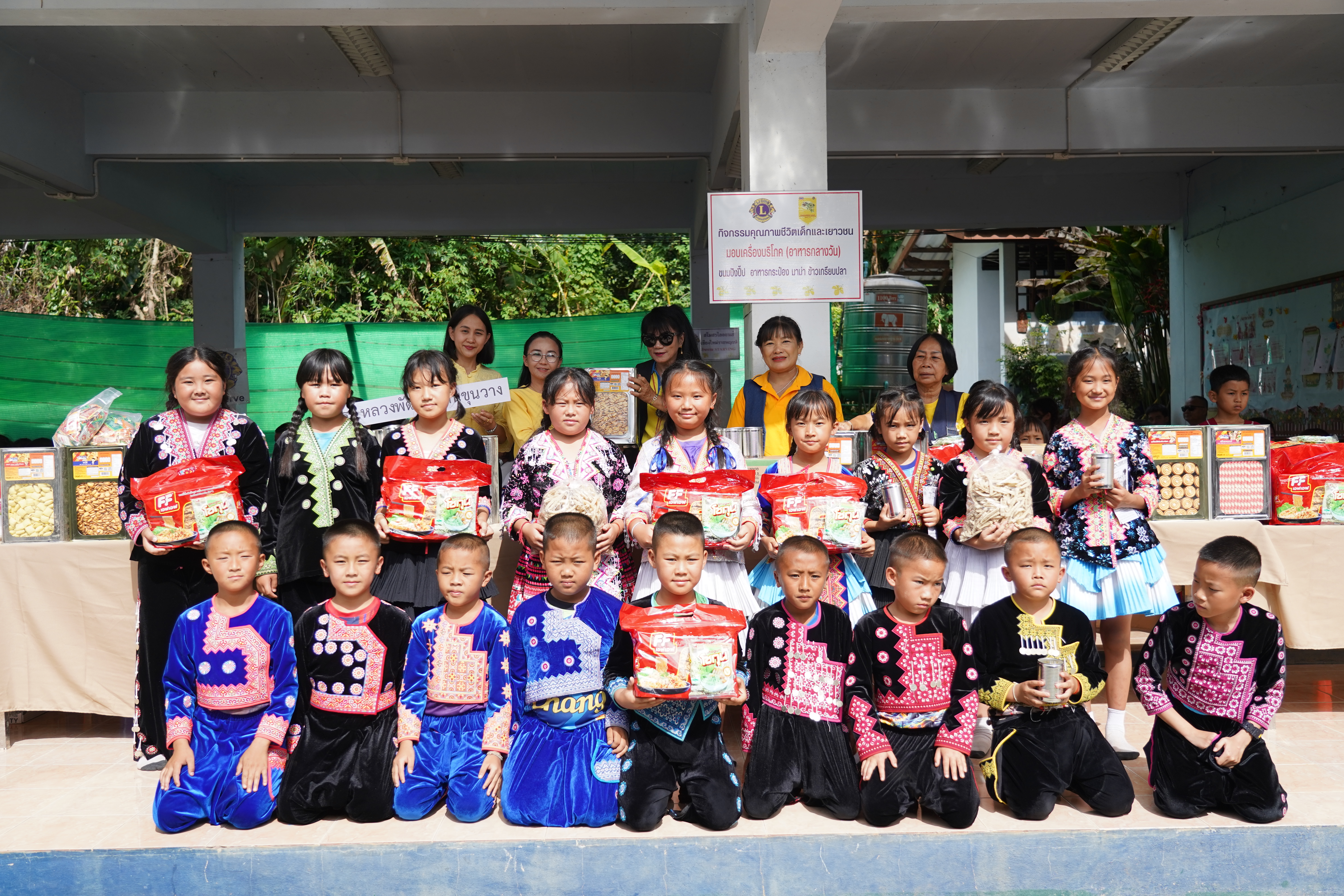 วันที่ 8 ตุลาคม 2568 เวลา 13.00 – 17.00 น. ณ อาคารอเนกประสงค์ โรงเรียนบ้านทุ่งหลวง ตำบลแม่วิน อำเภอแม่วาง จังหวัดเชียงใหม่ สโมสรไลออนส์เชียงใหม่ราชพฤกษ์ ภาค 310 A โดยการนำของ นายกปาฏิหารย์ มังคลาภรณ์ นายกผู้ก่อตั้งสโมสร ไลออนส์เชียงใหม่ราชพฤกษ์ได้จัดกิจกรรมเพื่อสาธารณประโยชน์ ภายใต้โครงการ “น้อมถวายสักการะในหลวงรัชกาลที่ 9 พระบาทสมเด็จพระบรมชนกาธิเบศร มหาภูมิพลอดุลยเดชมหาราช บรมนาถบพิตร” โดยมีวัตถุประสงค์เพื่อเทิดพระเกียรติและสืบสานพระราชปณิธาน “ทำความดีตามรอยเท้าพ่อ” พร้อมทั้งพัฒนาคุณภาพชีวิตเด็ก เยาวชน และประชาชนในพื้นที่ห่างไกล กิจกรรมในครั้งนี้ประกอบด้วย กิจกรรมพัฒนาคุณภาพชีวิตเด็กและเยาวชน มอบอุปกรณ์การเรียน ได้แก่ สมุด 400 เล่ม ดินสอ 400 แท่ง ผ้าแคนวาส 1,200 ชิ้น พร้อมอุปกรณ์กีฬา เช่น เปตอง 16 ชุด (48 ลูก) วอลเลย์บอล 8 ลูกพร้อมตาข่าย 4 ชุด ฟุตบอล 16 ลูก ตะกร้อ 16 ลูก แบตมินตัน และของเล่นสำหรับเด็กเล็ก มอบเครื่องอุปโภค-บริโภค อาทิ ถุงเท้า 1,200 คู่ รองเท้านักเรียน 66 คู่ เสื้อยืด 66 ตัว ผ้าเช็ดตัว 11 ผืน อาหารกระป๋อง 300 กระป๋อง มาม่า 480 ห่อ ขนมปัง แครกเกอร์ และข้าวเกรียบปลา กิจกรรมให้ความรู้ด้านสุขภาพ เรื่อง “การออกกำลังกายสำหรับผู้ป่วยโรคเบาหวาน” และ “ปัจจัยเสี่ยงโรคมะเร็งในเด็ก” พร้อมแจกแผ่นพับความรู้เกี่ยวกับยาเสพติดขั้นพื้นฐานแก่เยาวชน