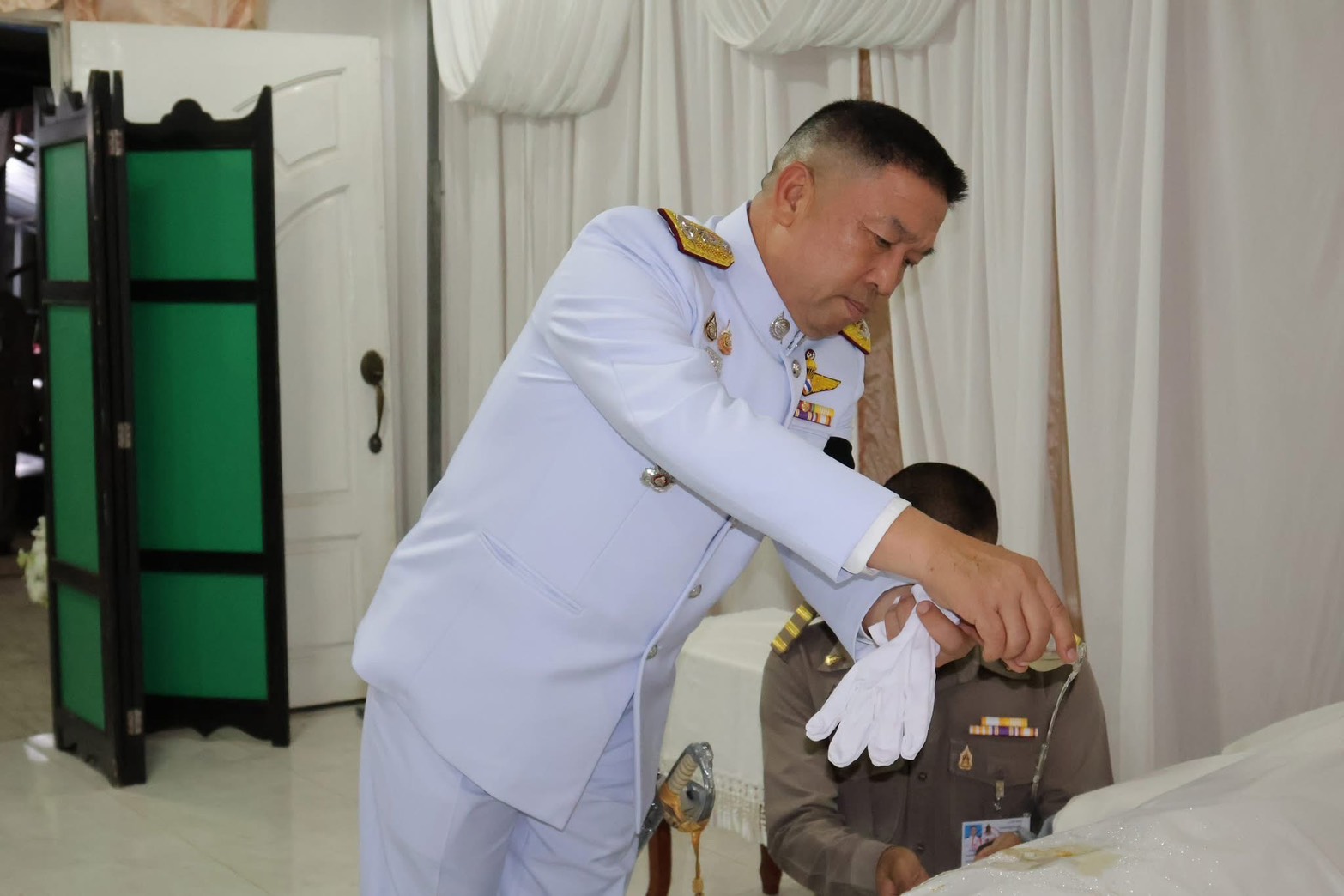 พ.ต.ท.ศิริฌ์ศักดิ์ จิตรหาญญ์ รอง ผกก.ป.ฯ, พ.ต.ท.เอกรัตน์ โภชน์เจริญ รอง ผกก.(สอบสวน)ฯ ข้าราชการตำรวจ ภ.จว.พะเยา และข้าราชการตำรวจ สภ.เมืองพะเยา ร่วมพิธีรดน้ำหลวงอาบศพ พ.ต.ท.วีระพล สำราญใจ รอง ผกก.(สอบสวน)ฯ ณ บ้านที่อยู่อาศัย หมู่ 10 (บ้านดอกบัว)