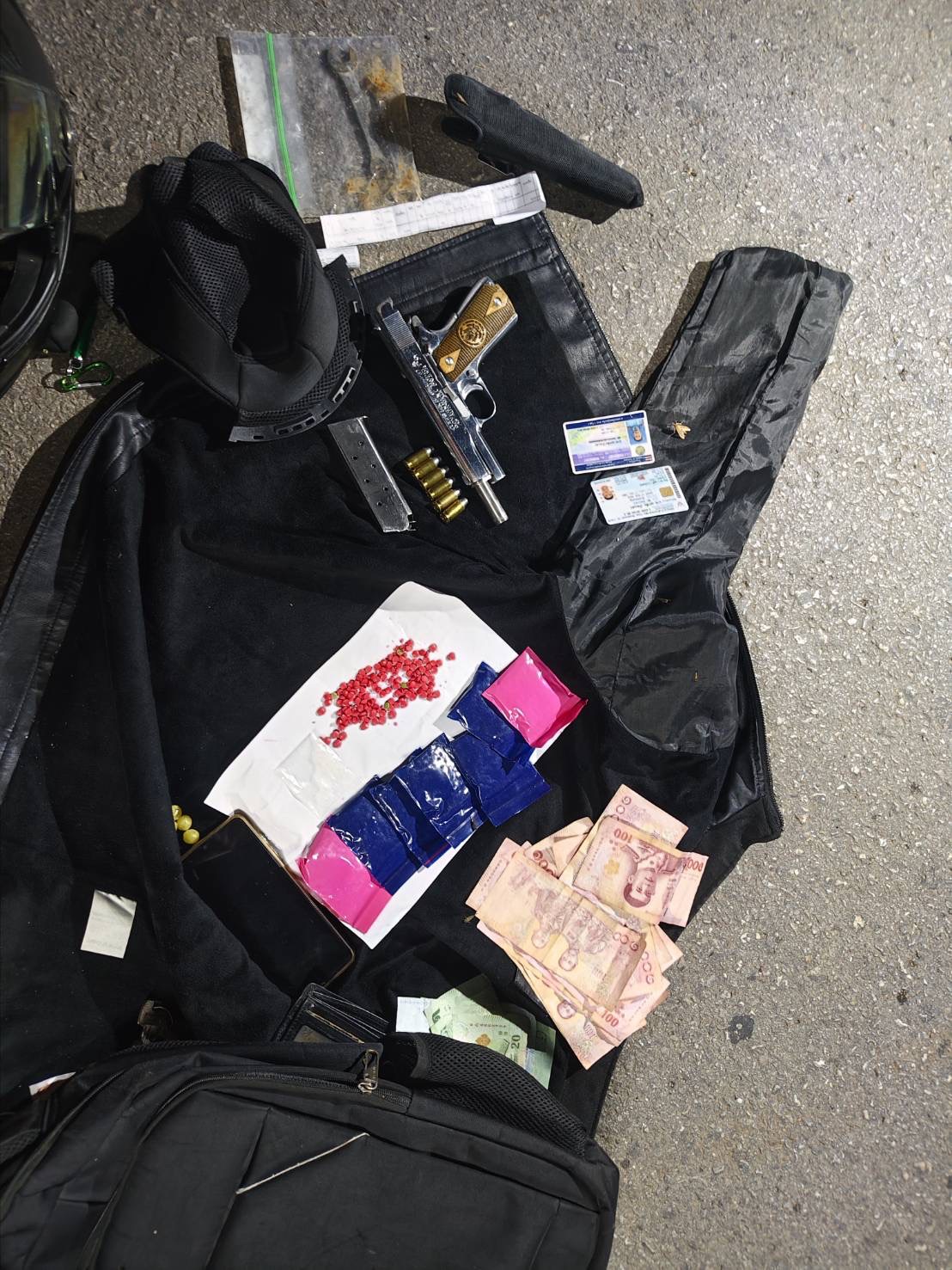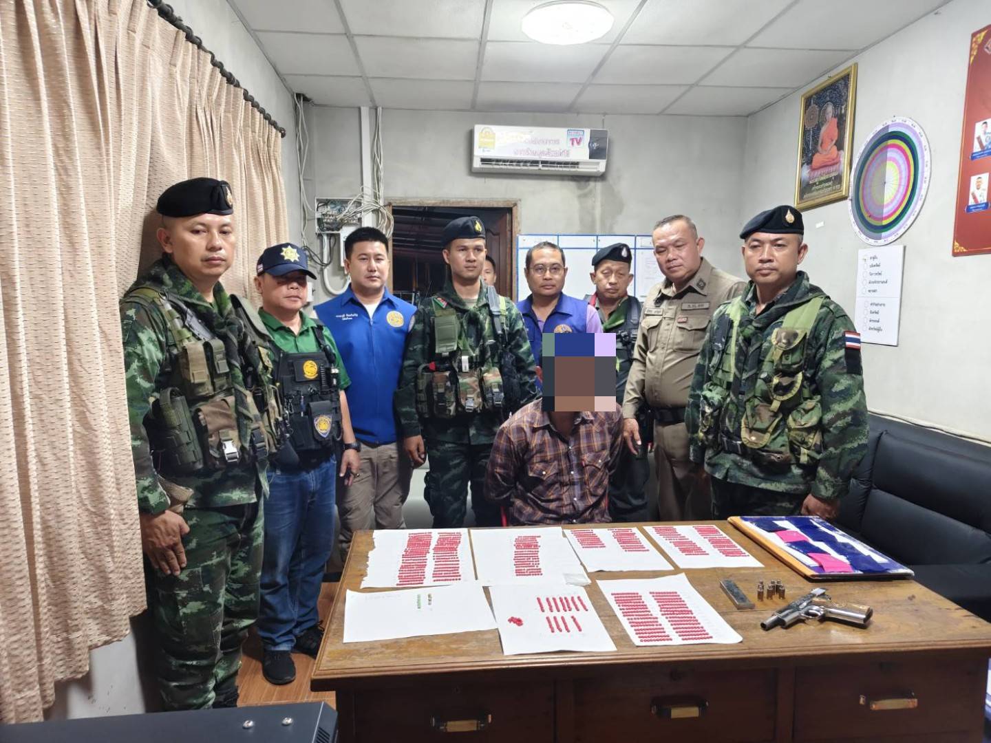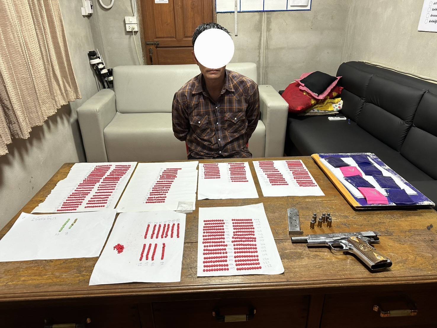 เจ้าหน้าที่สนธิกำลังสามรรถจับกุมผู้ค้าเพื่อดำเนินคดีนายเอกชัย ขอสงวนชื่อสกุล อายุ 44 ปี สัญชาติ ไทย ต.พบพระ อ.พบพระ จ.ตาก พร้อมด้วยของกลาง ยาบ้า จำนวน 1,600 เม็ด ยาไอซ์ จำนวน 1 กรัม อาวุธปืนออโตเมติก ไม่มีหมายเลขทะเบียน ขนาด .45 พร้อมเครื่องกระสุน จำนวน 6 นัด รถจักรยานยนต์ยี่ห้อคาวาซากิ สีขาว-ดำ รุ่นนินจา300 จำนวน 1 คัน กระเป๋าเป้สะพายหลัง สีดำ 1 ใบ ธนบัตรรัฐบาลไทยจำนวน 2,510 บาท โดยกล่าวหาว่าผู้ต้องหามีความผิดฐาน มียาเสพติดให้โทษประเภท 1 (ยาไอซ์และยาบ้า) ไว้ในครอบครองโดยไม่ได้รับอนุญาตและมีไว้เพื่อจำหน่าย และข้อหามีอาวุธปืนและเครื่องกระสุนปืนไว้ในครอบครองโดยไม่ได้รับอนุญาตแล้วพกพาไปในเมืองหมู่บ้านโดยไม่มีเหตุอันควร เหตุเกิดที่ บริเวณถนนหน้าจุดตรวจรักษาความปลอดภัยหมู่บ้านแม่กุหลวง ม.1 ต.แม่กุ อ.แม่สอด จ.ตาก