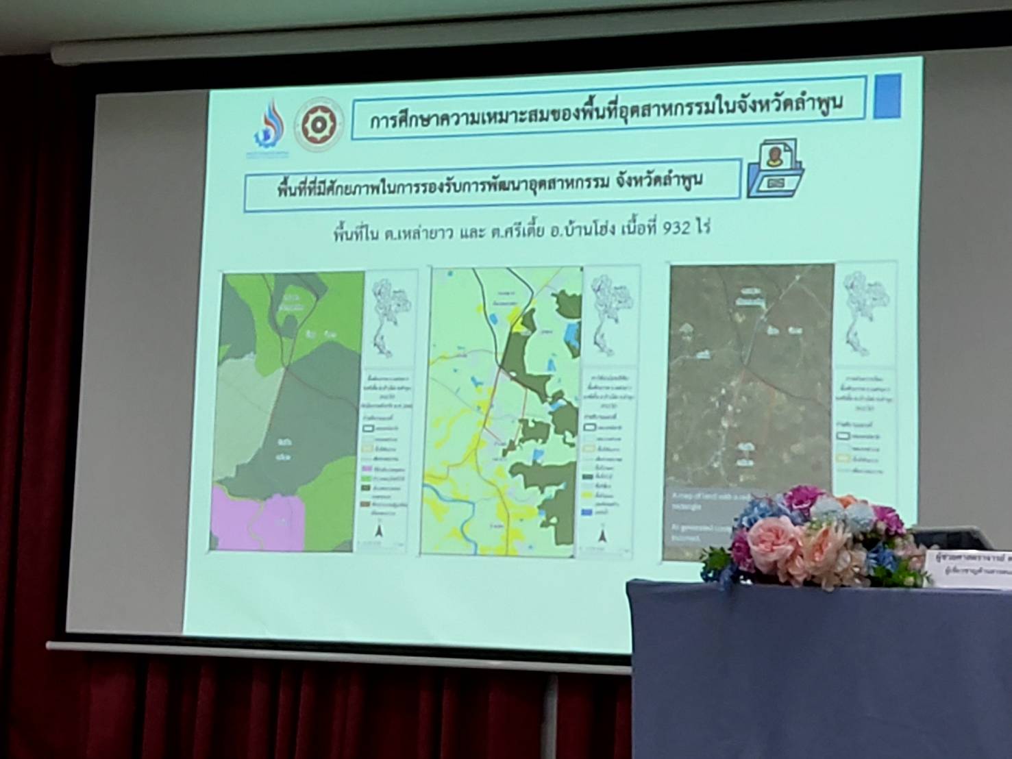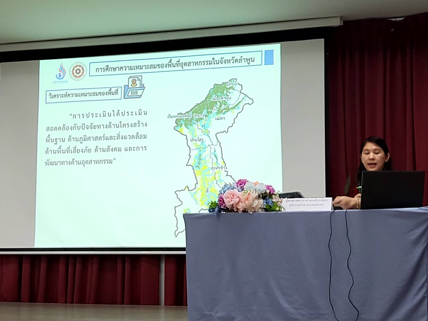 - การนำเสนอผลการวิเคราะห์ความเหมาะสมและพื้นที่ที่มีศักยภาพในการองรับการพัฒนาอุตสาหกรรม โดย ผู้ช่วยศาสตราจารย์ ดอกเตอร์ ฆริกา คันธา ผู้เชี่ยวชาญด้านสารสนเทศภูมิศาสตร์