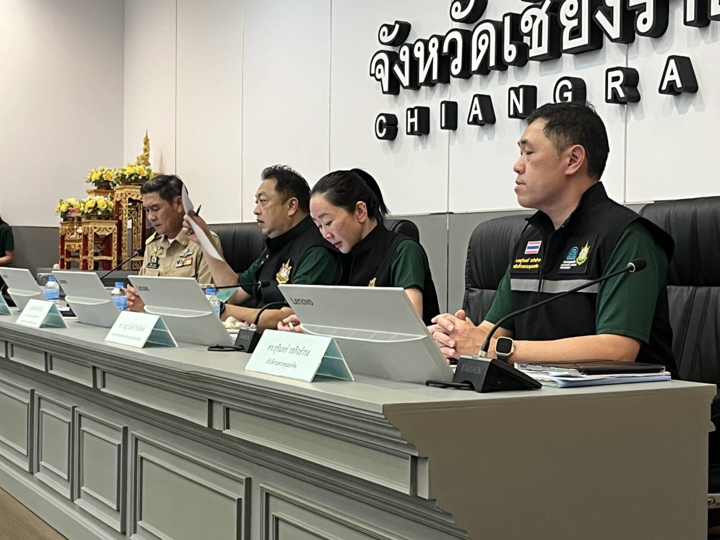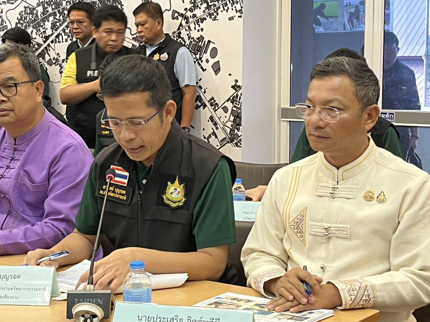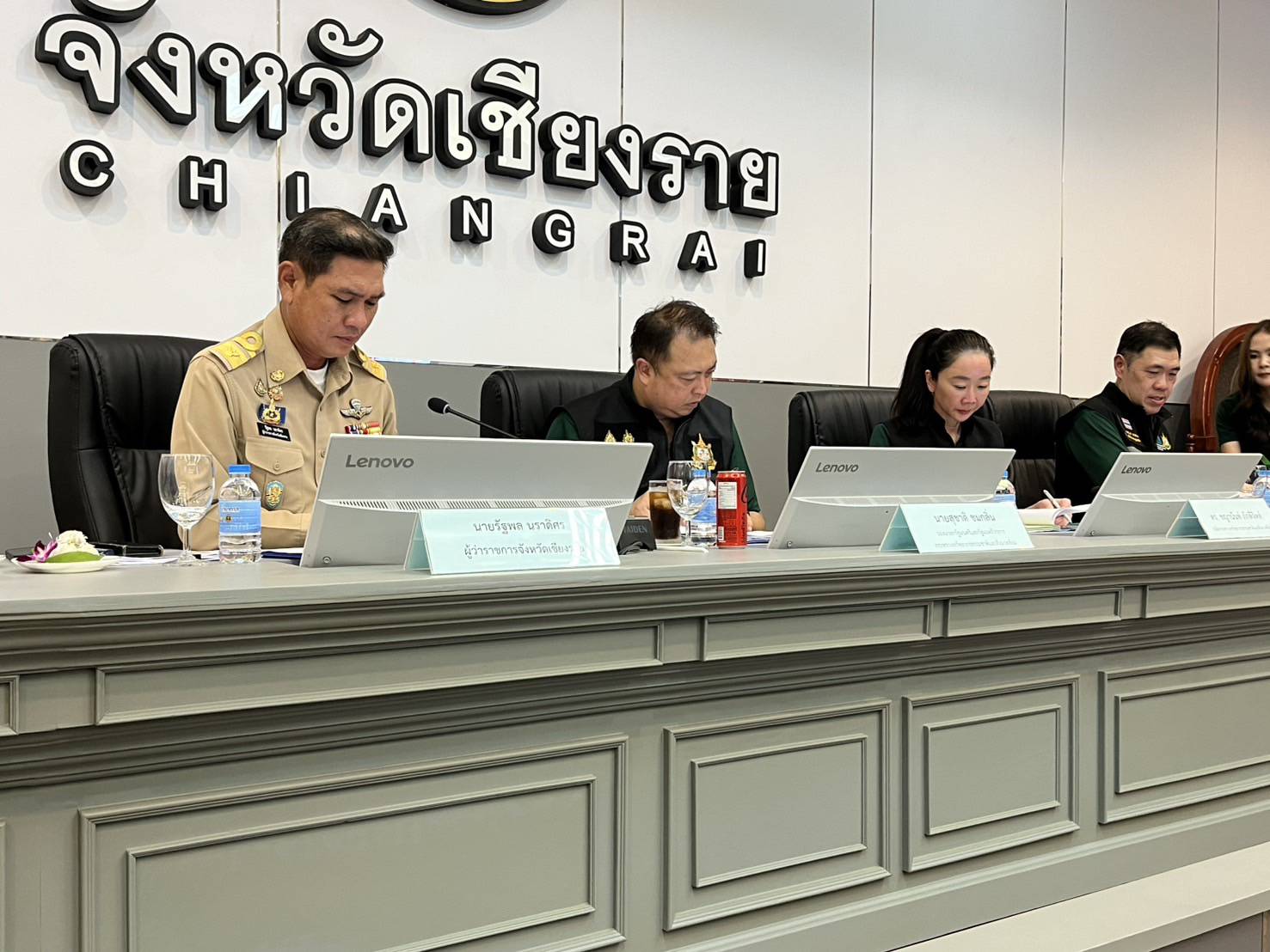 นายรัฐพล นราดิศร ผู้ว่าราชการจังหวัดเชียงราย กล่าวว่า จังหวัดเชียงราย แบ่งลุ่มน้ำหลักเป็น 2 ลุ่มนํ้าใหญ่ ๆ มีลุ่มน้ำกกกก และลุ่มน้ำโขง (เหนือ) ซึ่งแต่ละลุ่มน้ำมีลุ่มน้ำย่อยสำคัญหลายสายซึ่งจะไหลลงแม่น้ำโขง สำหรับแม่น้ำกกที่เป็นปัจจัยต่อการเกษตรและการอุปโภคบริโภคของราษฎร มีต้นกำเนิดมาจากภูเขาทางเหนือในรัฐเชียงตุง สหภาพเมียนมาร์ ไหลเข้าสู่เขตประเทศไทยที่ช่องน้ำแม่กก อ.แม่อาย จ.เชียงใหม่ แล้วไหลไปทางทิศตะวันออกผ่าน อ.แม่อาย เข้าสู่เขต อ.เมืองเชียงราย จ.เชียงราย ผ่านตัวเมืองเชียงราย อ.เวียงชัย อ.เวียงเชียงรุ้ง อ.ดอยหลวง อ.แม่จัน จากนั้นไหลไปทางทิศตะวันออกเฉียงเหนือเข้าสู่ อ.เชียงแสน แล้วไหลไปลงสู่แม่น้ำโขงที่บ้านสบกก ต.บ้านแซว อ.เชียงแสน จ.เชียงราย ความยาวของแม่น้ำกกรวมทั้งหมด 285 กิโลเมตร ช่วงแรกประมาณ 128 กิโลเมตร อยู่ในเขตสหภาพเมียนมาร์ ส่วนที่อยู่ในประเทศไทยยาวประมาณ 157 กิโลเมตร การพบปัญหาการปนเปื้อนโลหะหนักในแม่น้ำกกตั้งแต่เดือนมีนาคม 2568 ที่ผ่านมา ทำให้เกิดความกังกลต่อประชาชนตลอดถึงการท่องเที่ยว เศรษฐกิจของจังหวัดเชียงรายเป็นอย่างยิ่ง การเดินทางมาตรวจติดตามการแก้ไขปัญหาแม่น้ำกกในพื้นที่ จ.เชียงราย ของรองนายกรัฐมนตรีและ รมว.ทส. และคณะ ในครั้งนี้ จะทำให้จังหวุดเชียงรายได้ทราบถึงนโยบายเร่งด่วนของรัฐบาลในการแก้ไขปัญหาแม่น้ำกก และช่วยเและช่วยเหลือพี่น้องประชาชนในพื้นที่ จ.เชียงราย ให้คลายความกังวลลงไปได้