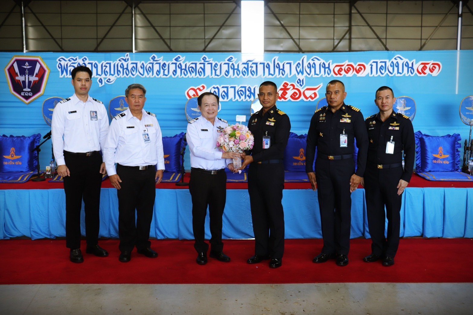 วันพฤหัสบดีที่ 9 ตุลาคม 2568 ณ ฝูงบิน 411 กองบิน 41 จังหวัดเชียงใหม่ นาวาอากาศเอก ธีระยุทธ เกื้อสกุล ผู้บังคับการกองบิน 41 เป็นประธานในพิธีทำบุญเนื่องในวันคล้ายวันสถาปนาฝูงบิน 411 กองบิน 41 โดยมี รองผู้บังคับการกองบิน 41, เสนาธิการกองบิน 41, หัวหน้าหน่วยขึ้นตรงกองบิน 41 ข้าราชการ ผู้แทนจากท่าอากาศยานเชียงใหม่ และวิทยุการบินเชียงใหม่ เข้าร่วมพิธีโดยพร้อมเพรียงกัน
