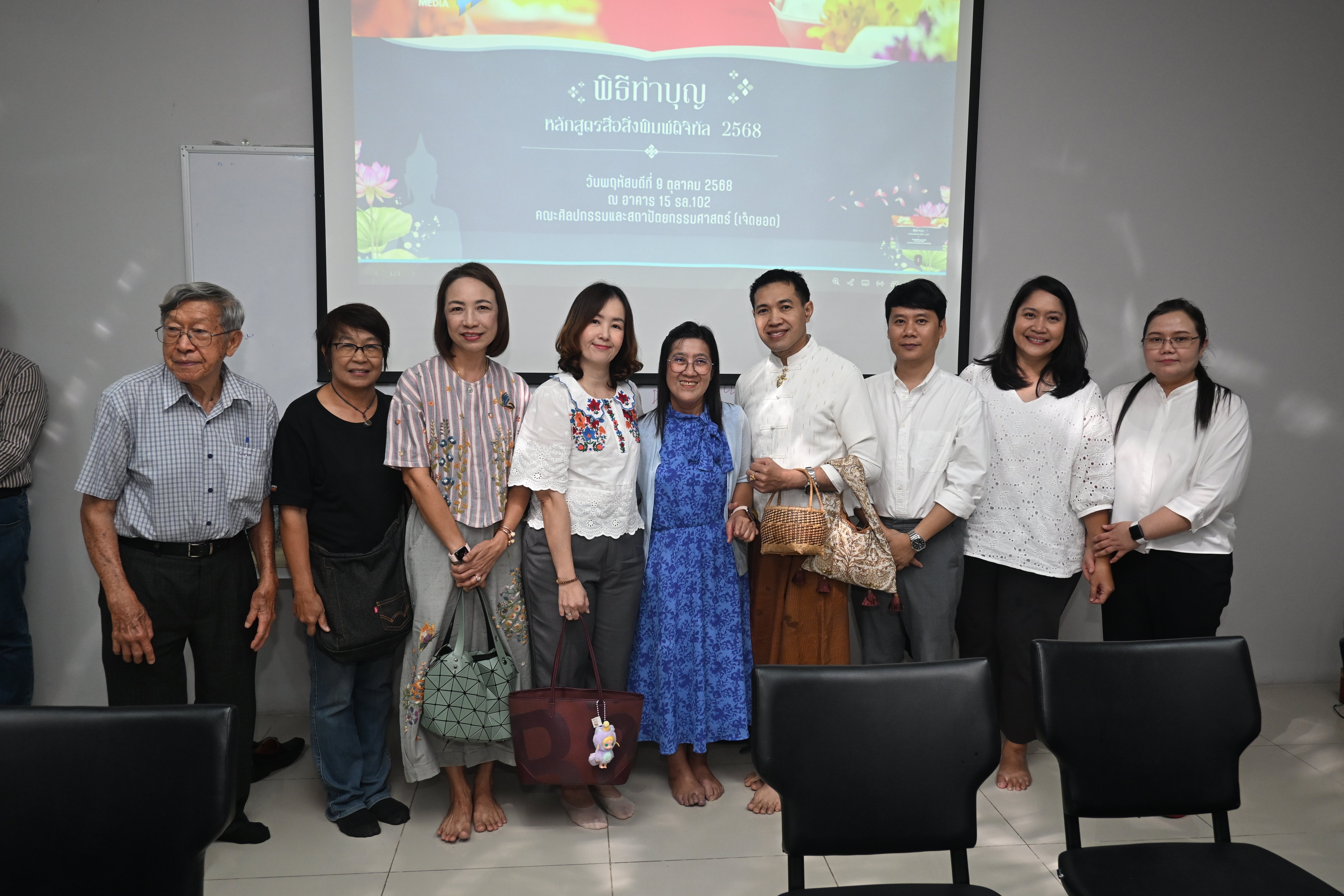 วันพฤหัสบดีที่ 9 ตุลาคม พ.ศ. 2568 เวลา 09.00-11.00 น. พิธีทำบุญหลักสูตรสื่อสิ่งพิมพ์ดิจิทัล ประจำปี 2568 และอุทิศส่วนกุศลแด่ อาจารย์ผู้ล่วงลับ อาจารย์ ชูศักดิ์ พึ่งเกตุ และอาจารย์ พัชราภา ศักดิ์โสภิณ หลักสูตรสื่อสิ่งพิมพ์ดิจิทัล คณะศิลปกรรมศาสตร์ และสถาปัตยกรรมศาสตร์ มหาวิทยาลัยเทคโนโลยีราชมงคลล้านนา(เจ็ดยอด)