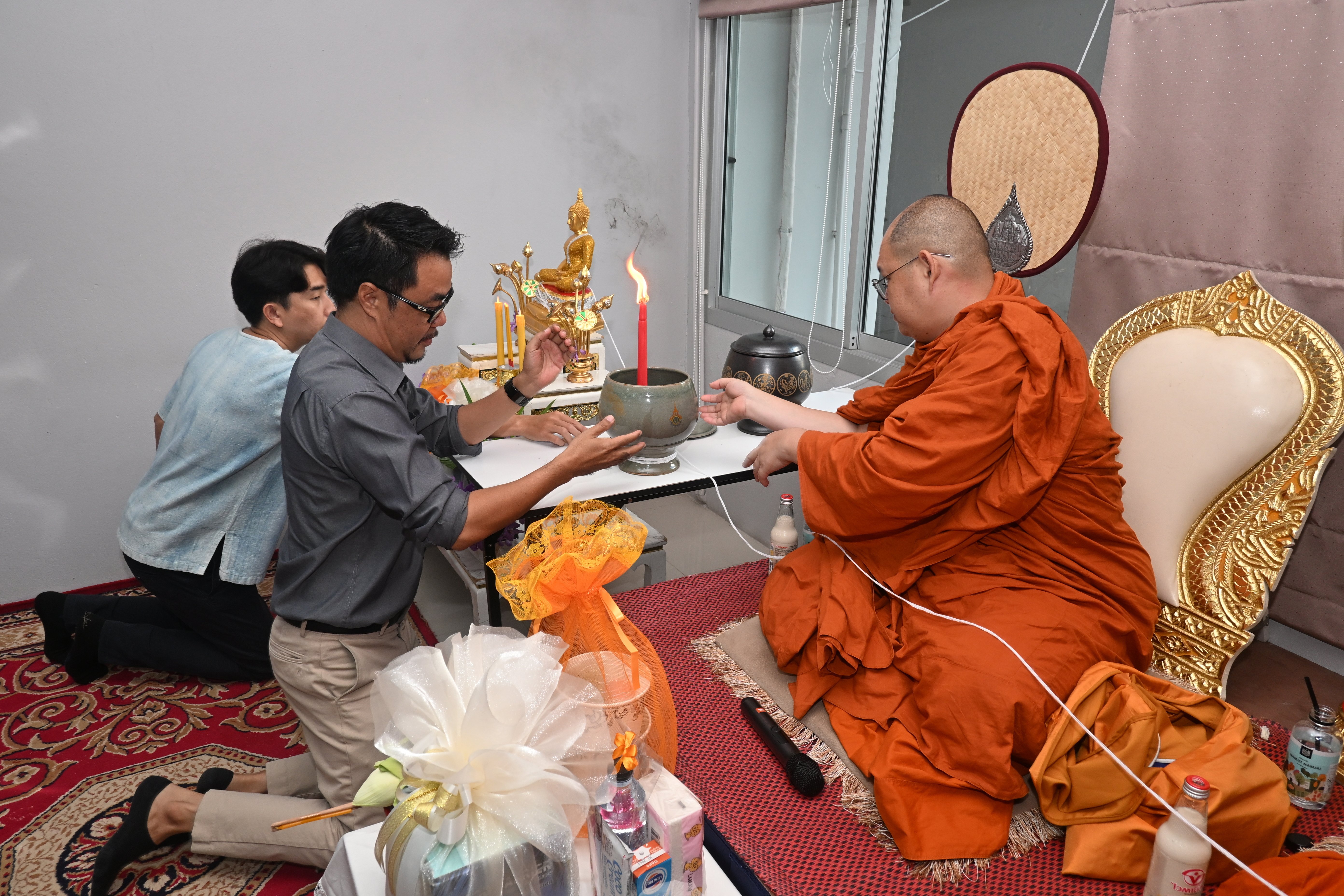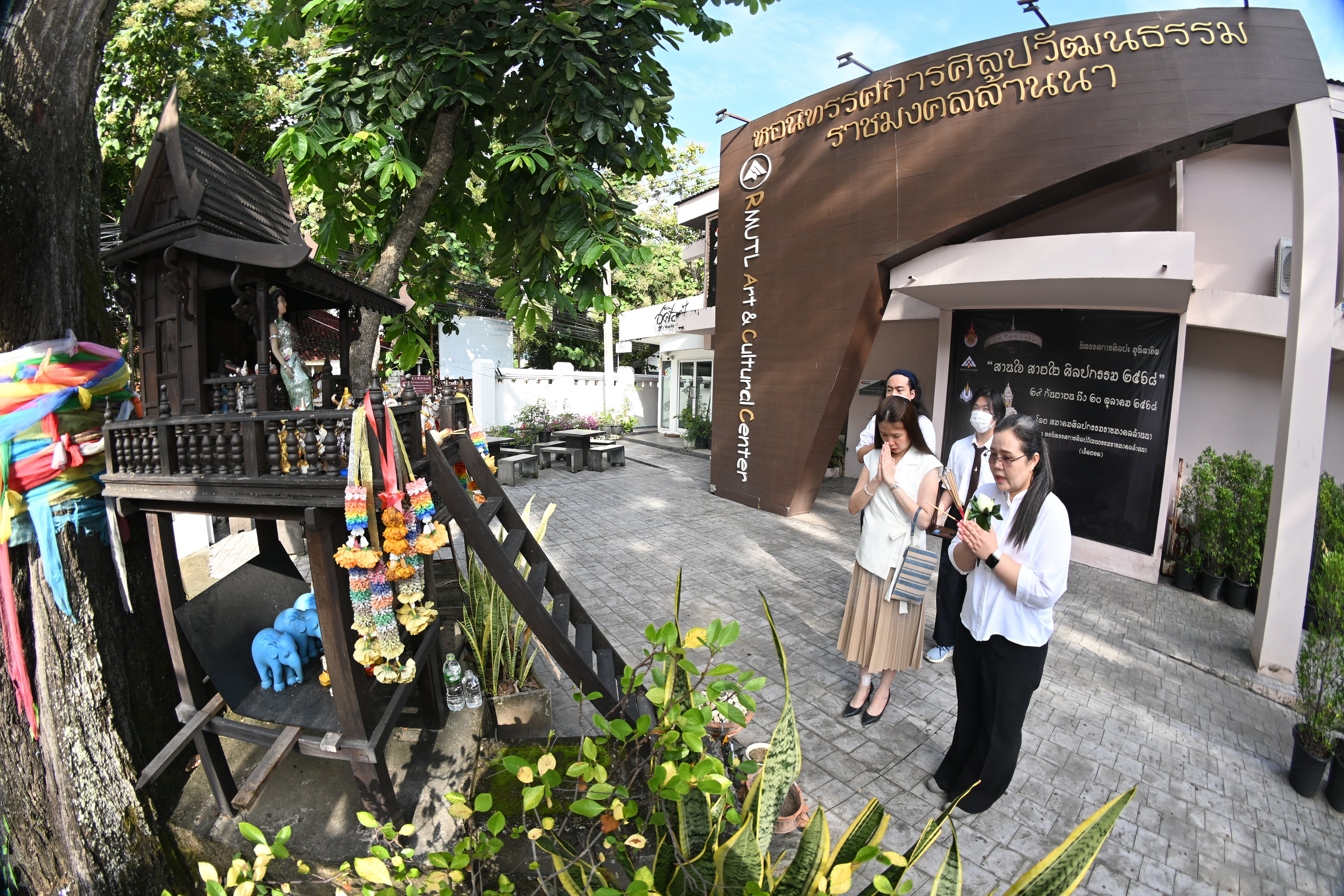 เริ่มต้น พิธีบอกกล่าวสิ่งศักดิ์ประจำมหาวิทยาลัย “พระวิษณุกรรม” และ “พระภูมิเจ้าที่” โดย อาจารย์ปลูกเกษม ชูตระกูล หัวหน้าหลักสูตรสิ่งพิมพ์ดิจิทัล จุดธูปเทียน และถวายเครื่องสักการะ พระสงฆ์ จำนวน 5 รูป มี พระครูถาวรพัฒนานุยุต ผู้ช่วยเจ้าอาวาสวัดเจ็ดยอด พระอารามหลวง เป็นประธานฝ่ายสงฆ์ โดยมี ผู้ช่วยศาสตราจารย์ ไพโรจน์ วรพจน์พรชัย รองคณบดีฝ่ายวิจัยและบริการวิชาการ เป็นประธานจุดธูปเทียนบูชาพระรัตนตรัย อาจารย์ภฤศพงศ์ เพชรบุล อาจารย์หลักสูตรสื่อสิ่งพิมพ์ดิจิทัล จุดเทียนน้ำมนต์ยกบาตรประเคน อาจารย์ ปราโมทย์ เทียนนิมิต และ อาจารย์ไพโรจน์ วรพจน์พรชัย ร่วมถวายบาตรน้ำมนต์เซรามิกส์ จำนวน 2 ใบ แด่พระสงฆ์ในอานิสงส์ การถวายบาตรนั้นยังเป็นการสืบทอดพระพุทธศาสนาและ ความเป็นอยู่จะมั่งคั่ง มีชีวิตสมบูรณ์พูนสุข ส่งเสริมการช่วยเหลือผู้อื่นอีกด้วย พระสงฆ์ประพรมน้ำผู้เข้าพิธี ห้อง 101 อาคาร 15 มหาวิทยาลัยเทคโนโลยีราชมงคลล้านนา(เจ็ดยอด) อ.เมือง จ.เชียงใหม่ ร่วมรับประทานอาหารร่วมกัน ณ ห้อง 102 อาคาร 15 มหาวิทยาลัยเทคโนโลยีราชมงคลล้านนา(เจ็ดยอด) อ.เมือง จ.เชียงใหม่