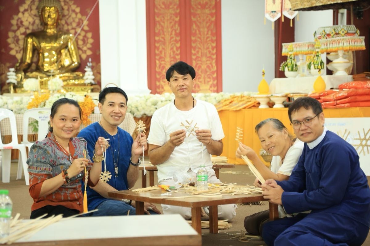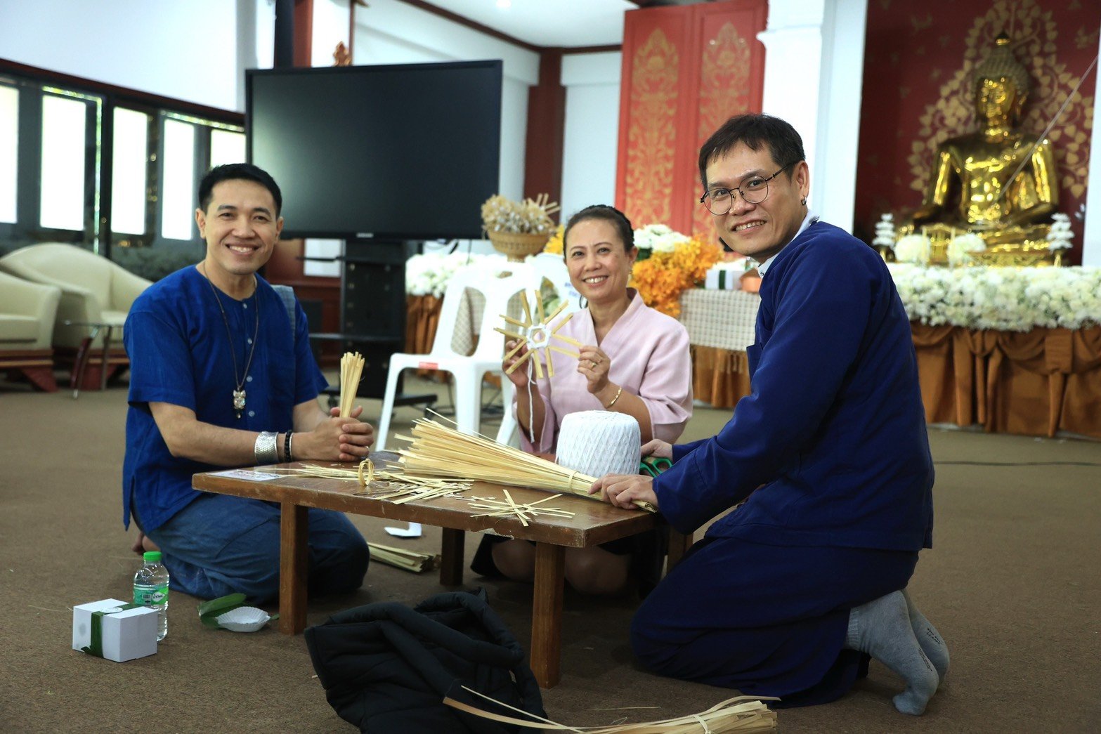การอบรมเชิงปฏิบัติการ “งานสานตอกไม้ไผ่” เช่น งานสานเฉลวเจ็ดชั้น การทำดอกไม้จากตอกไม้ไผ่ และการทำเครื่องแขวนจากตอกไม้ไผ่