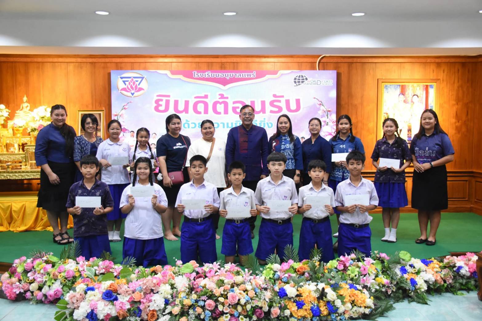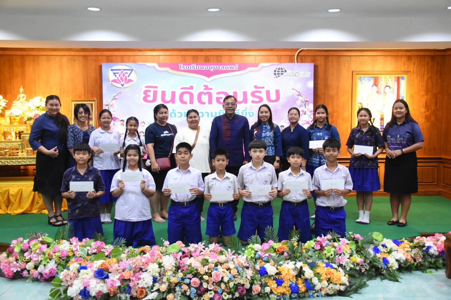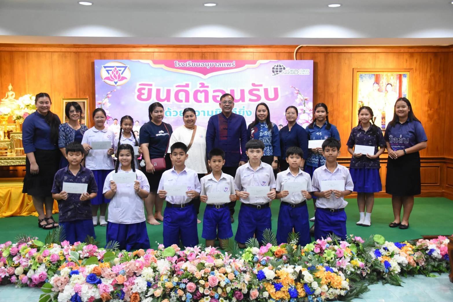 ผอ.รร.อนุบาลแพร่ กล่าวว่า ขอขอบพระคุณ นายแพทย์ไพศาล จันทร์นวล ที่ท่านได้ทำบุญบริจาคทุนการศึกษาให้กับนักเรียนโรงเรียนอนุบาลแพร่ มอบทุนการศึกษาให้นักเรียน ประกอบด้วย ทุนละ 5,000 บาท