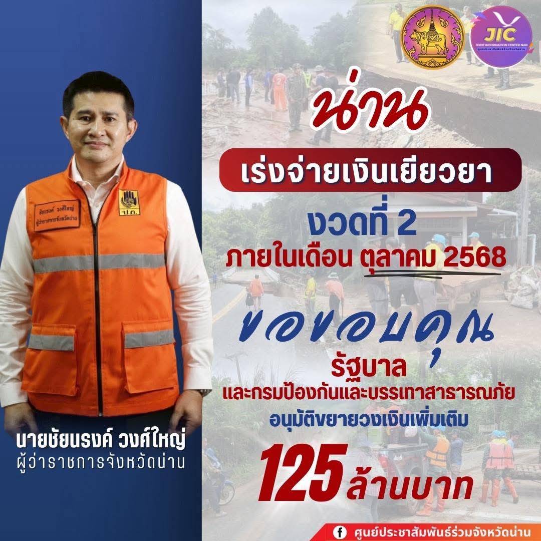 จังหวัดน่าน ขอขอบพระคุณ รัฐบาล และกรมป้องกันและบรรเทาสาธารณภัย