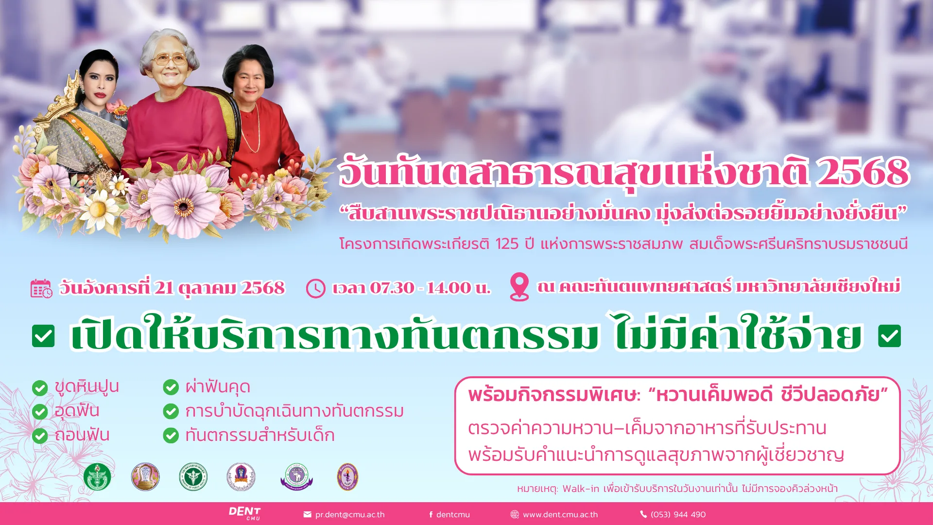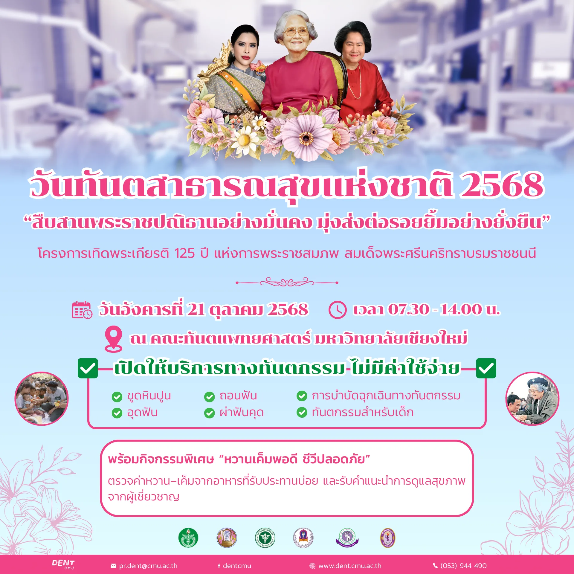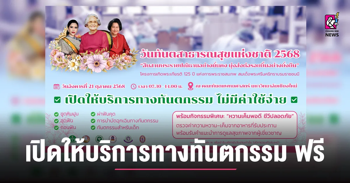 คณะทันตแพทยศาสตร์ มหาวิทยาลัยเชียงใหม่ ขอเชิญชวนผู้ที่สนใจเข้าร่วมกิจกรรมวันทันตสาธารณสุขแห่งชาติ ประจำปี 2568 ✨
