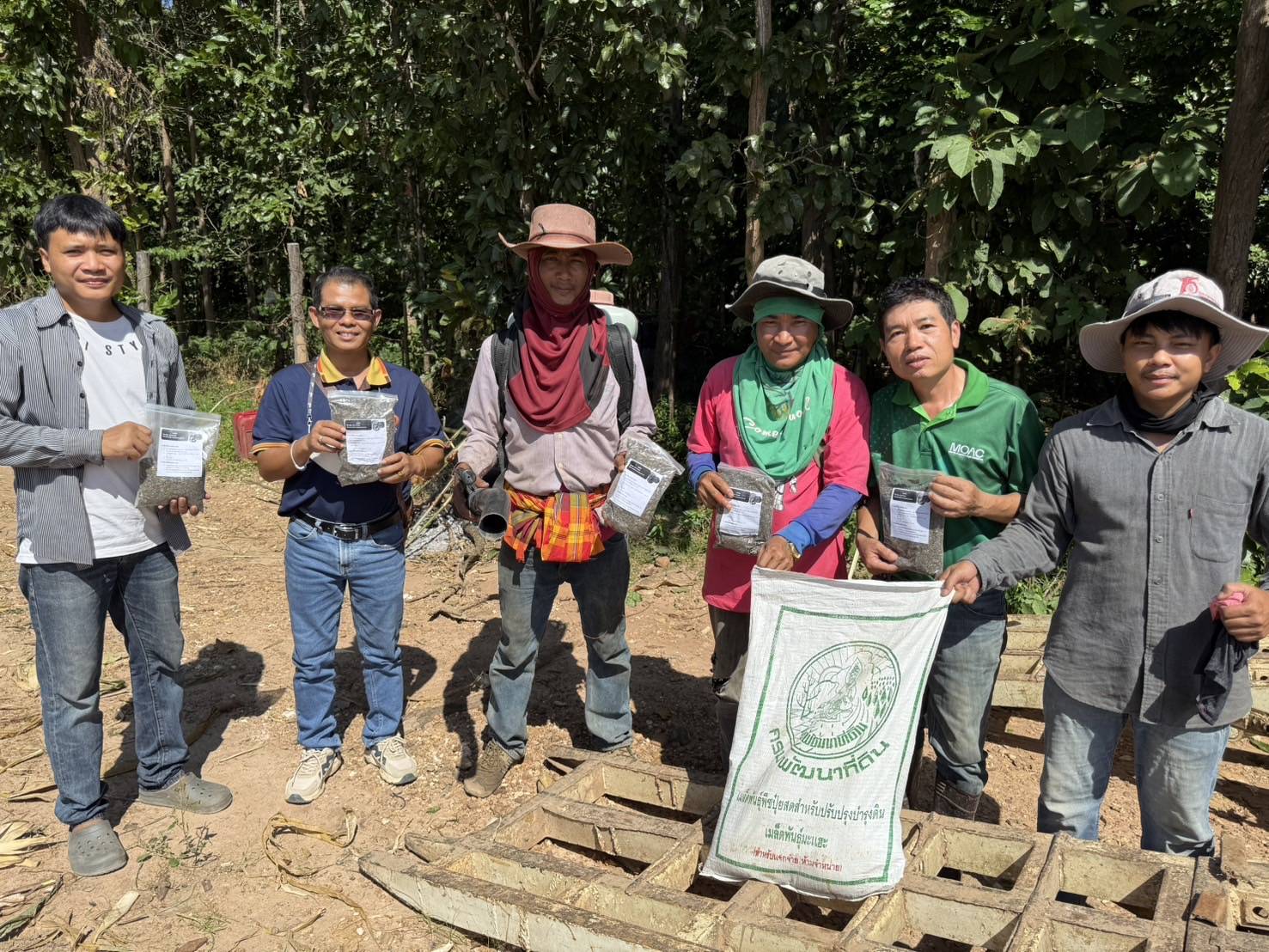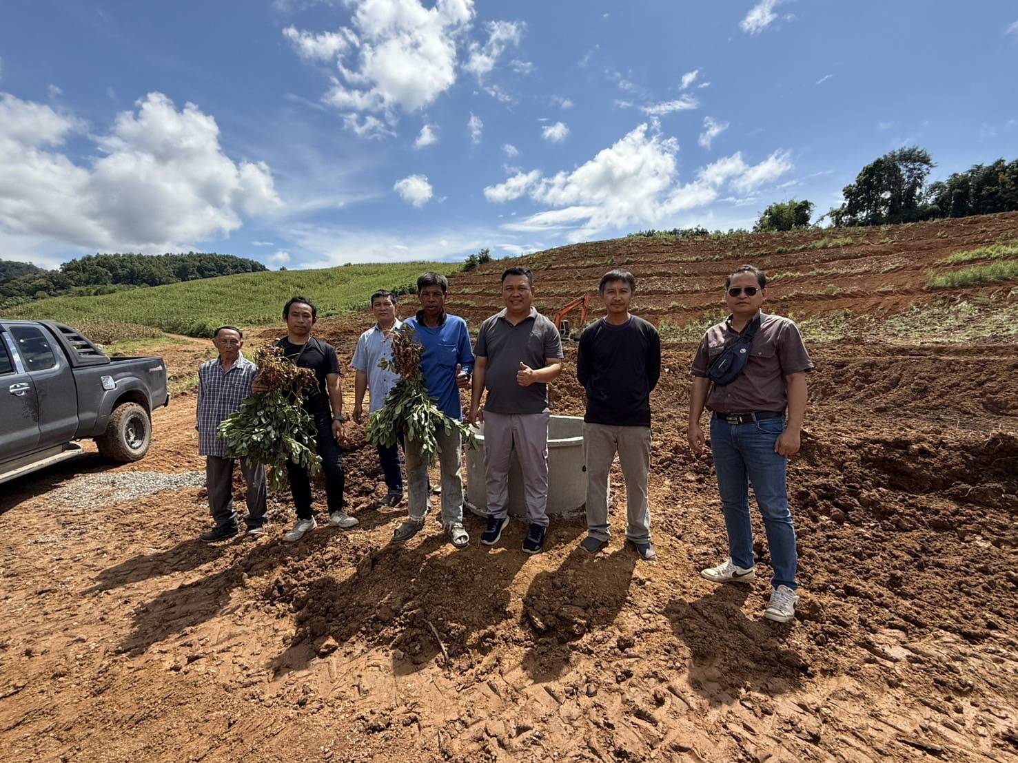 พร้อมด้วยผู้ประกอบการจาก ห้างหุ้นส่วนจำกัด แคชชิว นัท ริช กรุ๊ป (ไทยแลนด์) และตัวแทนเกษตรกรจาก 3 พื้นที่ต้นแบบ ได้แก่ บ้านต้นปล้อง ตำบลน้ำมวบ อำเภอเวียงสา – พื้นที่สาธิต 5 ไร่