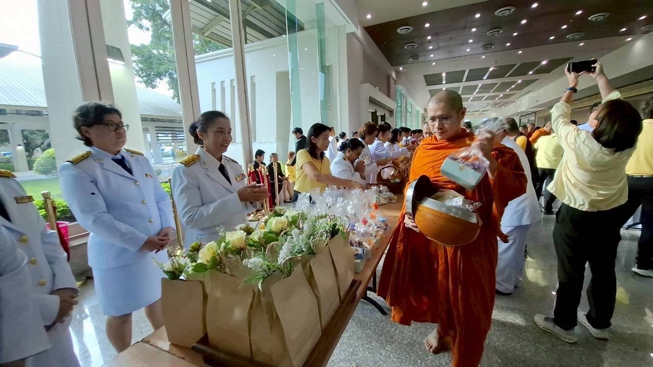 วันที่ 13 ตุลาคม 2568 เวลา 07.00 น. นายเทอดเกียรติ ยามโสภา ผู้อำนวยการสำนักงานเขตพื้นที่การศึกษามัธยมศึกษาเชียงใหม่ มอบหมายให้ นางสาวณัฏฐารัตน์ ขันชัยทิศ ผู้อำนวยการกลุ่มบริหารงานบุคคล และบุคลากรทางการศึกษา กลุ่มบริหารงานบุคคล เป็นตัวแทน ข้าราชการครูและบุคลากรทางการศึกษา สพม.เชียงใหม่ ร่วมพิธีเจริญพระพุทธมนต์และพิธีทำบุญตักบาตรเพื่อถวายเป็นพระราชกุศล และร่วมพิธีวางพวงมาลาถวายราชสักการะ เนื่องในวันนวมินทรมหาราช 13 ตุลาคม ซึ่งเป็นวันคล้ายวันสวรรคตพระบาทสมเด็จพระบรมชนกาธิเบศร มหาภูมิพลอดุลยเดชมหาราช บรมนาถบพิตร โดยมี นายทศพล เผื่อนอุดม ผู้ว่าราชการจังหวัดเชียงใหม่ เป็นประธานในพิธี ณ ห้องนิทรรศการ 1 ศูนย์ประชุมและแสดงสินค้านานาชาติเฉลิมพระเกียรติ 7 รอบ พระชนมพรรษา อำเภอเมือง จังหวัดเชียงใหม่