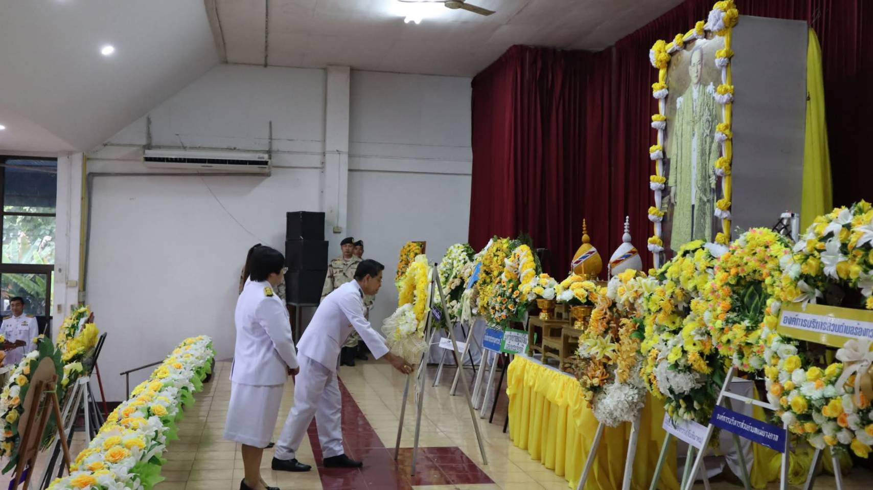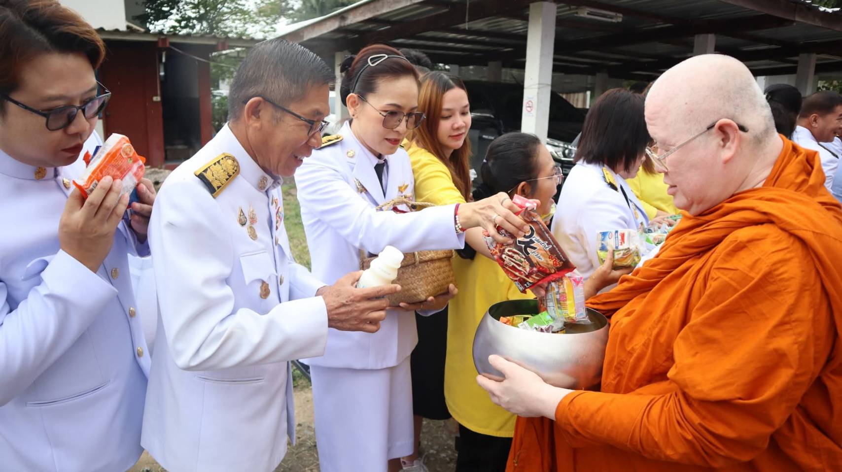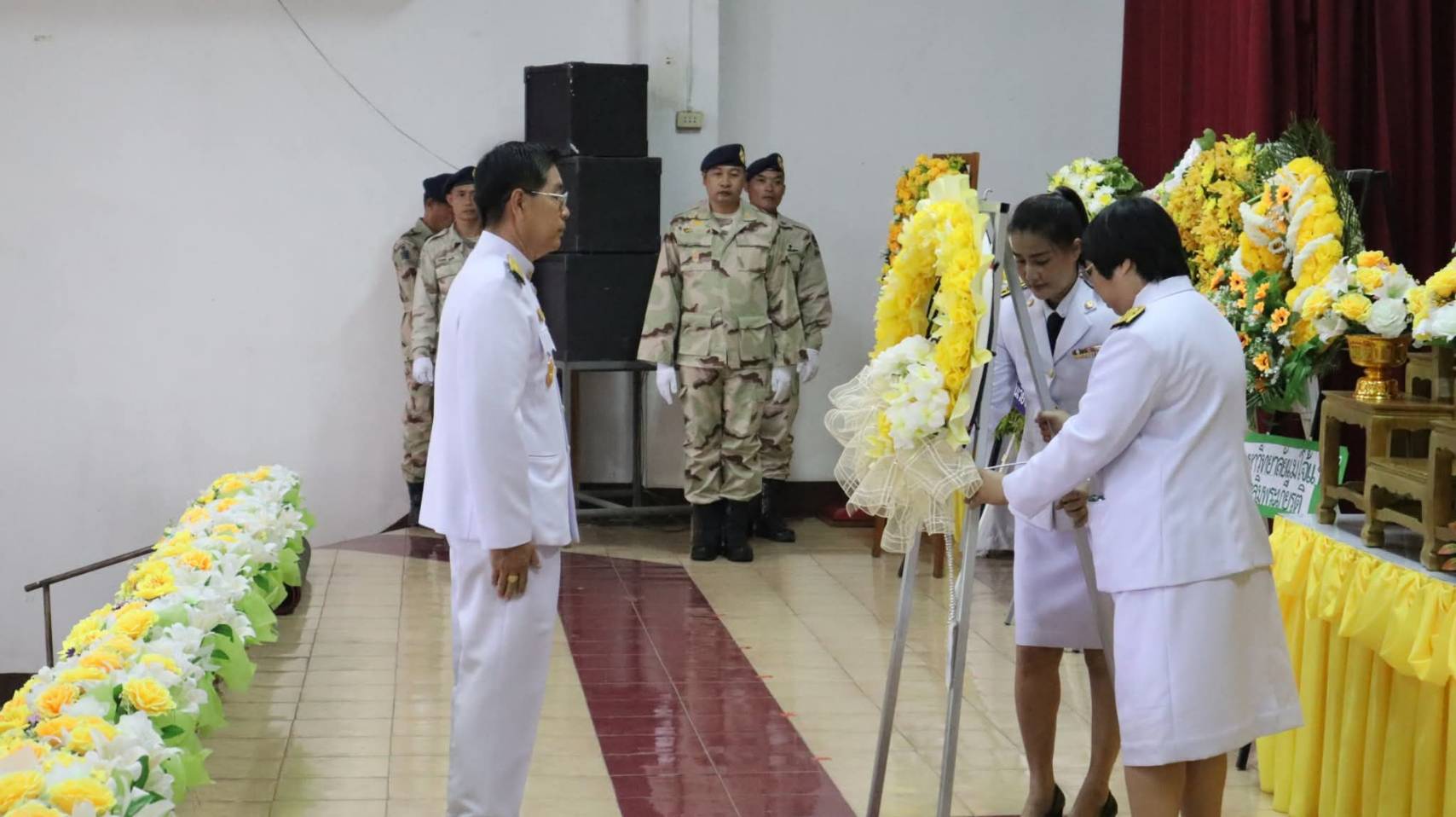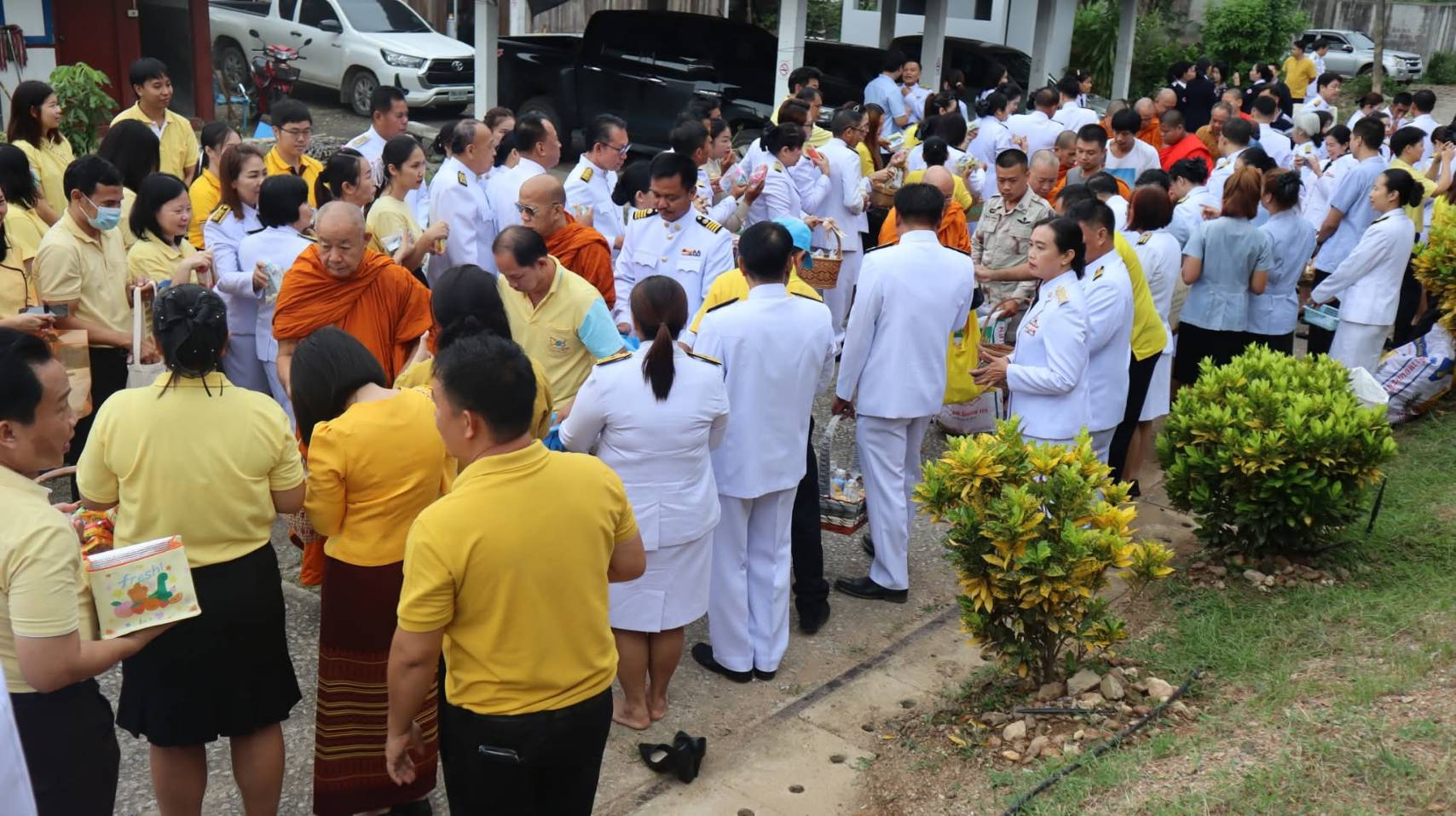 ทต.ร้องกวาง ร่วมประกอบพิธีวางพวงมาลา ทำบุญตักบาตรถวายเป็นพระราชกุศล