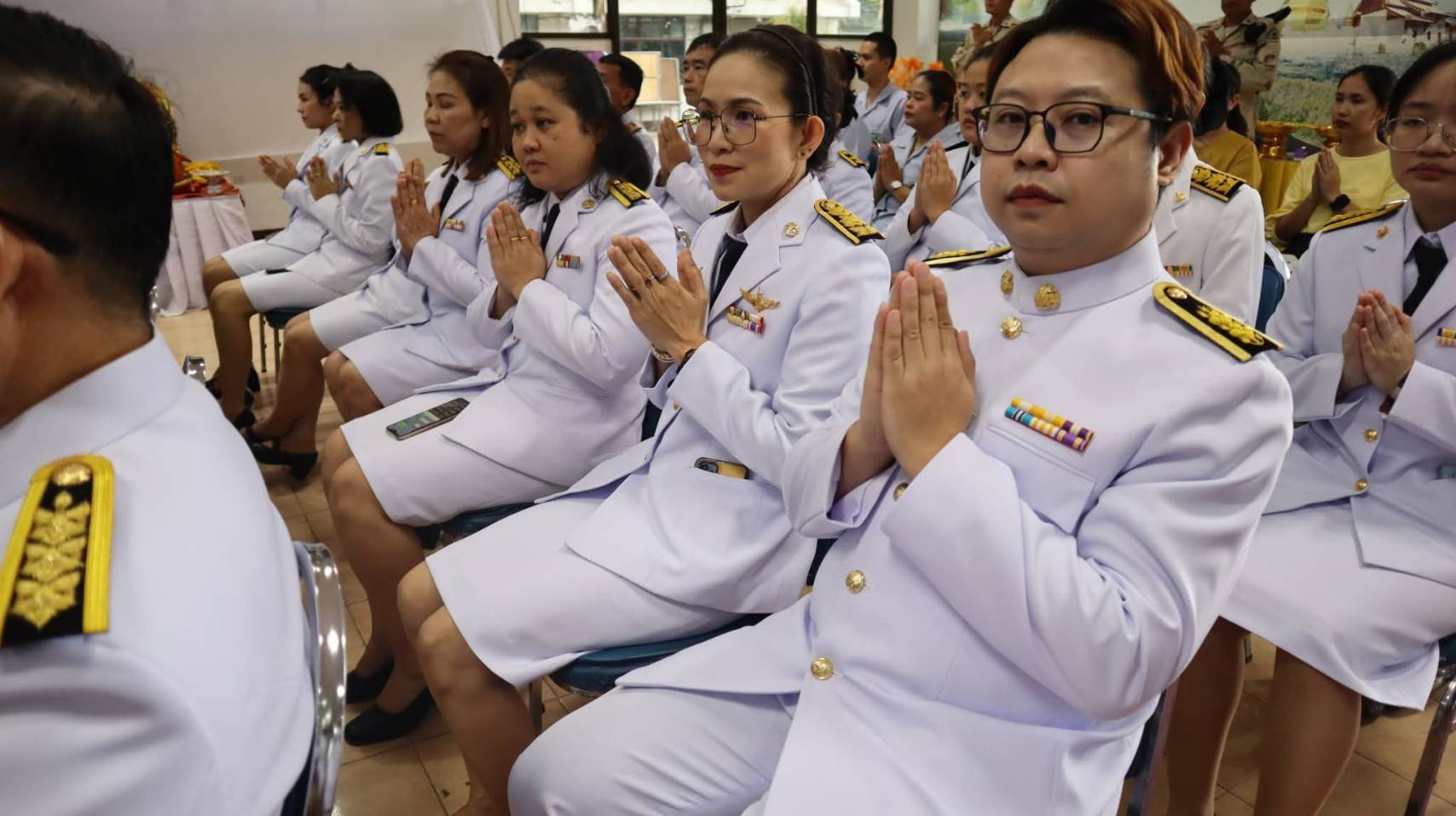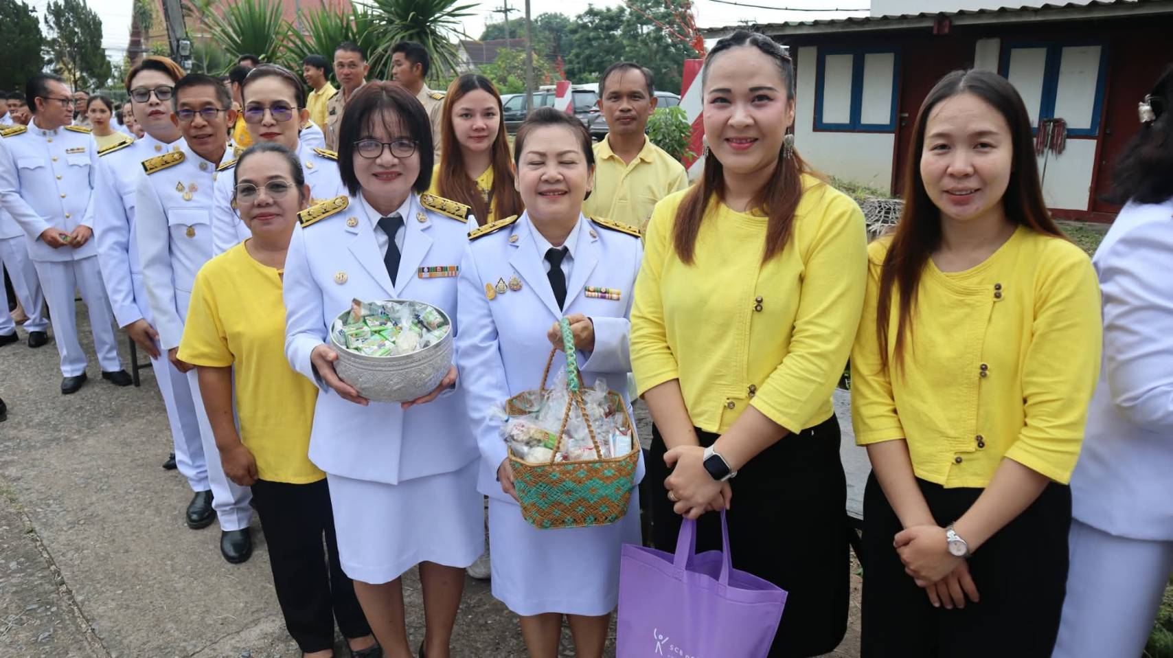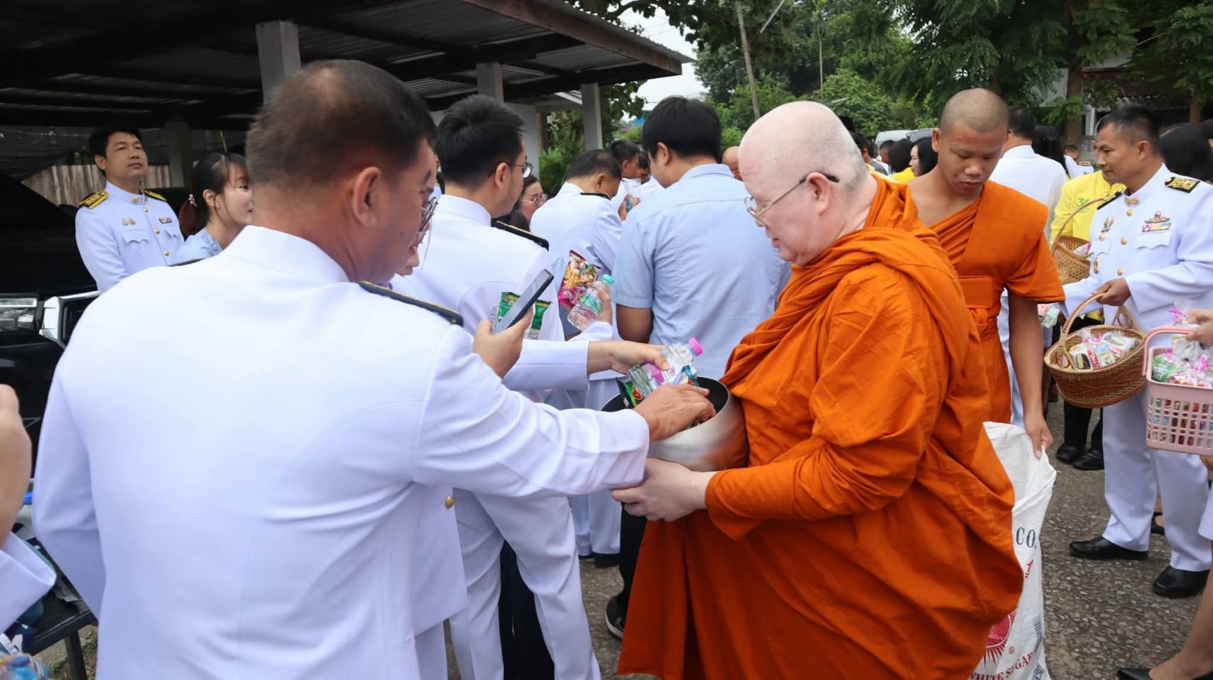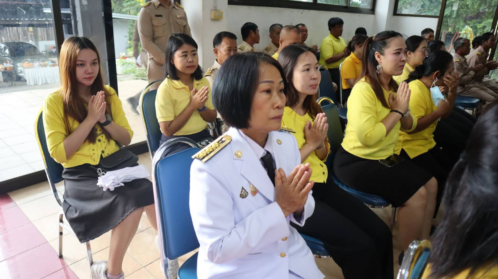 ทต.ร้องกวาง ร่วมประกอบพิธีวางพวงมาลา ทำบุญตักบาตรถวายเป็นพระราชกุศล