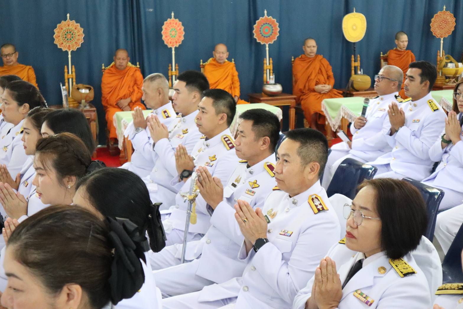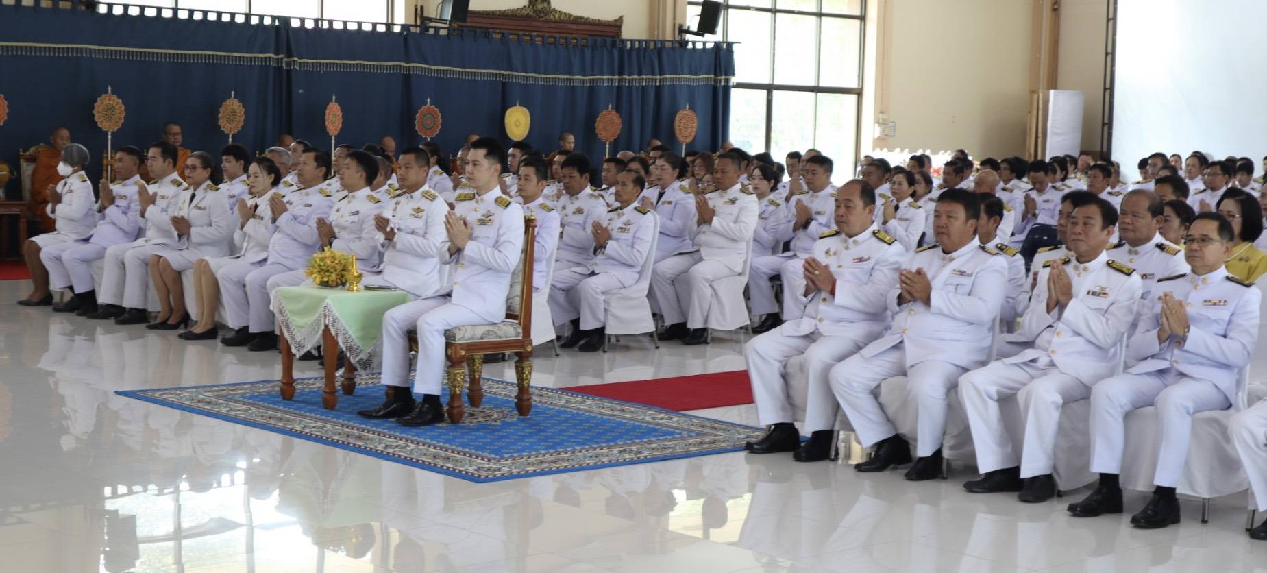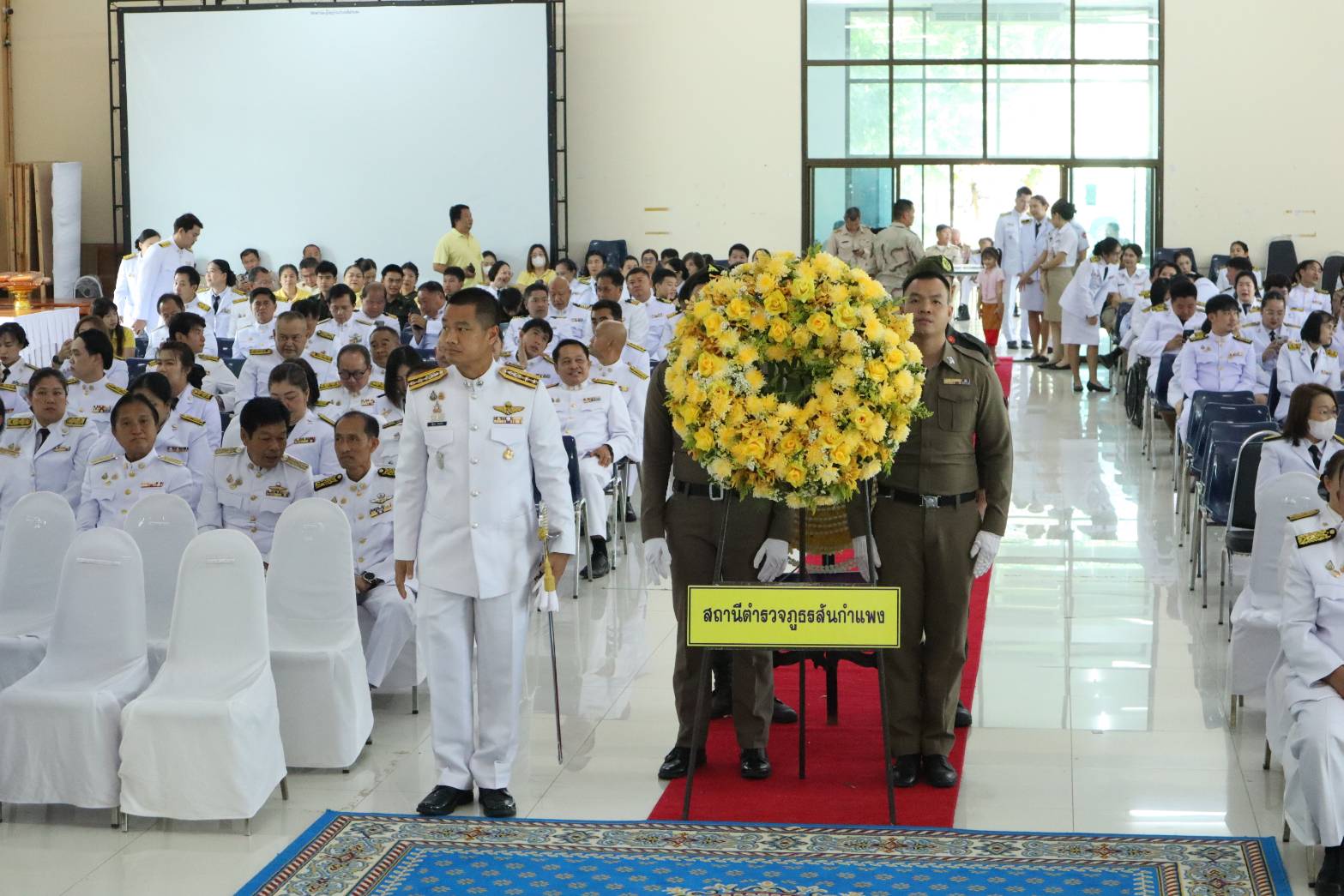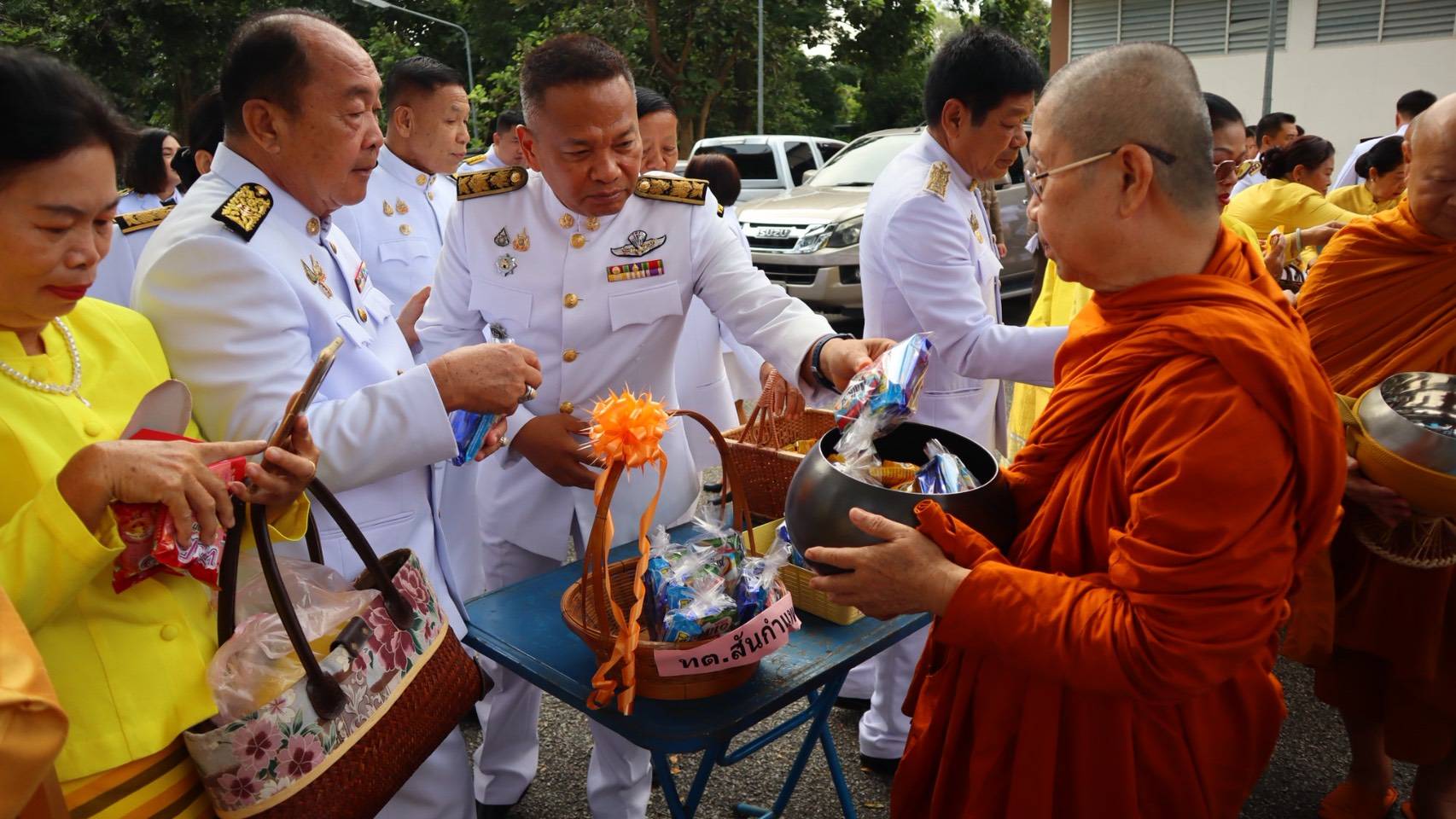 วันที่ 13 ตุลาคม 2568 07.00 น. ที่หอประชุมเฉลิมพระเกียรติฯ ที่ว่าอำเภอสันกำแพง จ.เชียงใหม่ ได้มีพิธีกิจกรรมเนื่องในวันนวมินทรมหาราช วันคล้ายวันสวรรคต พระบาทสมเด็จพระบรมชนกาธิเบศร มหาภูมิพลอดุลยเดชมหาราช บรมนาถบพิตร ร.9 โดยมี นายสมศักดิ์ อรุณโลตถิกุล รรท.นายอำเภอสันกำแพง หน.ส่วนราชการทุกหน่วยงาน และ พ.ต.อ.ณัฐพล จันมะโน ผกก.สภ.สันกำแพง นำข้าราชการตำรวจร่วมพิธี ทางนายเกรียงศักดิ์ โพธิ กำนัน ต.สันกำแพง (ปธ.ชมรม กำนัน ผญบ. อ.สันกำแพง นำกำนัน ผญบ.ร่วมพิธีกิจกรรมทั้ง 10 ตำบล 100 หมู่บ้าน ประชาชนทุกหมู่เหล่า นายชาครีย์ ขัติรัตน์ นายกเทศมนตรีตำบลสันกำแพง พร้อมคณะผู้บริหาร สมาชิกสภาเทศบาล และพนักงานเทศบาล ในพิธีกิจกรรมทำบุญตักบาตรถวายพระราชกุศลแก่พระสงฆ์ และวางพวงมาลาถวายความเคารพเบื้องหน้าพระบรมฉายาลักษณ์พระบาทสมเด็จพระบรมชนกาธิเบศร มหาภูมิพลอดุลยเดชมหาราช บรมนาถบพิตร ถวายพระราชกุศล