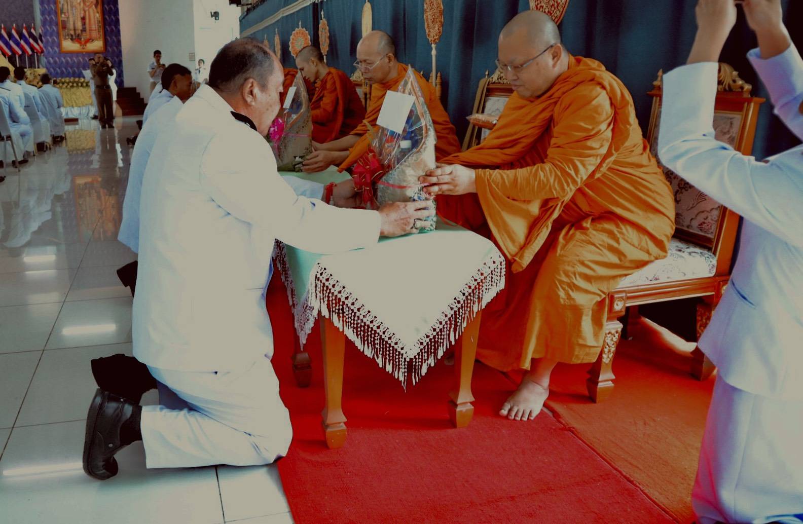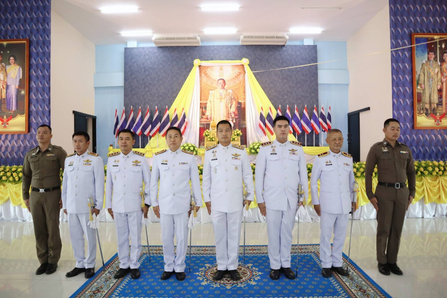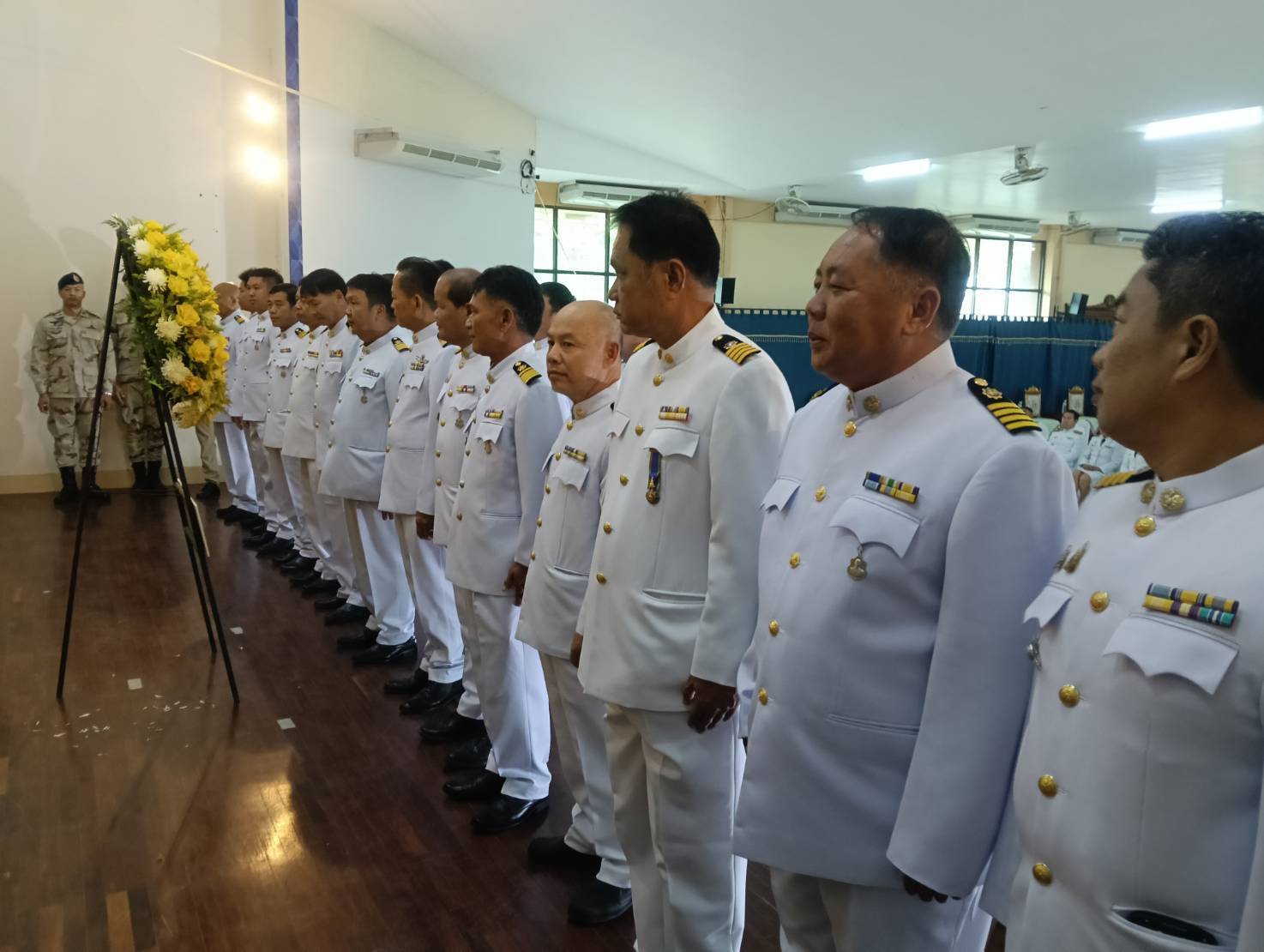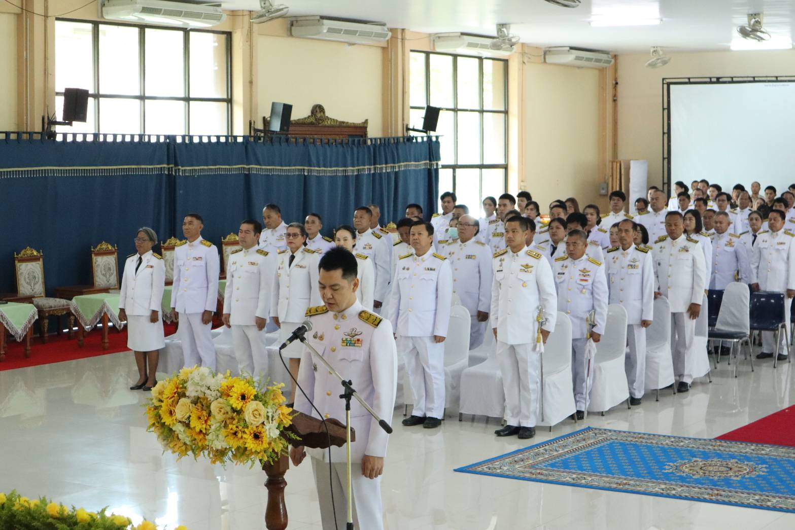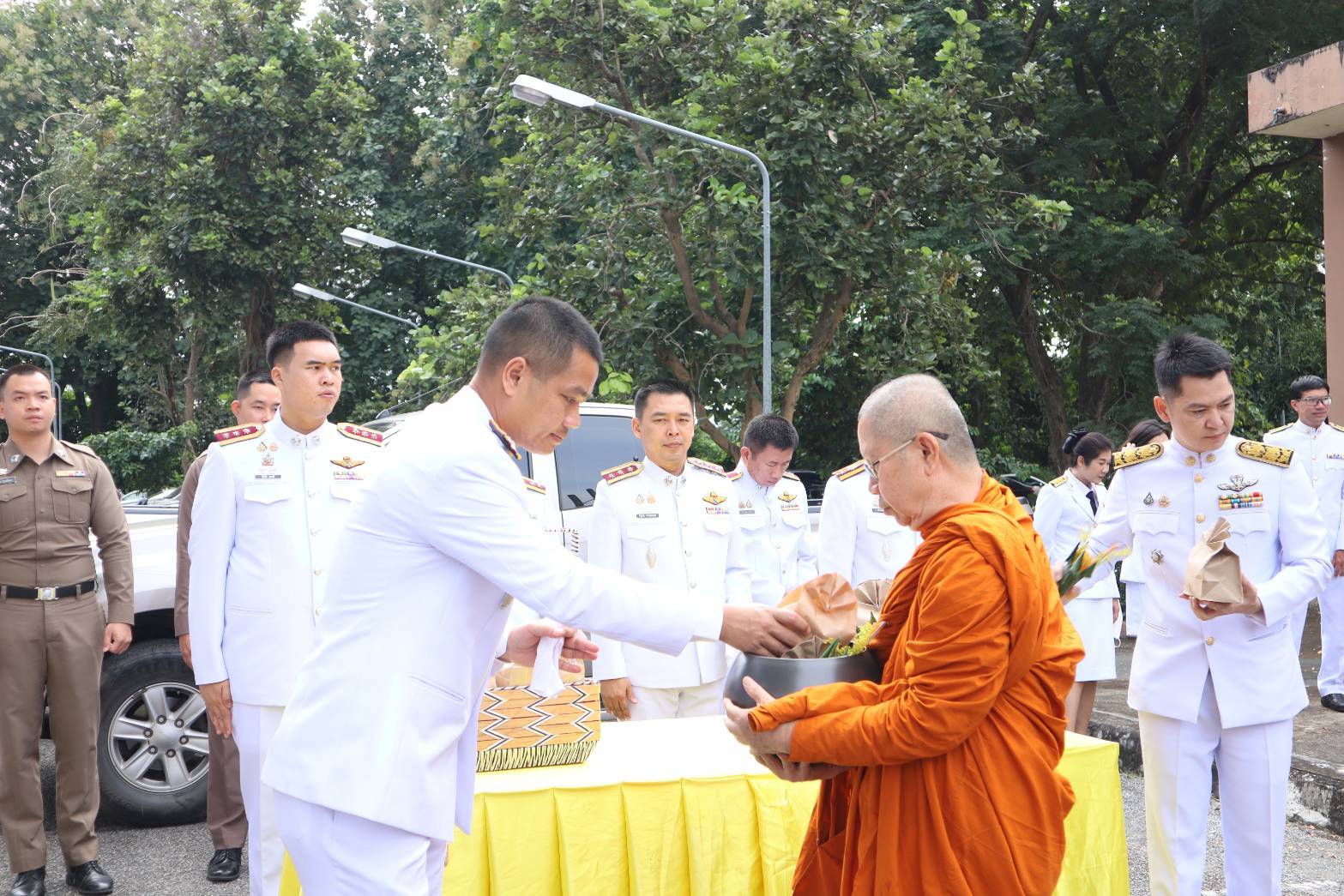 วันที่ 13 ตุลาคม 2568 07.00 น. ที่หอประชุมเฉลิมพระเกียรติฯ ที่ว่าอำเภอสันกำแพง จ.เชียงใหม่ ได้มีพิธีกิจกรรมเนื่องในวันนวมินทรมหาราช วันคล้ายวันสวรรคต พระบาทสมเด็จพระบรมชนกาธิเบศร มหาภูมิพลอดุลยเดชมหาราช บรมนาถบพิตร ร.9 โดยมี นายสมศักดิ์ อรุณโลตถิกุล รรท.นายอำเภอสันกำแพง หน.ส่วนราชการทุกหน่วยงาน และ พ.ต.อ.ณัฐพล จันมะโน ผกก.สภ.สันกำแพง นำข้าราชการตำรวจร่วมพิธี ทางนายเกรียงศักดิ์ โพธิ กำนัน ต.สันกำแพง (ปธ.ชมรม กำนัน ผญบ. อ.สันกำแพง นำกำนัน ผญบ.ร่วมพิธีกิจกรรมทั้ง 10 ตำบล 100 หมู่บ้าน ประชาชนทุกหมู่เหล่า นายชาครีย์ ขัติรัตน์ นายกเทศมนตรีตำบลสันกำแพง พร้อมคณะผู้บริหาร สมาชิกสภาเทศบาล และพนักงานเทศบาล ในพิธีกิจกรรมทำบุญตักบาตรถวายพระราชกุศลแก่พระสงฆ์ และวางพวงมาลาถวายความเคารพเบื้องหน้าพระบรมฉายาลักษณ์พระบาทสมเด็จพระบรมชนกาธิเบศร มหาภูมิพลอดุลยเดชมหาราช บรมนาถบพิตร ถวายพระราชกุศล