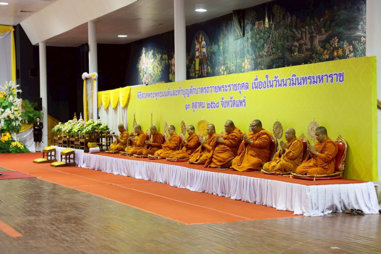 ทม.แพร่ ร่วมพิธีทำบุญตักบาตรถวายพระราชกุศลและวางพวงมาลาน้อมรำลึกถึงพระมหากรุณาธิคุณ เนื่องในวันนวมินทรมหาราช