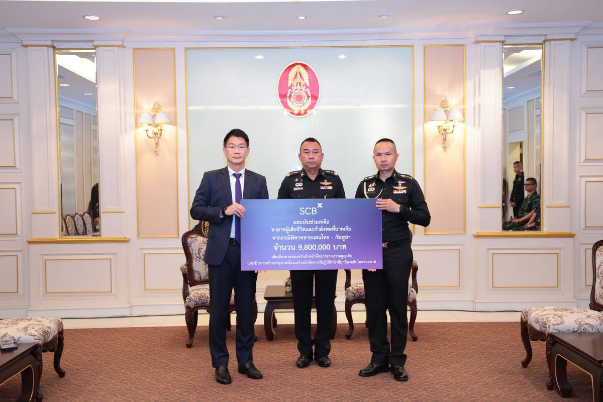 ทบ.รับมอบเงินช่วยเหลือทหารและครอบครัวที่ได้รับผลกระทบจากสถานการณ์ชายแดนไทย-กัมพูชา จาก บ.เอสซีบี เอ็กซ์ จำกัด (มหาชน) จำนวน 9,800,000 บาท