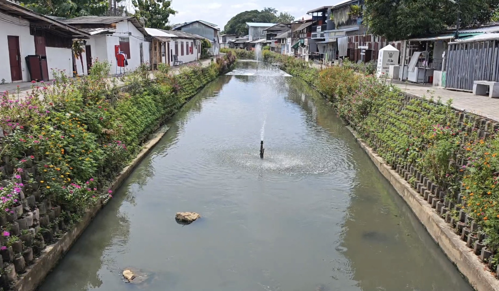 ทีมข่าวสำรวจบรรยากาศที่จุดนี้พบน้ำในคลองเป็นสีเทาและส่งกลิ่นเน่าเสียลอยมาตามลมเป็นระยะ น้ำเน่าสีคล้ำยังคงไหลมาจากทางตอนเหนือของสายคลองไม่ขาดสาย ไม้ดอกไม้ประดับริมคลองถูกปล่อยทิ้งขาดการดูแลจนดูรกตา ร้านค้าร้านอาหารปิดให้บริการไปหลายร้าน ขณะที่นักท่องเที่ยวบางตา นาน ๆ ทีจะแวะเวียนมาชม ขณะที่กลางน้ำมีการติดตั้งน้ำพุเพื่อเพิ่มออกซิเจนแก้ปัญหาน้ำเน่าเสีย