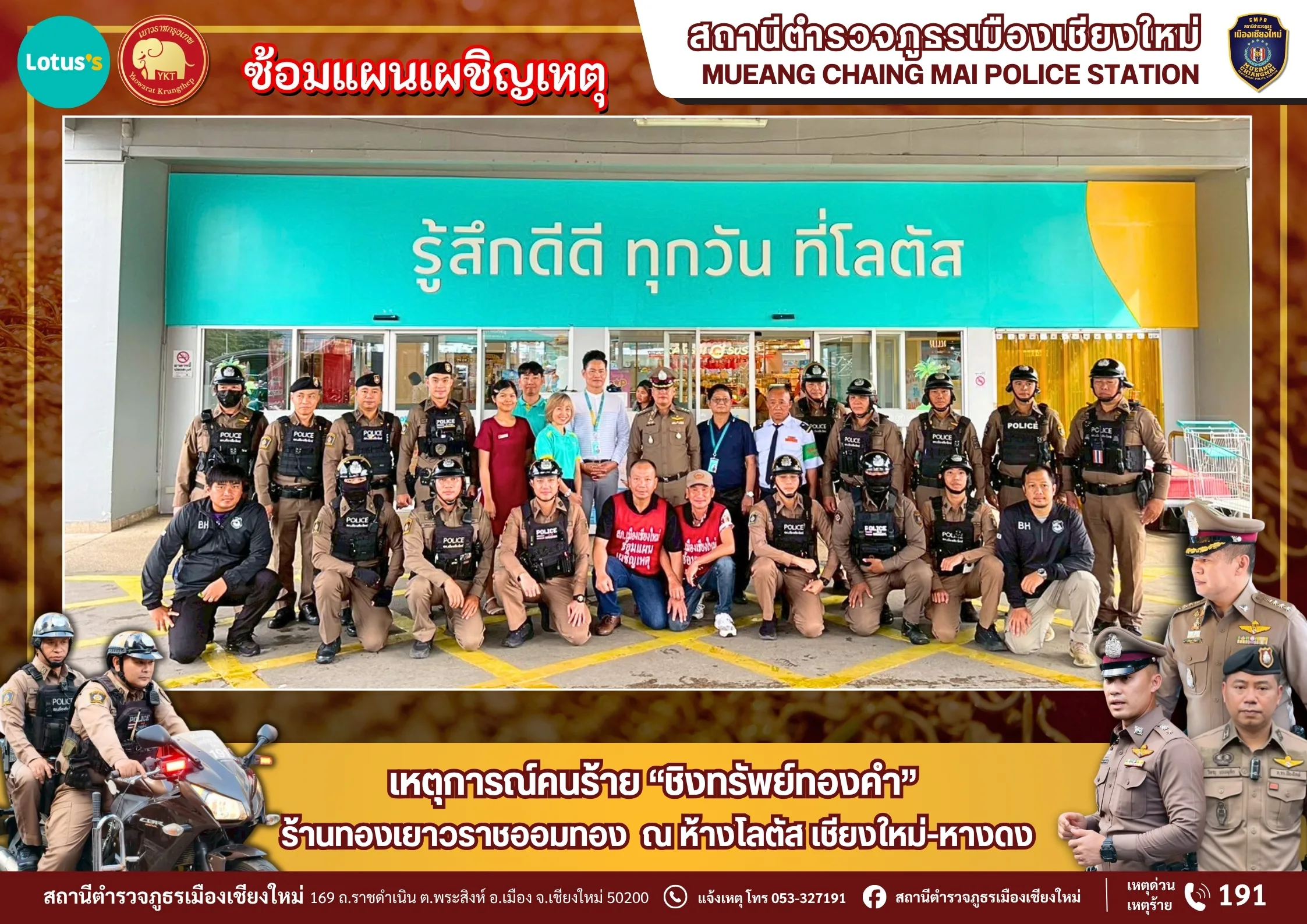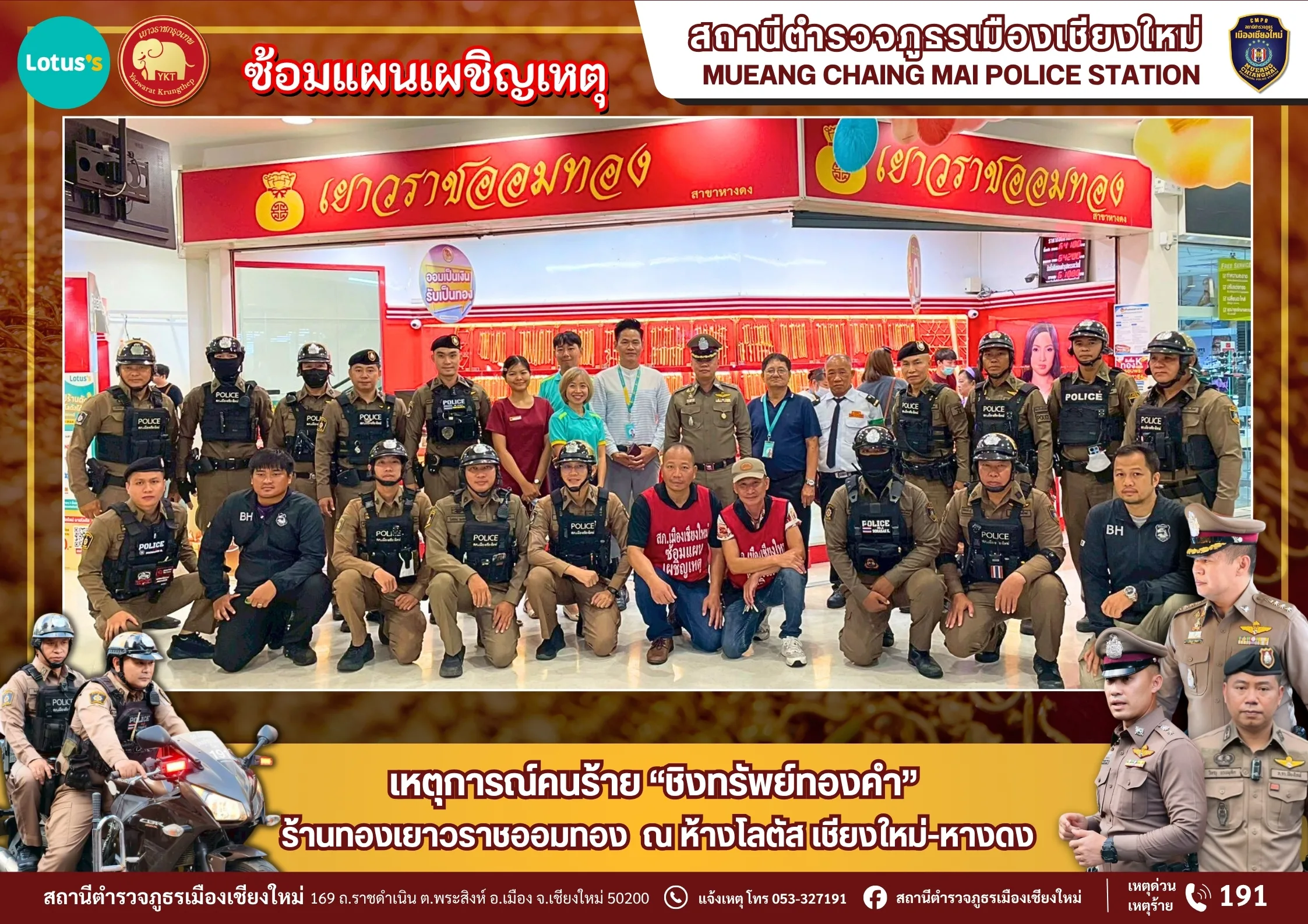 พร้อมด้วย เจ้าหน้าที่ตำรวจสภ.เมืองเชียงใหม่ ร่วมกับห้างทองเยาวราชออมทอง สาขาเทสโก้โลตัส เชียงใหม่-หางดง และห้างเทสโก้โลตัส สาขา เชียงใหม่-หางดง