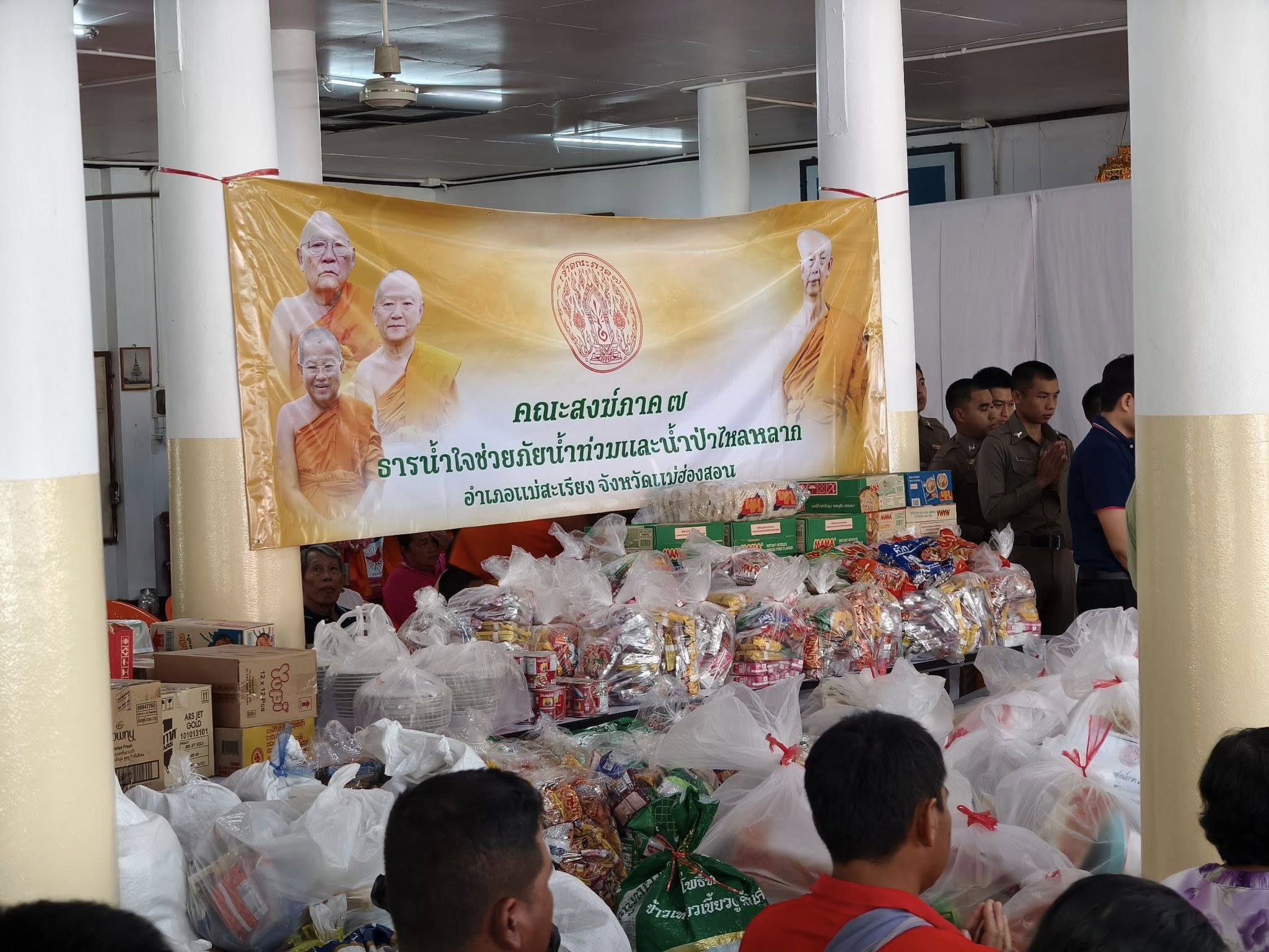 ด้วยอำเภอแม่สะเรียง จังหวัดแม่ฮ่องสอนได้เกิดอุทกภัย ทำให้ชาวบ้านได้รับความเสียหายเป็นจำนวนมาก เพื่อเป็นการบรรเทาความทุกข์ยากของพี่น้องประชาชนที่ประสบภัยน้ำป่าไหลหลาก คณะสงฆ์ภาค 7 ร่วมใจบริจาคสิ่งของอุปโภคบริโภค พร้อมเงินช่วยเหลือจำนวน 489,340 บาท