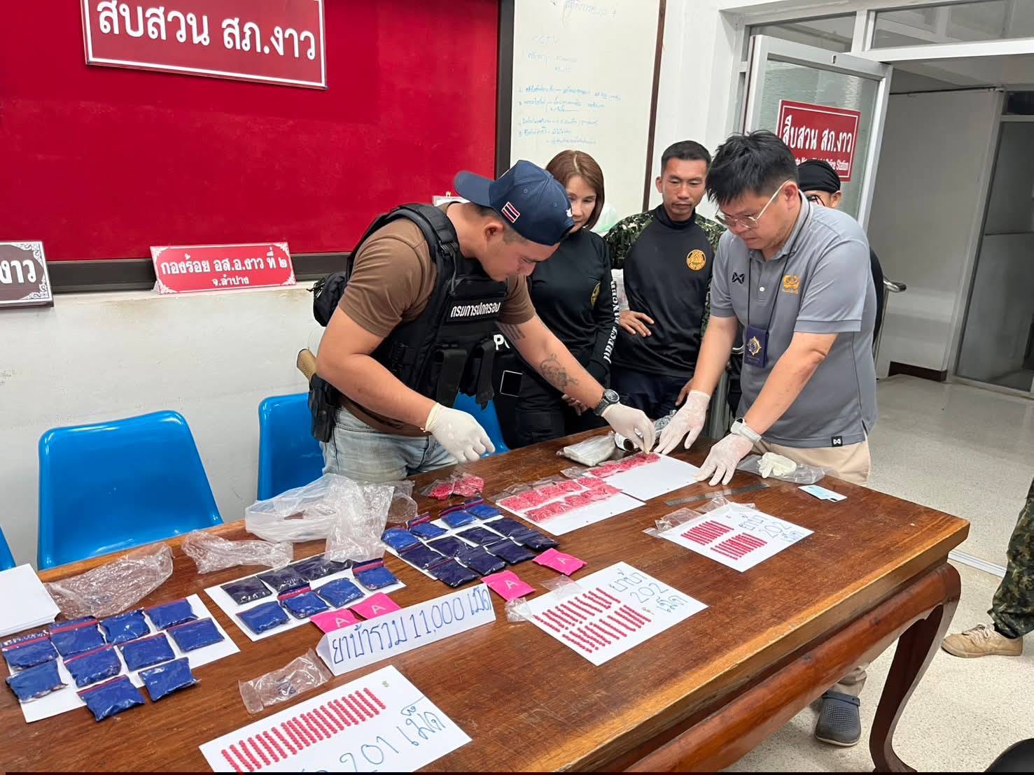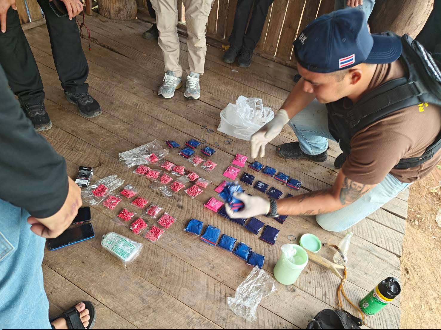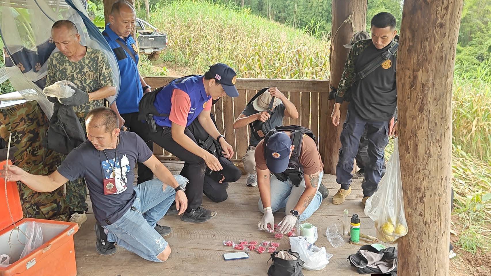 นายอำเภองาว ลำปาง พร้อมกำลังตำรวจ และป่าไม้ค้นกระท่อมกลางป่าพบยาบ้ากว่า 1 หมื่นเม็ด ส่วนเจ้าของยาหลบหนี