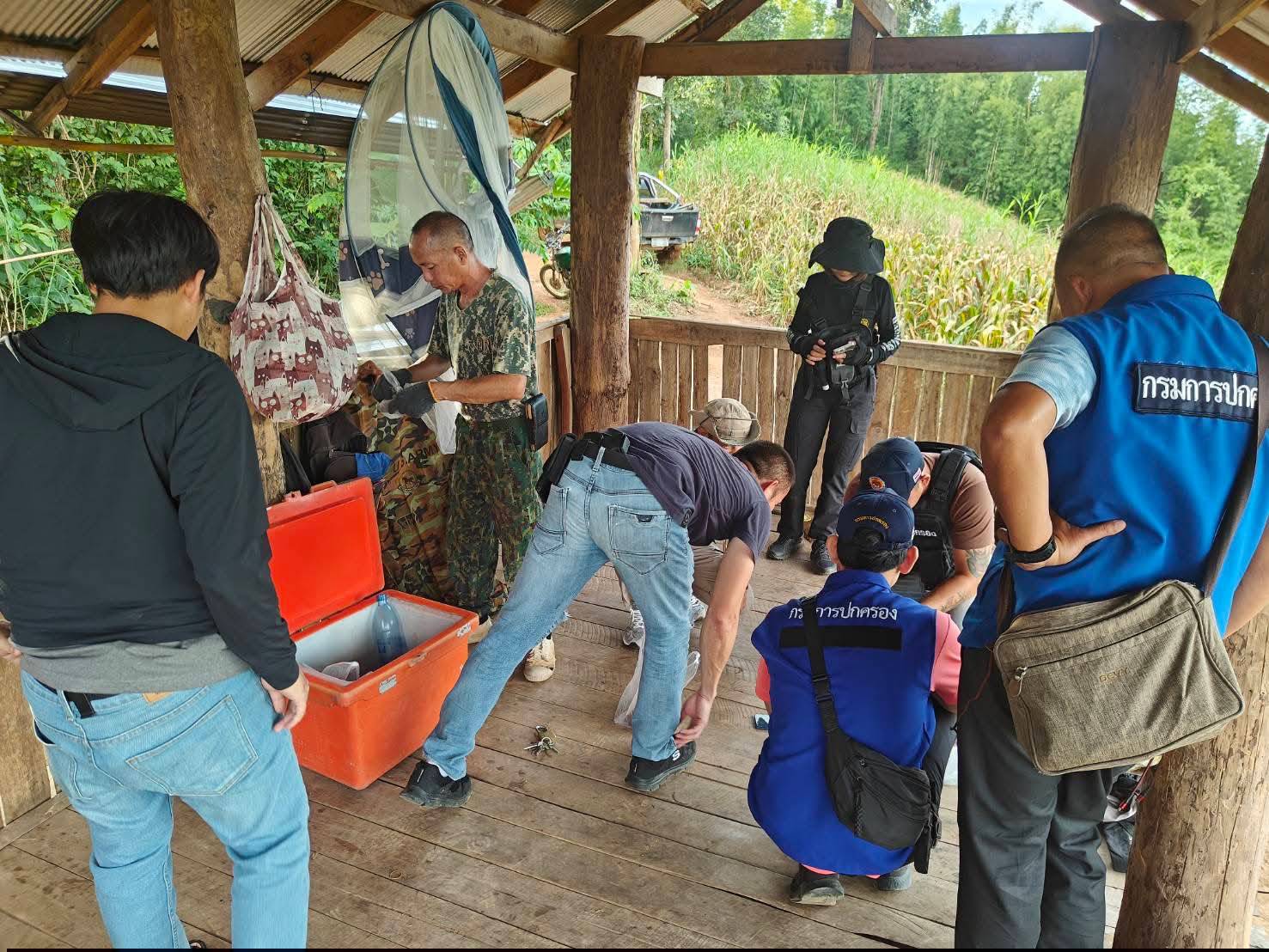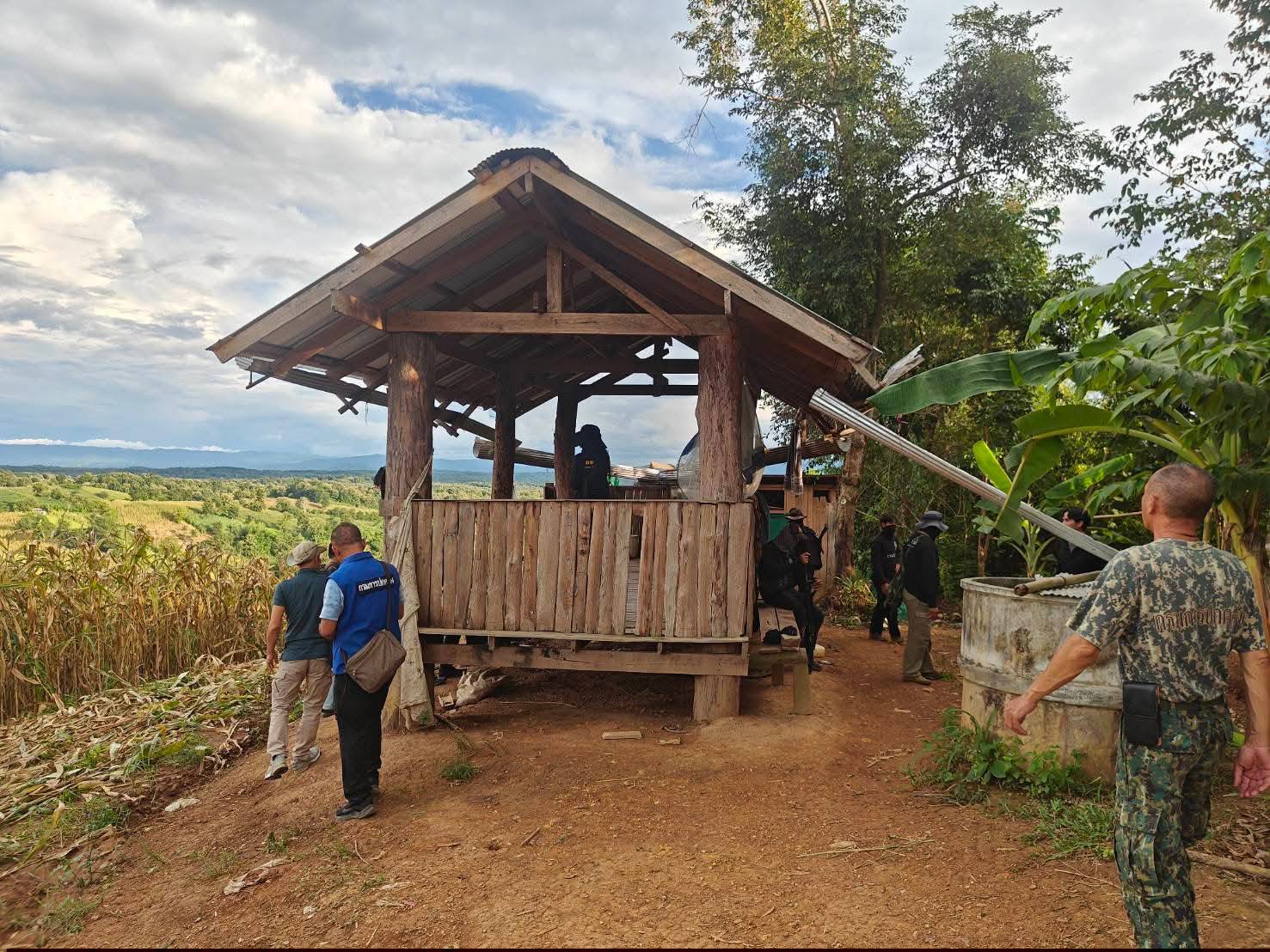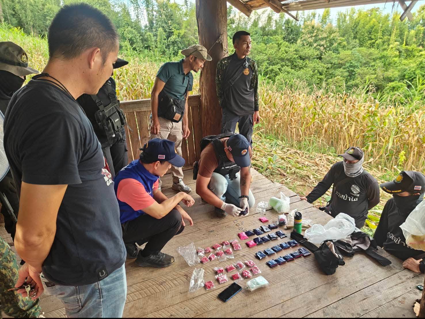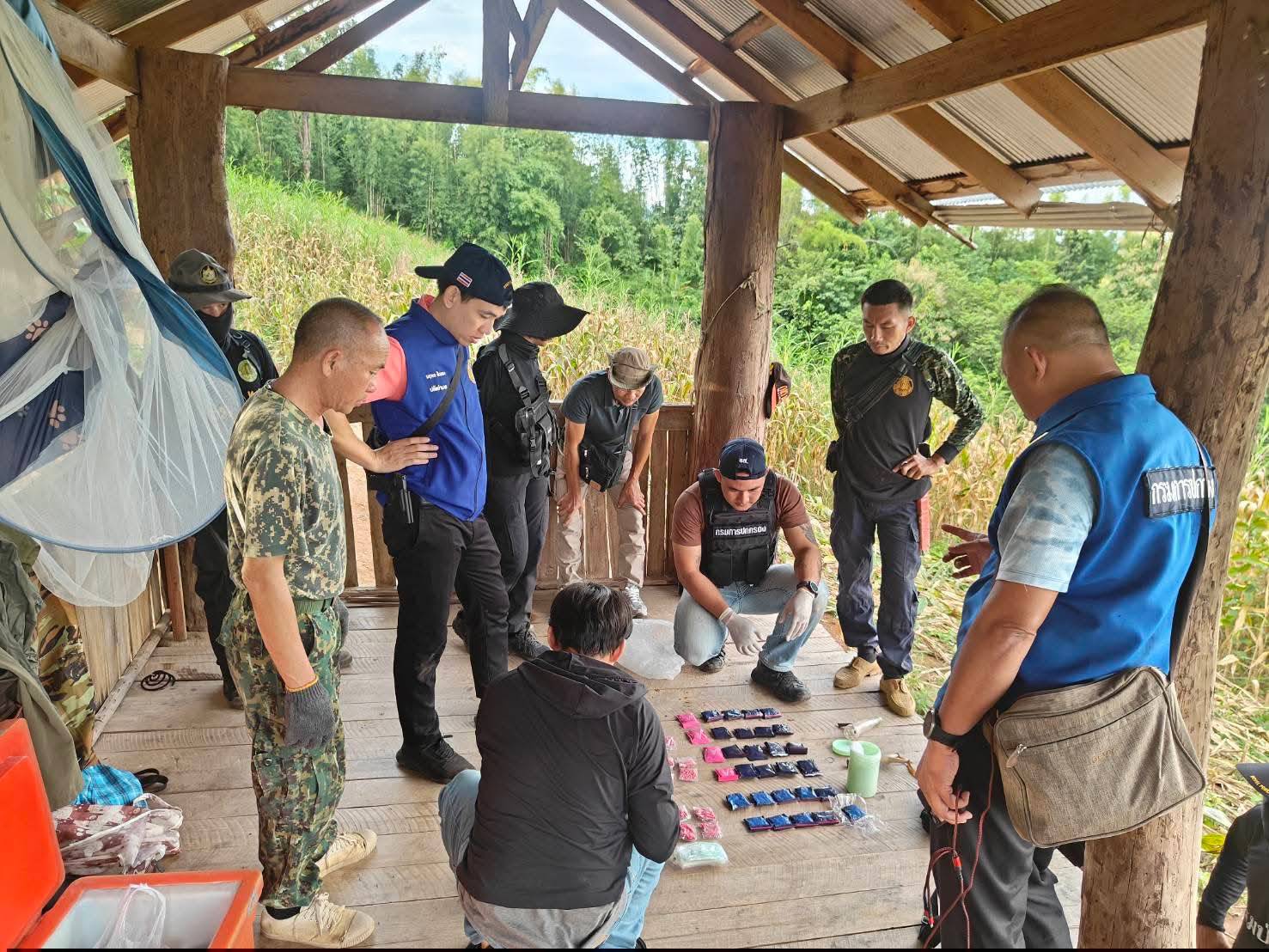 นายอำเภองาว ลำปาง พร้อมกำลังตำรวจ และป่าไม้ค้นกระท่อมกลางป่าพบยาบ้ากว่า 1 หมื่นเม็ด ส่วนเจ้าของยาหลบหนี
