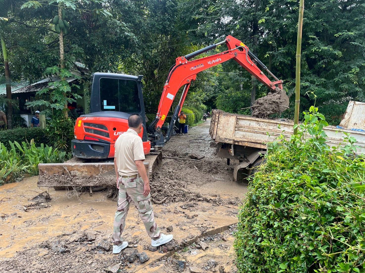นอภ.สะเมิง นำทีมลงพื้นที่บ้านเหล่าแสนตอง หลังจากได้รับผลกระทบจากเหตุการณ์น้ำป่าไหลหลาก เร่งสำรวจความเสียหาย พร้อมสั่งการให้เร่งเปิดเส้นทางหลังโรงเรียนทรายทองที่ถูกดินโคลนถล่มปิดทับ